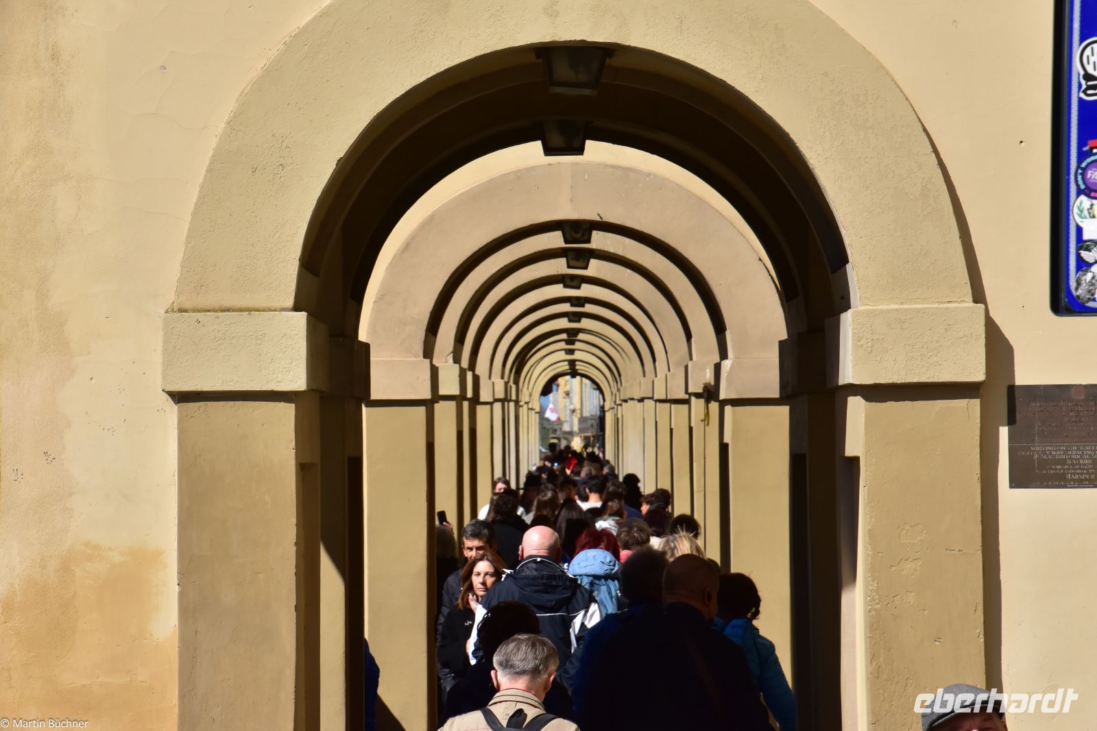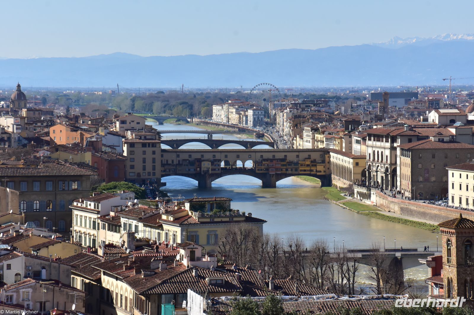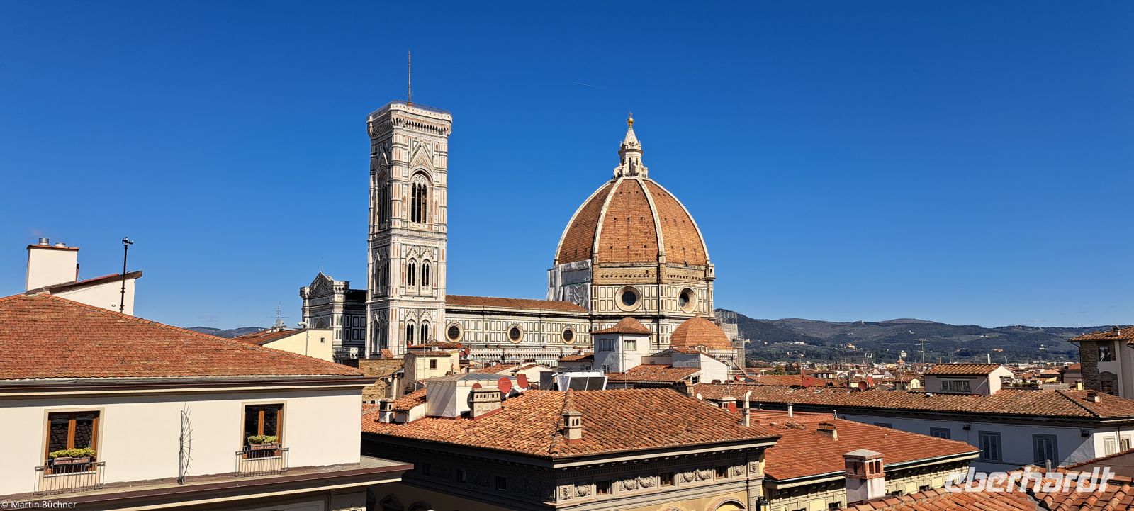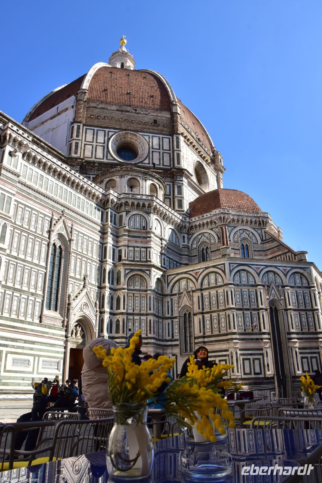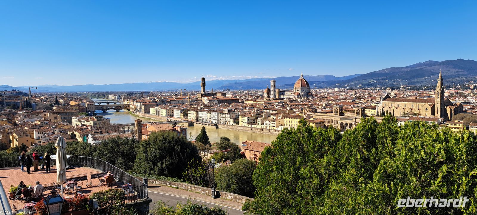 Florenz, die Hauptstadt der Renaissance und der Medici. Der beeindruckende Dom mit seinem Campanile und dem Baptisterium, dem Rathausplatz mit dem Rathausturm, der Ponte Vecchio über den Fluss Arno, das weltberühmte Kunstmuseum: Die Uffizien; die Basilika Santa Croche, Hauptsitz des Franziskanerordens. Und vieles andere mehr erwarten uns im wunderschönen Florenz. Eine Pause gönnen wir uns bei einem Kaffee auf der Dachterrasse eines Kaufhauses mit Blick auf den Dom. Mittagsimbiss erfolgt auf der Piazza di Michelangelo hoch über dem Fluss Arno mit Blick auf Florenz.