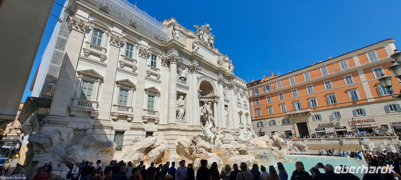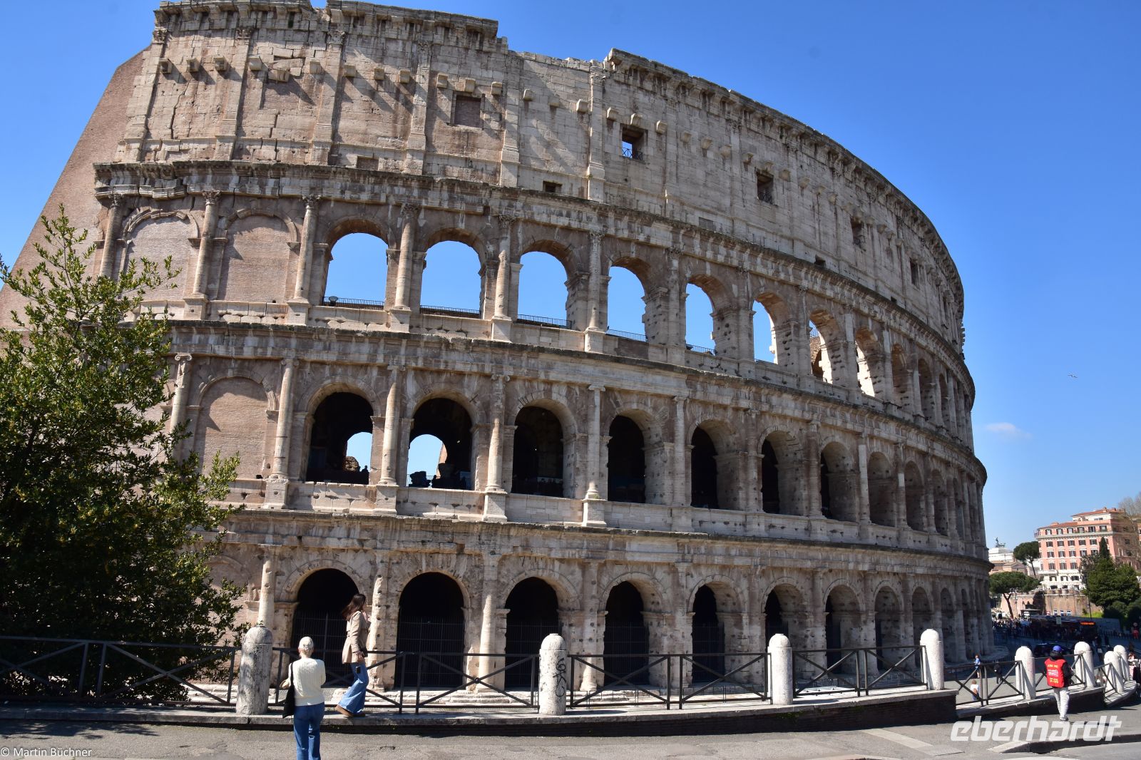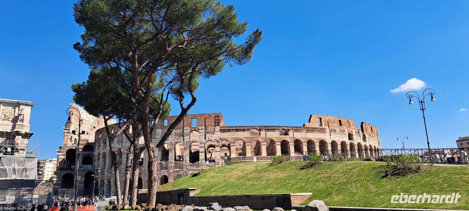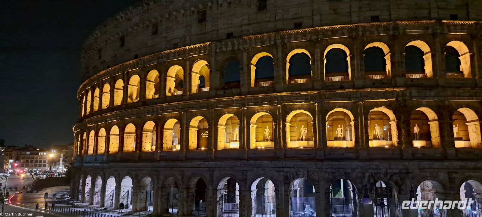 Unser Bus und unser Chauffeur haben sich für die nächsten zwei Tage eine Ruhepause verdient. Wir sind mit der Metro, den öffentlichen Verkehrsmitteln, und zu Fuß in Rom unterwegs. Mit der Metro geht es zunächst zum Bahnhof Termini, später zur Station Colosseo. Hier erwartet uns unsere Stadtführen Sylvia die uns die nächsten zwei Tage durch Rom führen wird. Wir beginnen mit der Besichtigung des Kolosseums, gefolgt vom Titus- und Konstantin-Triumphbogen, ergänzt durch einen Spaziergang durch das antike Forum Romanum, vorbei am Palatin Hügel, dem Kapitol Hügel, dem römischen Senat, der Trajan Säule und den Trajans Märkten, hin zum berühmten Fontana di Trevi, dem Trevi Brunnen. Drei Münzen müssen über die Schulter geworfen werden, um glücklich nach Rom zurückzukehren. Eine weitere Variante um glücklich zu werden, ist es, italienisches Gelato zu genießen. Vielleicht einen italienischen Kaffee dazu zu trinken. Unser Weg führt uns weiter zur berühmten Spanischen Treppe, benannt nach der spanischen Botschaft, die dort seit Jahrhunderten zu finden ist. Über den Via del Corso, der Hauptachse Roms, geht es zum Pantheon, dem einzigen vollständig erhaltenen römischen Tempel aus der Antike. Von dort ist es nicht mehr weit bis zum Piazza di Nuova, den Platz mit den drei Brunnen, der Hauptbrunnen steht für die 4 Weltenflüsse, auf den damaligen bekannten Kontinenten. Mit öffentlichen Verkehrsmitteln geht es zurück zum Hotel.
