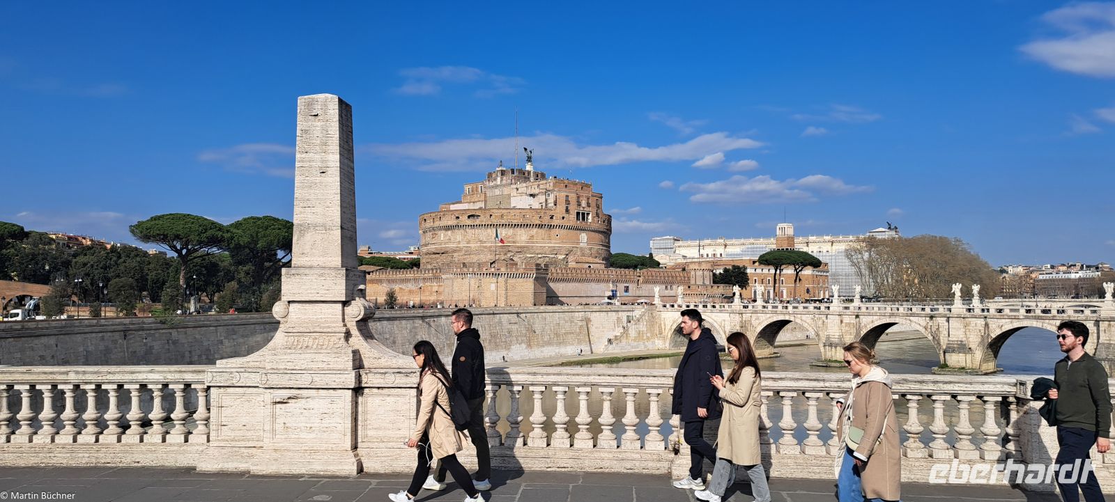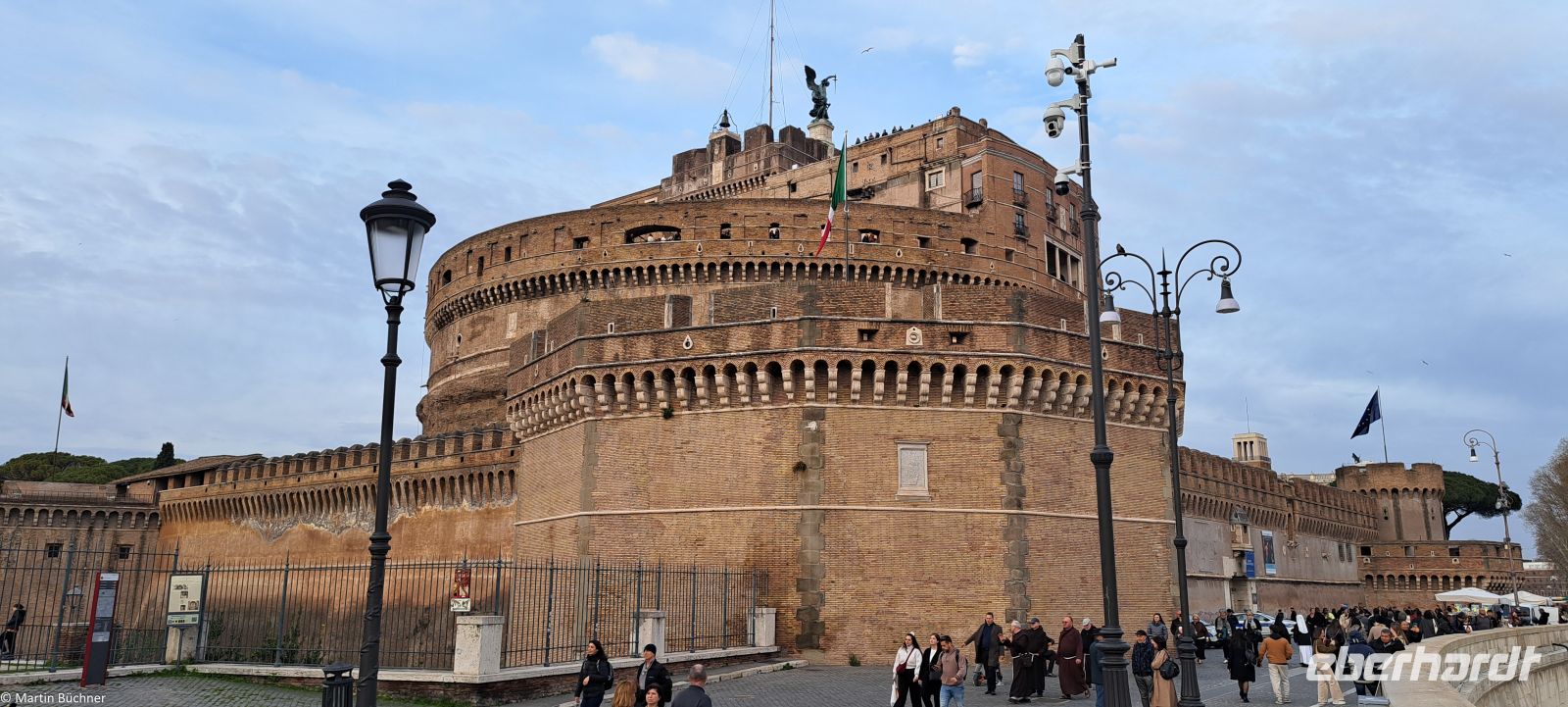 Den Petersdom selbst, kann man kaum mit Worten beschreiben, das zweitgrößte Kirchengebäude der Welt. Ein Gebäude in dem man jegliches Gefühl für Raum, Zeit, Größen und Dimensionen verliert. Nach dem beeindruckenden Besuch des Petersdoms unter Führung von Silvia, besteht die Möglichkeit als Pilger oder Interessierte durch die Heilige Pforte zu pilgern. Am Ausgang des Petersdoms wartet der Petersplatz mit seinen Kolonnaden. Folgt man dieser Richtung oder dem Fluchtweg der Päpste, erreicht man die Engelsburg. Vor ihr liegt die Engelsbrücke, einst einzige Brücke über den Tiber über die alle Pilger zum Petersdom reisten.