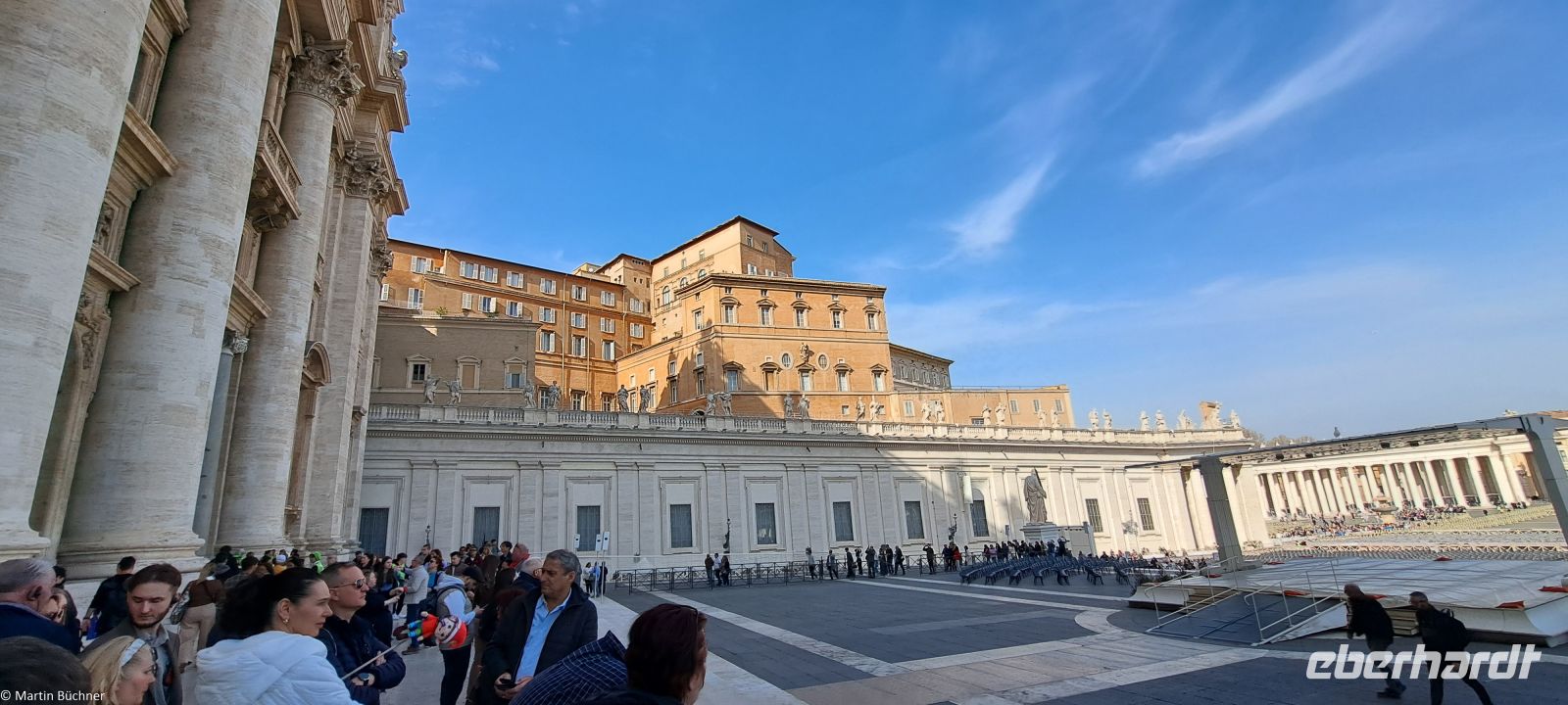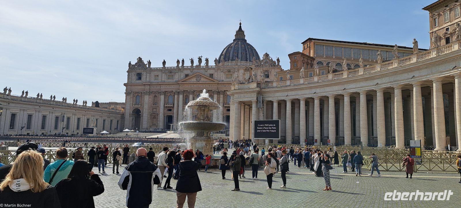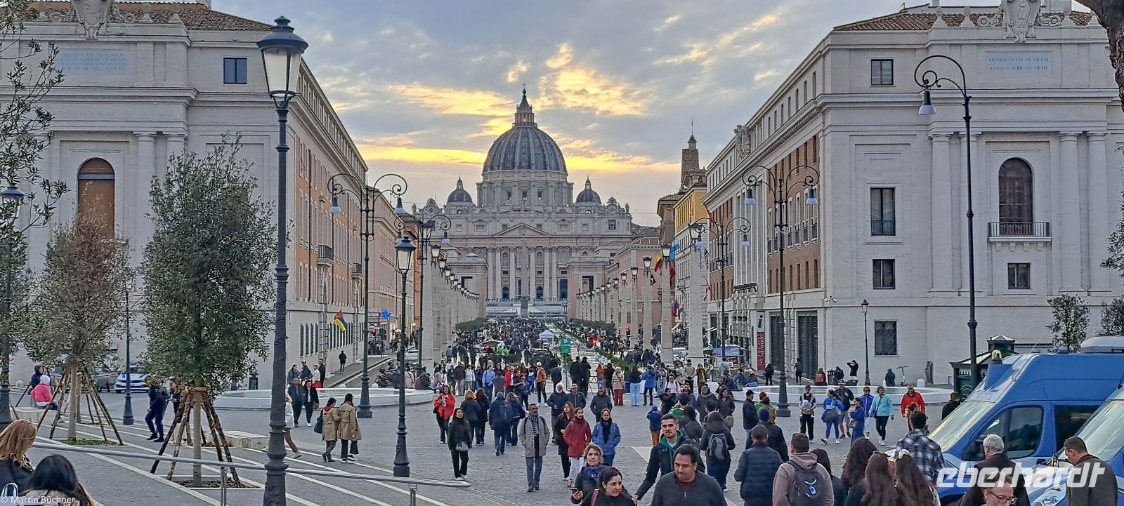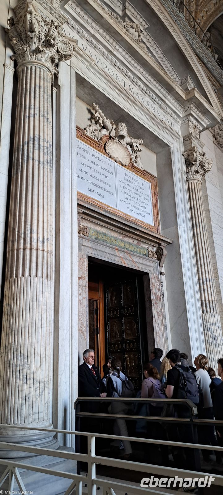 Anschließend Mittagspause im Vatikan. Als nächster Besuchspunkt steht der Petersdom auf unsere Liste. 2025 ist das heilige Jahr in Rom, ausgerufen durch Papst Franziskus. Die Heilige Pforte, wurde geöffnet. Dies führt besonders viele Pilger nach Rom.