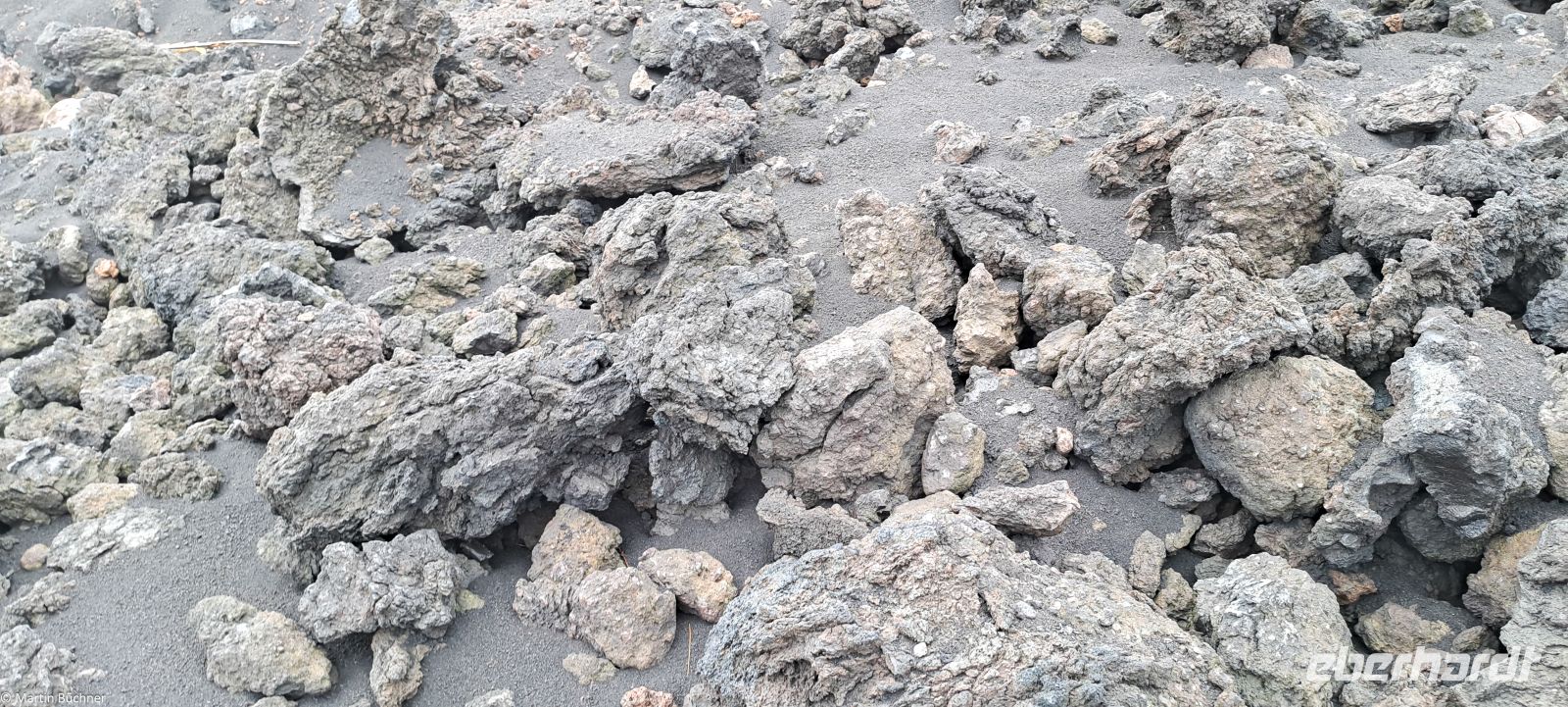 Das Wetter ändert sich nicht viel. Der Wetterbericht meldet Nebel am Ätna, offene Stellen möglich. Über Zafferana geht es hinauf zu den Silvestri-Kratern und der Talstation der Ätna-Seilbahn. Einige Gäste nutzen die Möglichkeit zur Bergstation zu fahren. Alle anderen Gäste unternehmen einen Spaziergang durch die Lava-Massen.
