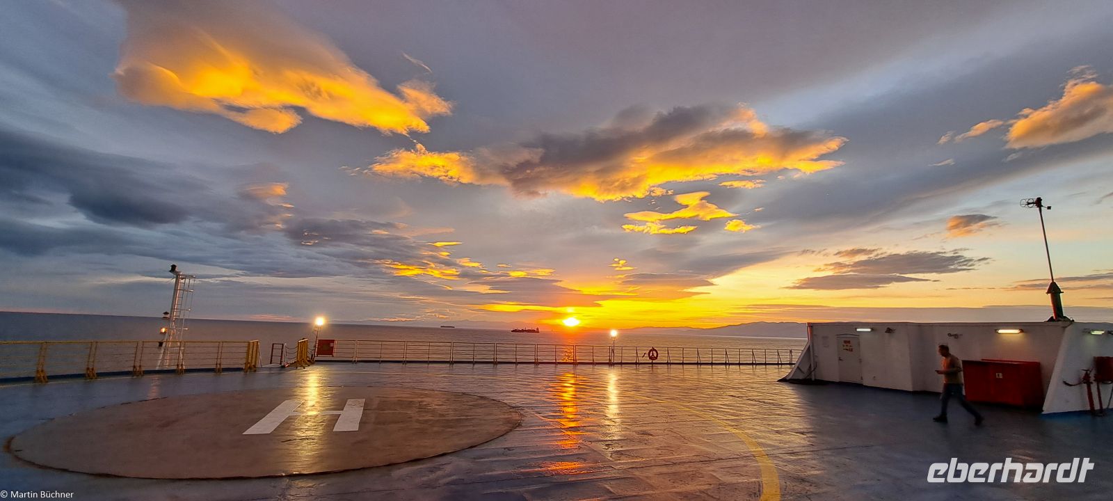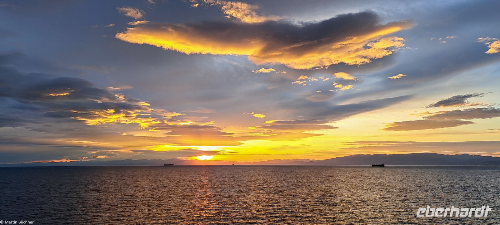 In gut 21 Stunden Fahrt durchqueren wir das westliche Mittelmeer, das hier offiziell Tyrrhenisches Meer genannt wird. Vorbei an Sardinien, Korsika, Elba, Montecristo, Capreia und anderen kleinen Inseln u. a. der Toskana.