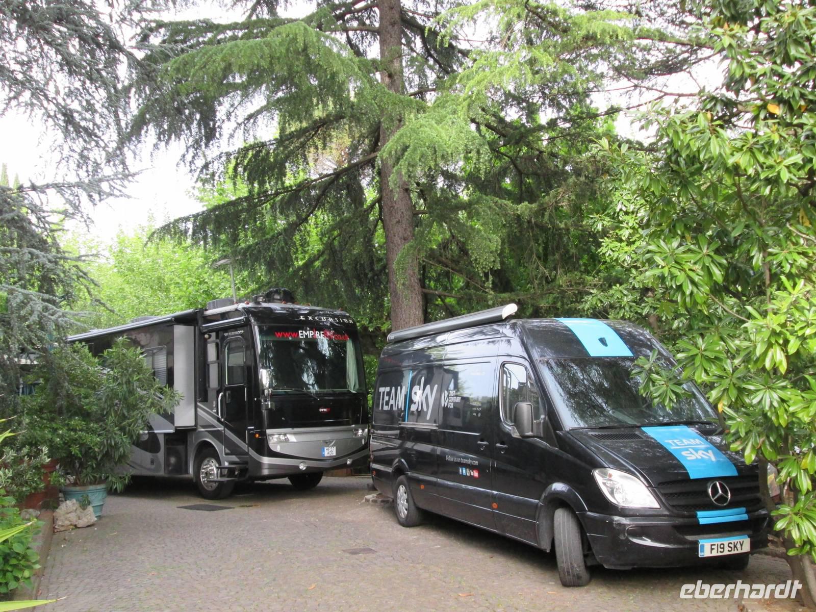 Übergroße Trucks, Strassensperren, hohes Polizeiaufgebot erwarteten uns in Montecatini Therme. Der "Giro d'Italia" startete am kommenden Tag seine 9.Etappe in Montecatini.