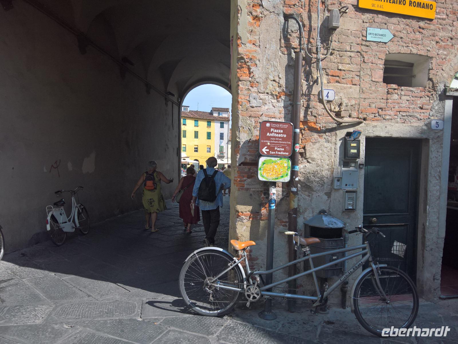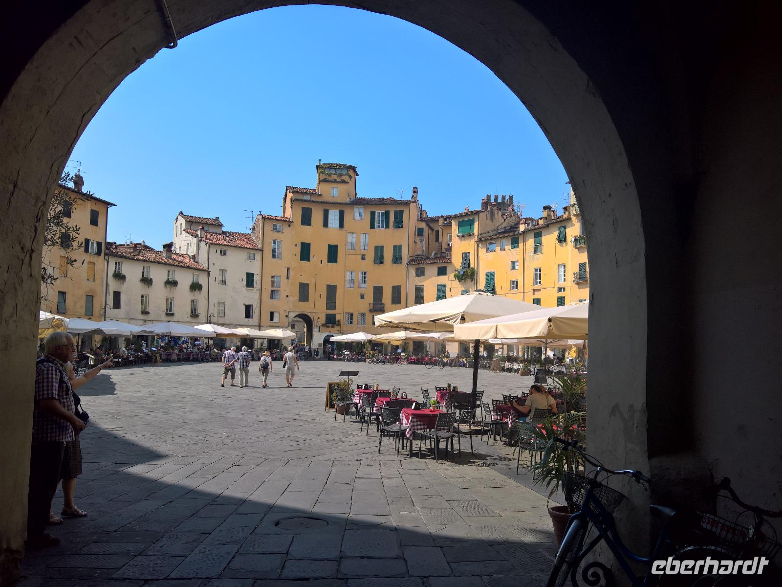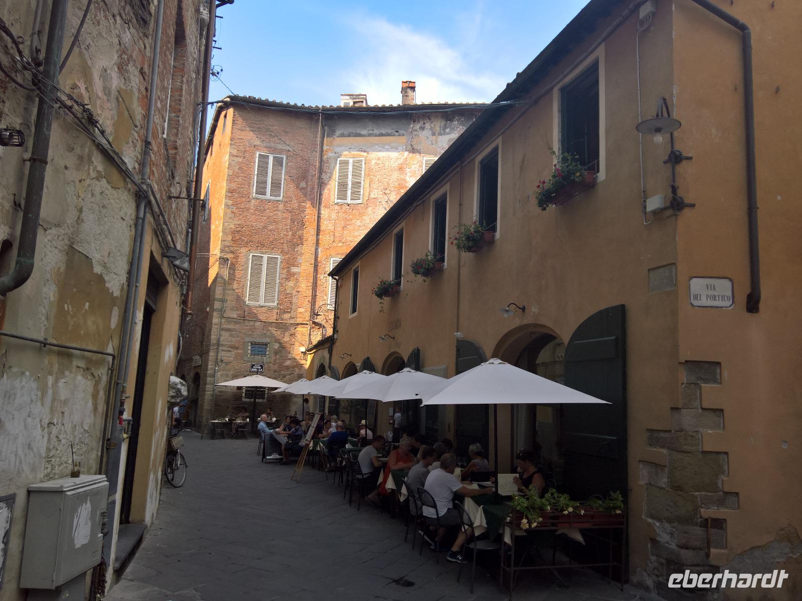 Hier machen wir uns auf den Weg zu einem Spaziergang durch einen Teil der Altstadt. Durch die Porta Vittorio Emanuele gehen wir durch die gewaltige Stadtmauer hindurch und sind sehr bald gefangen vom Flair dieser wunderschönen Stadt. Vorbei an der Kirche San Michele bis zur Piazza Anfiteatro und zur Basilika San Frediano führte unser Weg. Wir bekommen großartige Eindrücke von dem lombardisch - romanischen Stil der Bauwerke aus Italiens Vergangenheit.