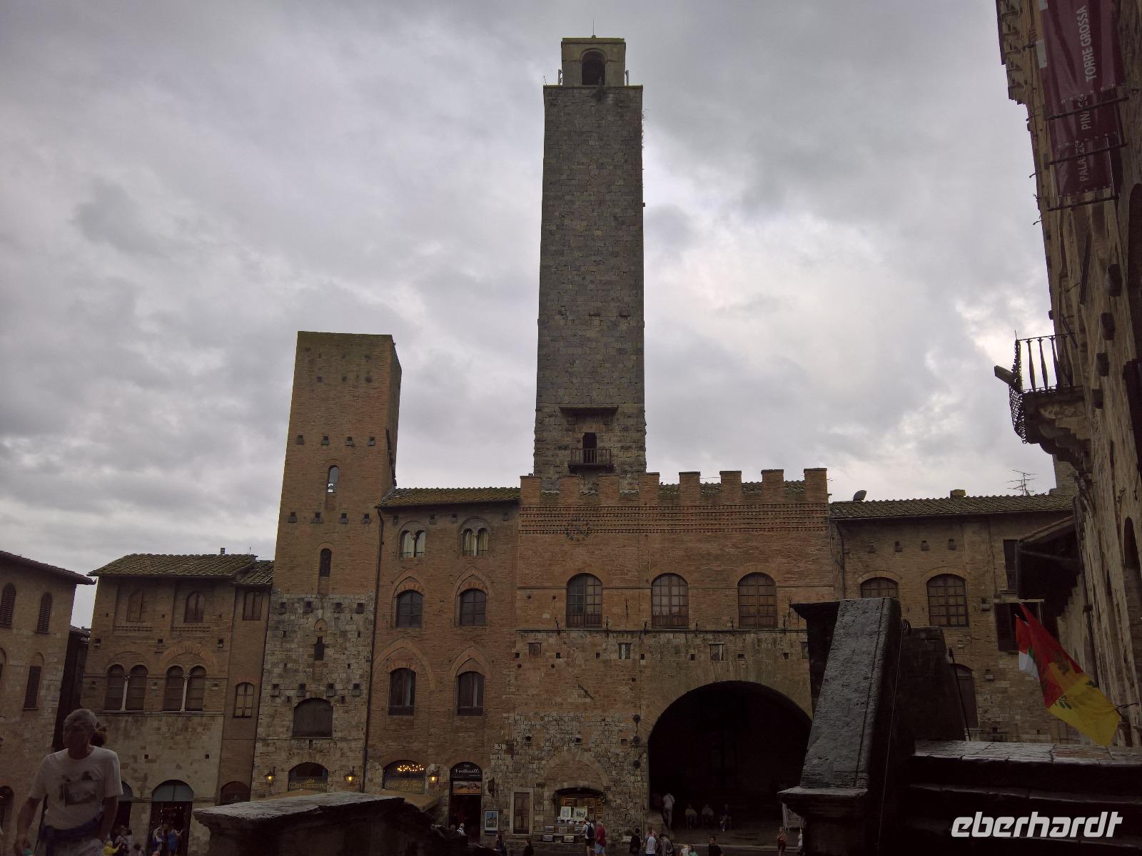 Bekannt und berühmt durch seine Geschlechtertürme wird sie auch "Stadt der Türme" genannt. Ursprünglich mal 72 an der Zahl waren sie von Adligen errichtet worden, und galten in der Hauptsache als Verteidigungswerke. Schließlich aber waren sie auch zur Selbstdarstellung der adligen Familien bestimmt, die an der Höhe des Turms auch die Höhe ihres Ansehens in der Stadt dokumentierten. Heute gibt es noch 15 dieser Türme zu sehen, wobei der höchste Turm, der Torre Grossa aus dem Jahre 1311, eine Höhe von 54 m aufweist.