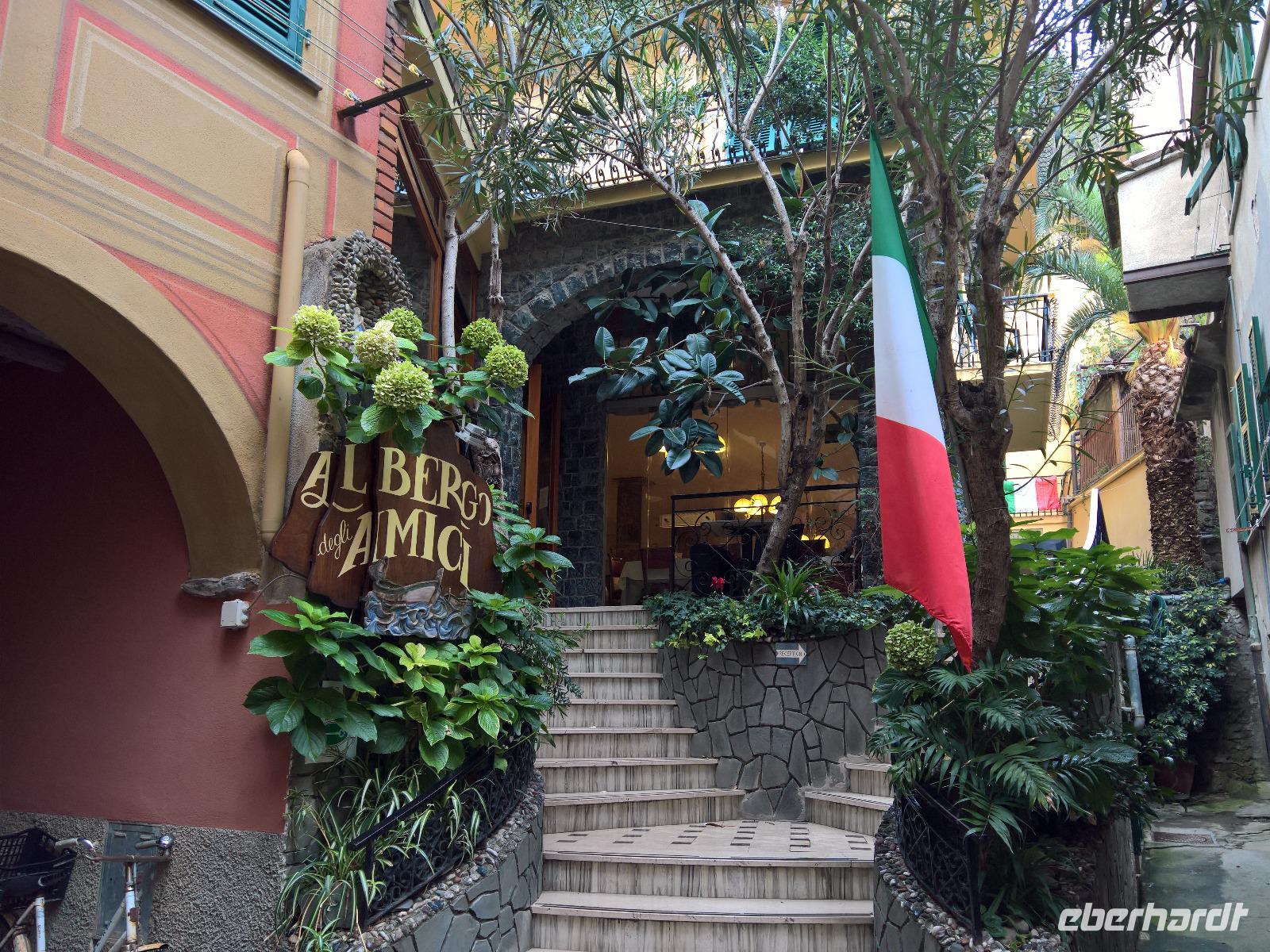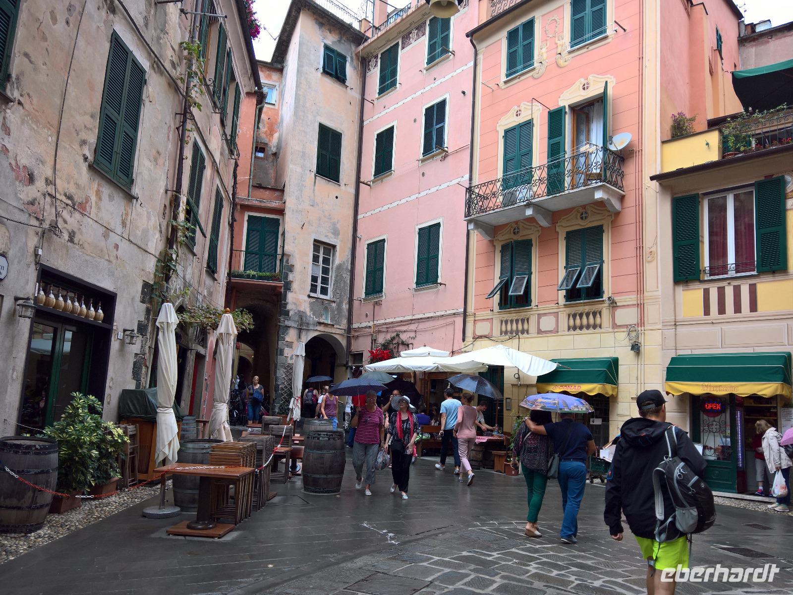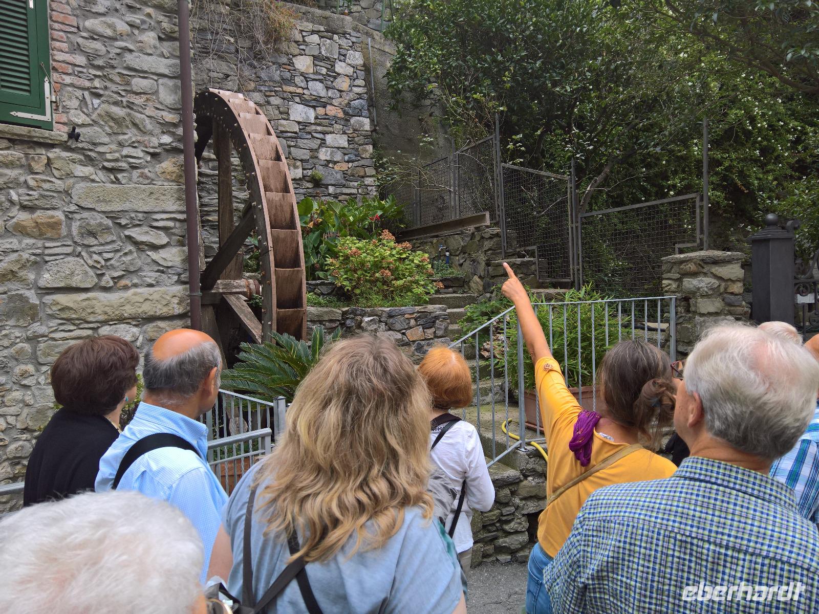 Mit der Bahn durch Tunnels fahren wir weiter nach Vernazza. Auf Felsen gedrängt, gilt es als das schönste der 5 Dörfer. Die Einheimischen sprechen von "Vernazza, La Bella Piazza" und das zu Recht. Der Ort ist in und auf Felsen gedrängt und die Piazza zeigt auf einen klitzekleinen Hafen. Alles sehr pittoresk und unsere Gäste scheinen sich in diesen Ort zu verlieben. Dabei erfahren wir aber auch von Britta, dass im Jahre 2012 eine Überschwemmungskatastrophe verheerende Auswirkungen auf die kleine Stadt hatte. Die Via dell' Amore,der Liebesweg an der Küste entlang, ist noch immer gesperrt. Aber fleißige Hände in Vernazza haben sehr Vieles wieder zur Freude der zahlreichen Besucher gerichtet.