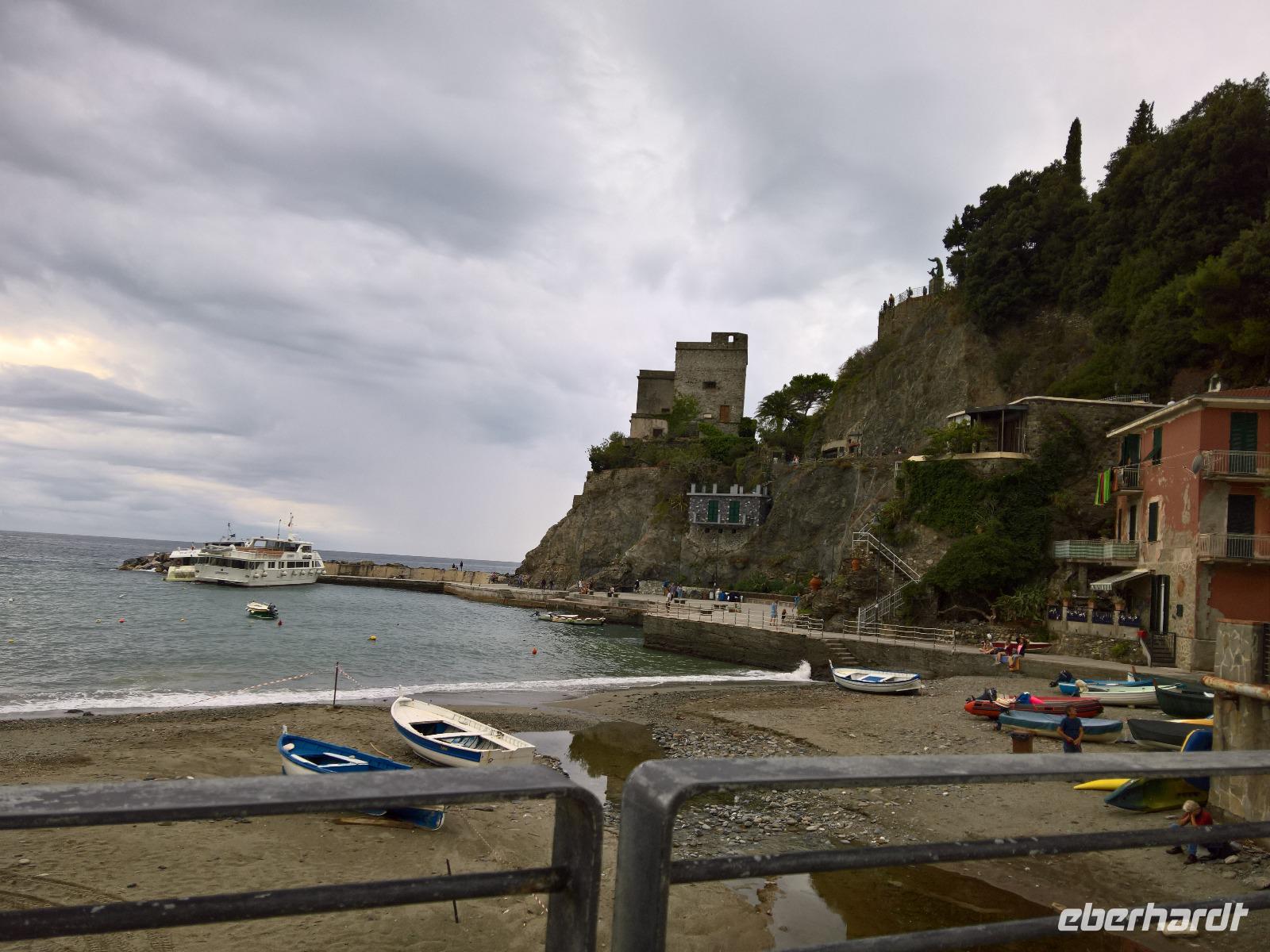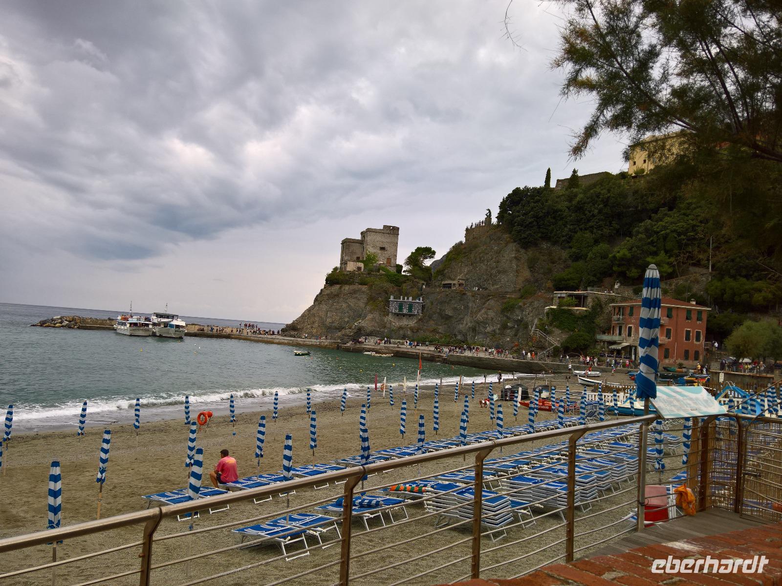 Weiter geht unsere Reise durch die Cinque Terre per Eisenbahn nach Monterosso, einer alten Fischersiedlung. Hier haben wir unsere Mittagspause und können den einzigen Sandstrand der gesamten "Fünf Klippendörfer" sehen, für den die Felsen Platz gemacht haben.