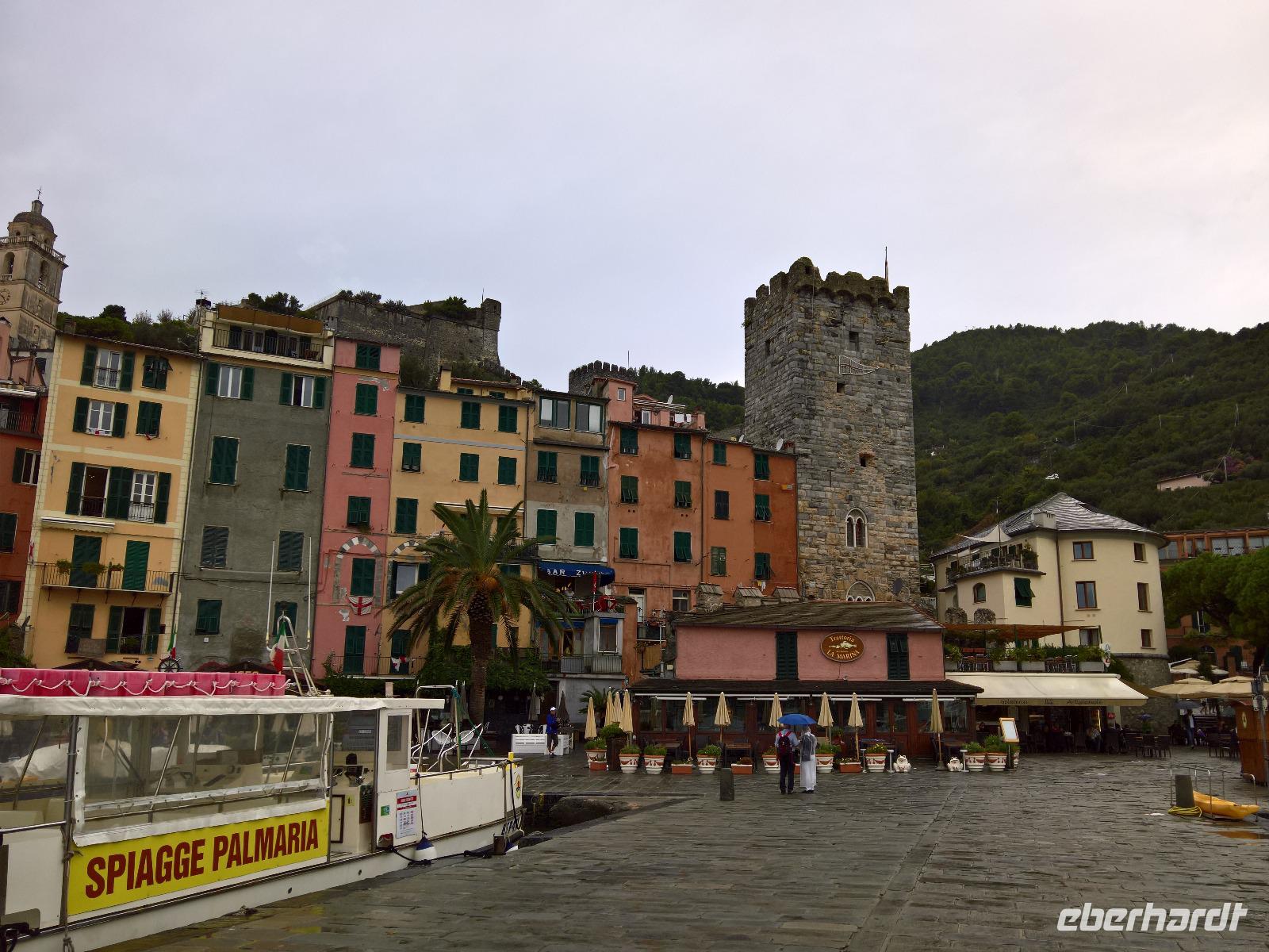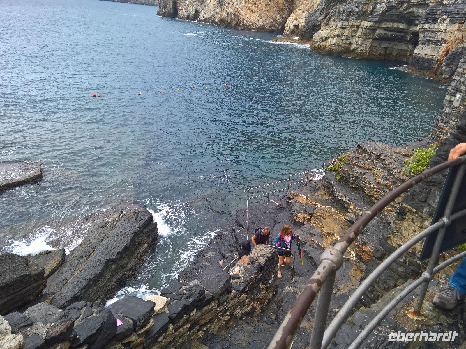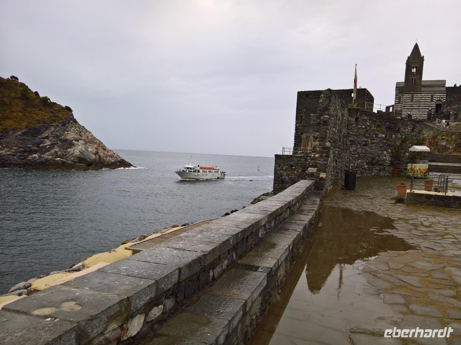 Mit dem Schiff geht es weiter nach Portovénere. Die Perspektive vom Schiff aus auf die kühne Küstenform und die terassierten Anpflanzungen führen uns nochmal die Besonderheit dieses Fleckchens Erde vor Augen.