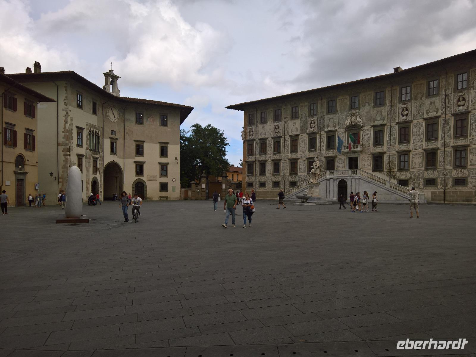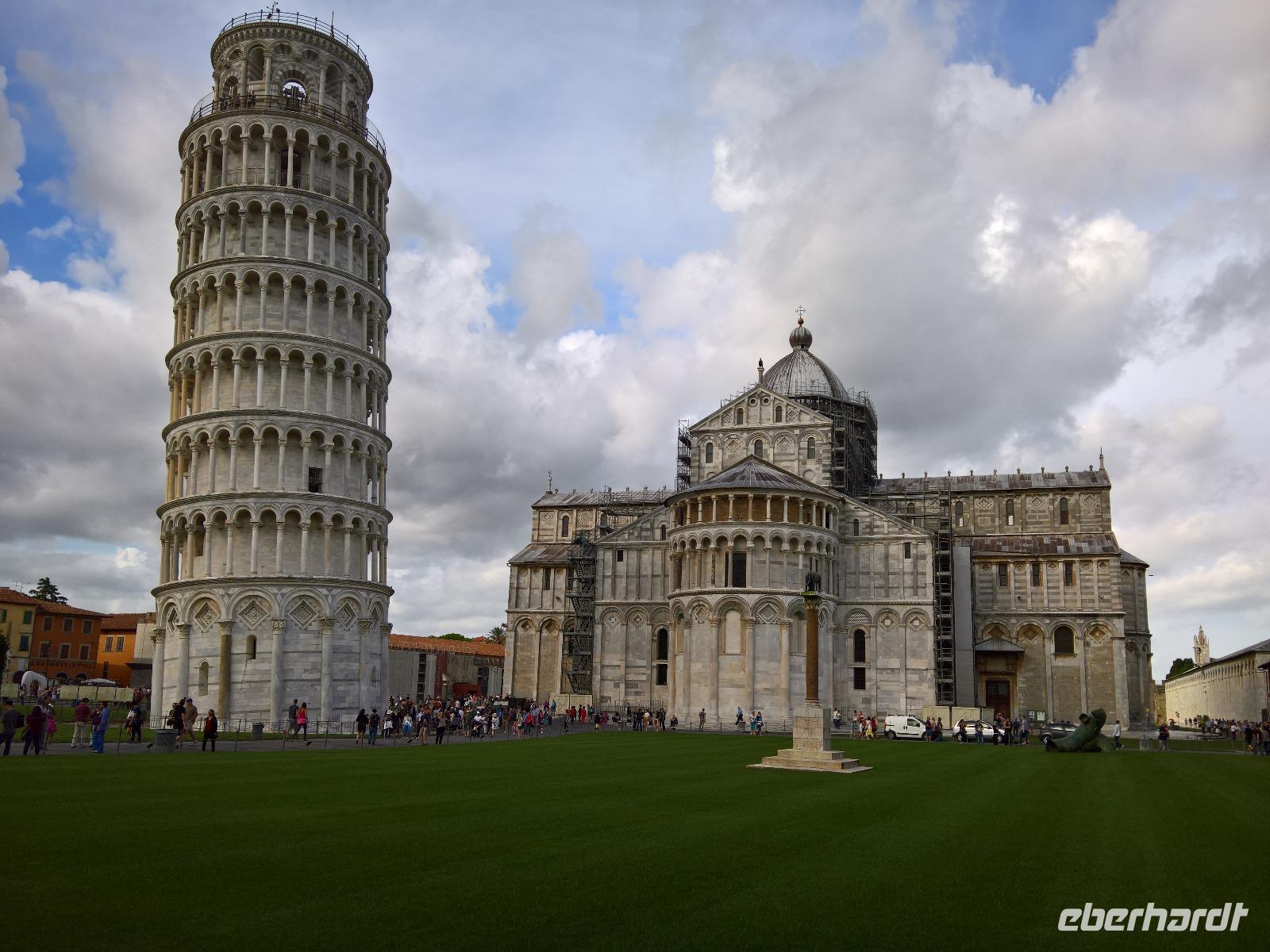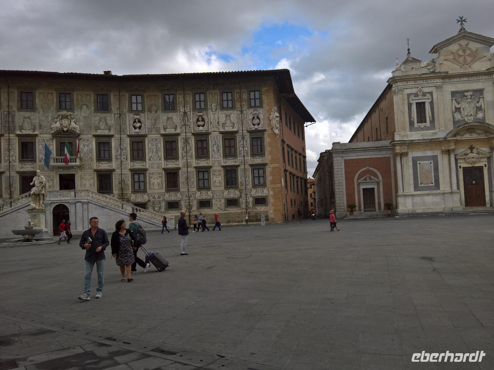 Unterwegs machen wir Halt in Pisa. Die Geburtsstadt Galileo Galilei ist weltberühmt durch ihn aber mehr noch durch den Schiefen Turm von Pisa aus dem 12. Jh. Und dieser gehört zu einem Ensemble auf der Piazza dei Miracoli, zu dem der Dom mit seiner beeindruckenden Fassade aus schwarzem und weißem Marmor zählt, genauso, wie das Baptisterium, die Taufkirche. Aber gleichsam großartig ist der Camposanto, der Monumentalfriedhof aus dem 13. Jh. Allein auf diesem Platz der Wunder lohnt sich unser Besuch. Und wer noch etwas weiter in die Stadt Pisa hineinlaufen will, der kommt zur Piazza dei Cavalieri, einem der schönsten europäischen Plätze der Renaissance.