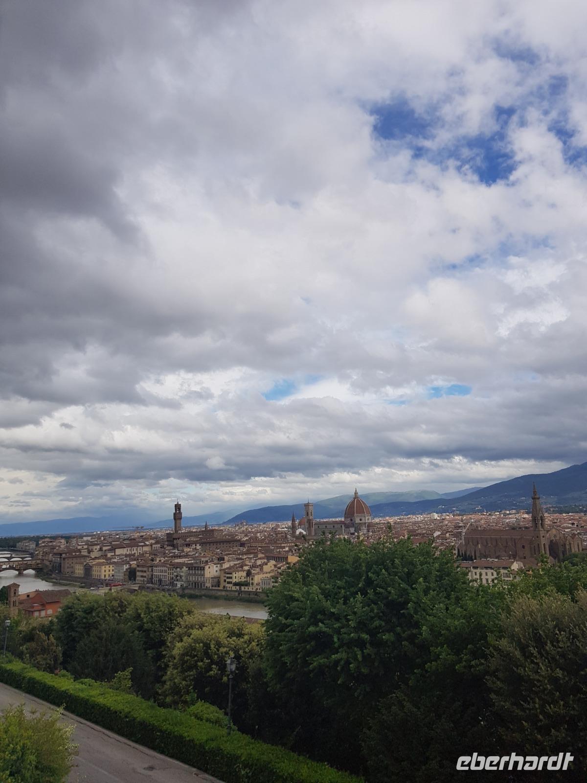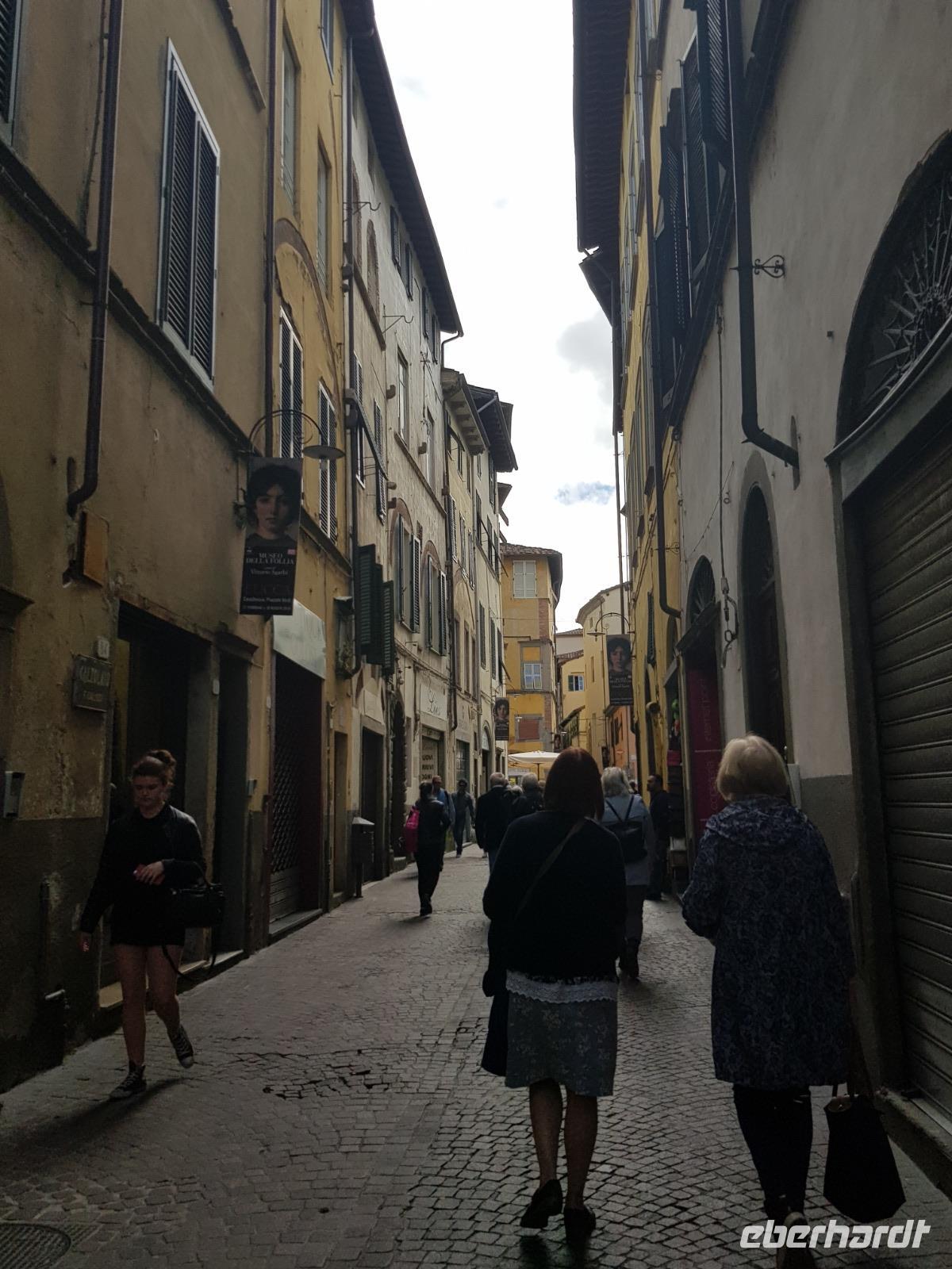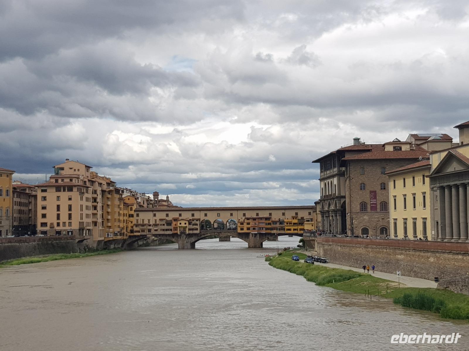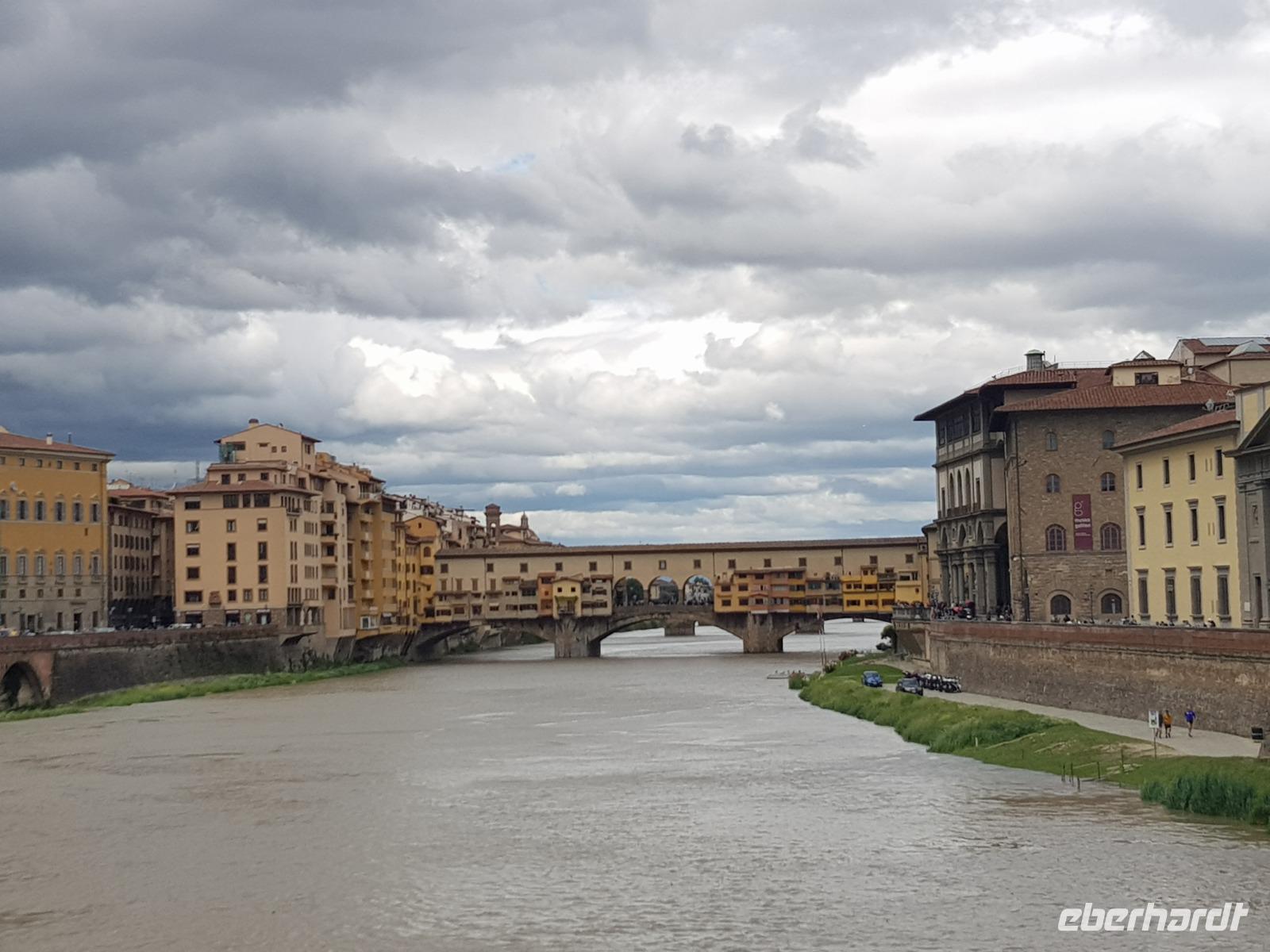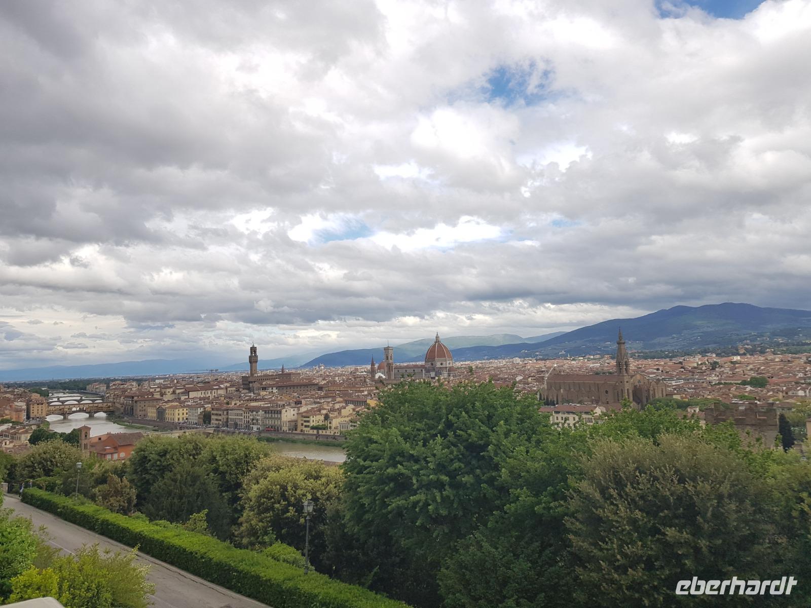 Cristina fährt gemeinsam mit uns und unserem Bus zur Piazzale Michelangelo. Von hier aus haben wir einen atemberaubenden Blick über die ganze Stadt Florenz. Danach führt uns unsere Stadtführerin zu Fuß durch die Innenstadt. Wir bewundern die bedeutendsten Bauwerke der Stadt: den Dom Santa Maria del Fiore, mit der mächtigen Kuppel aus dem 13. Jahrhundert, die Kirche Santa Croce mit den Grabmalen Michelangelos und Galileis und die Piazza della Signoria mit dem einzigartigen Skulpturenpark aus dem 14. Jahrhundert. Unsere Stadtführung endet auf der Ponte Vecchio, der ältesten Brücke, die über den Fluss Arno führt, wir schlendern entlang an zahlreichen Goldschmieden.