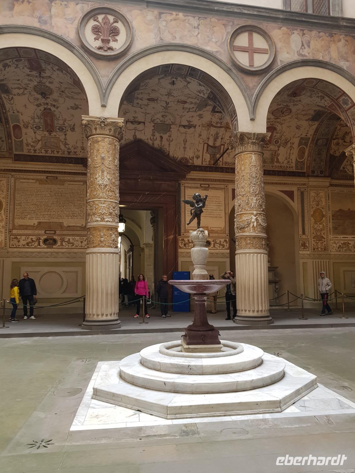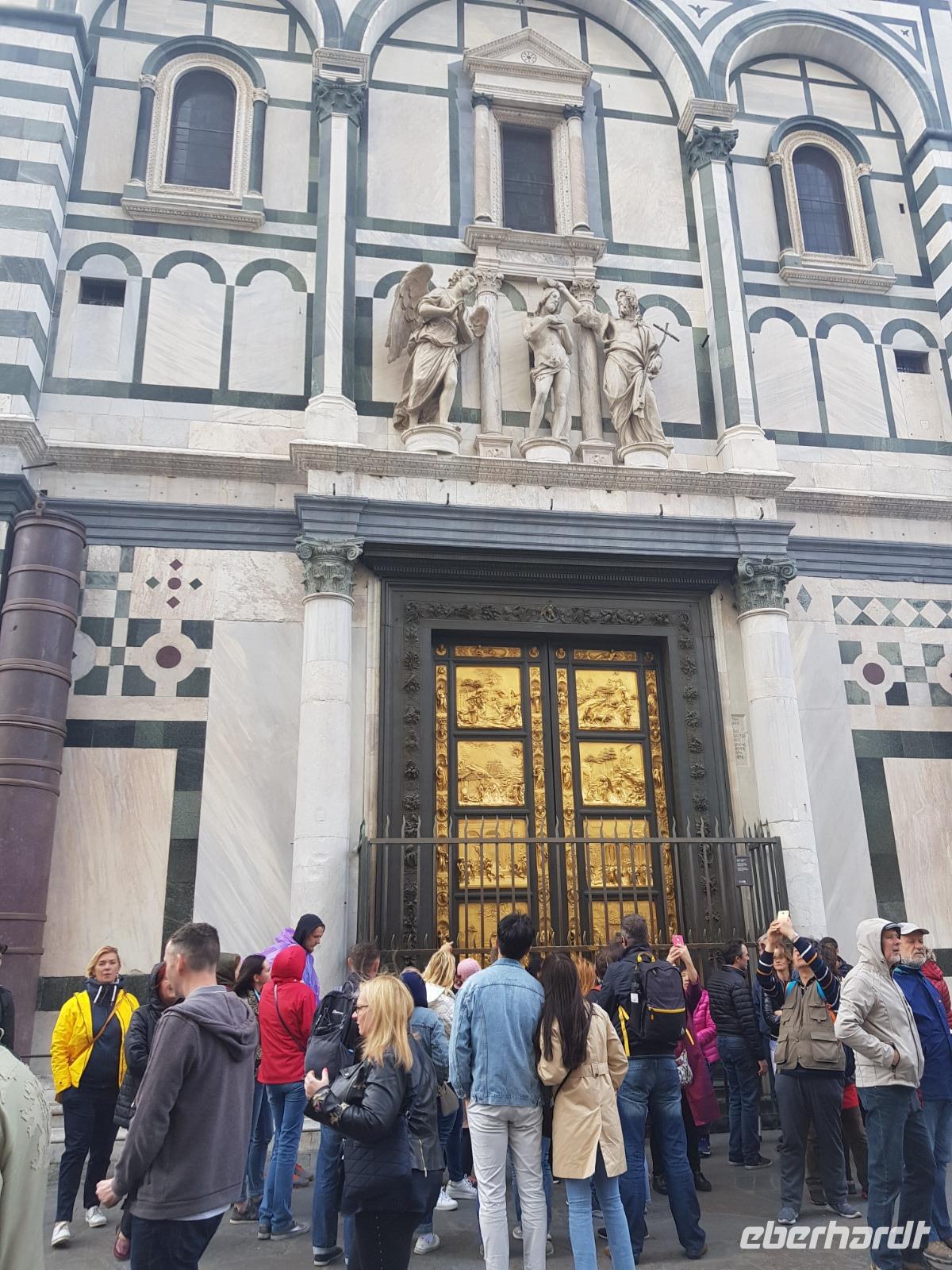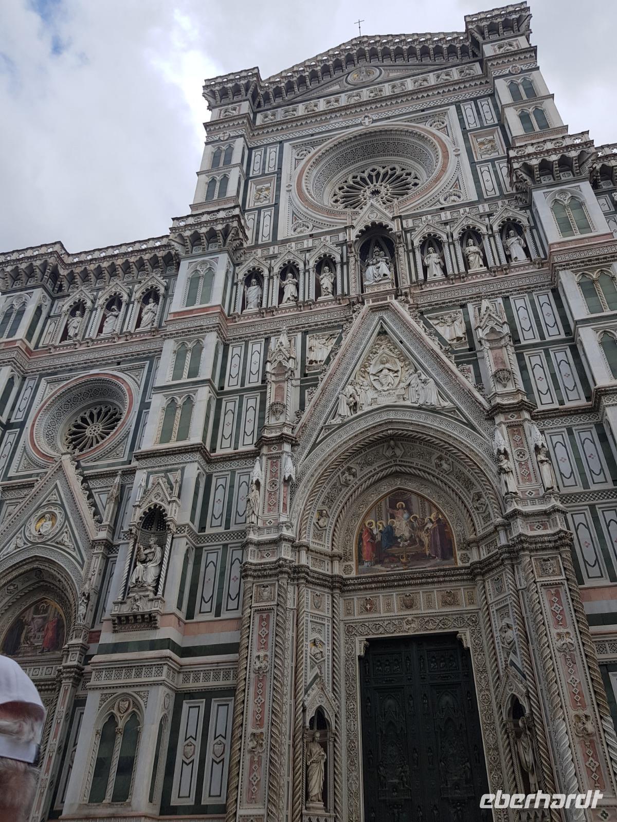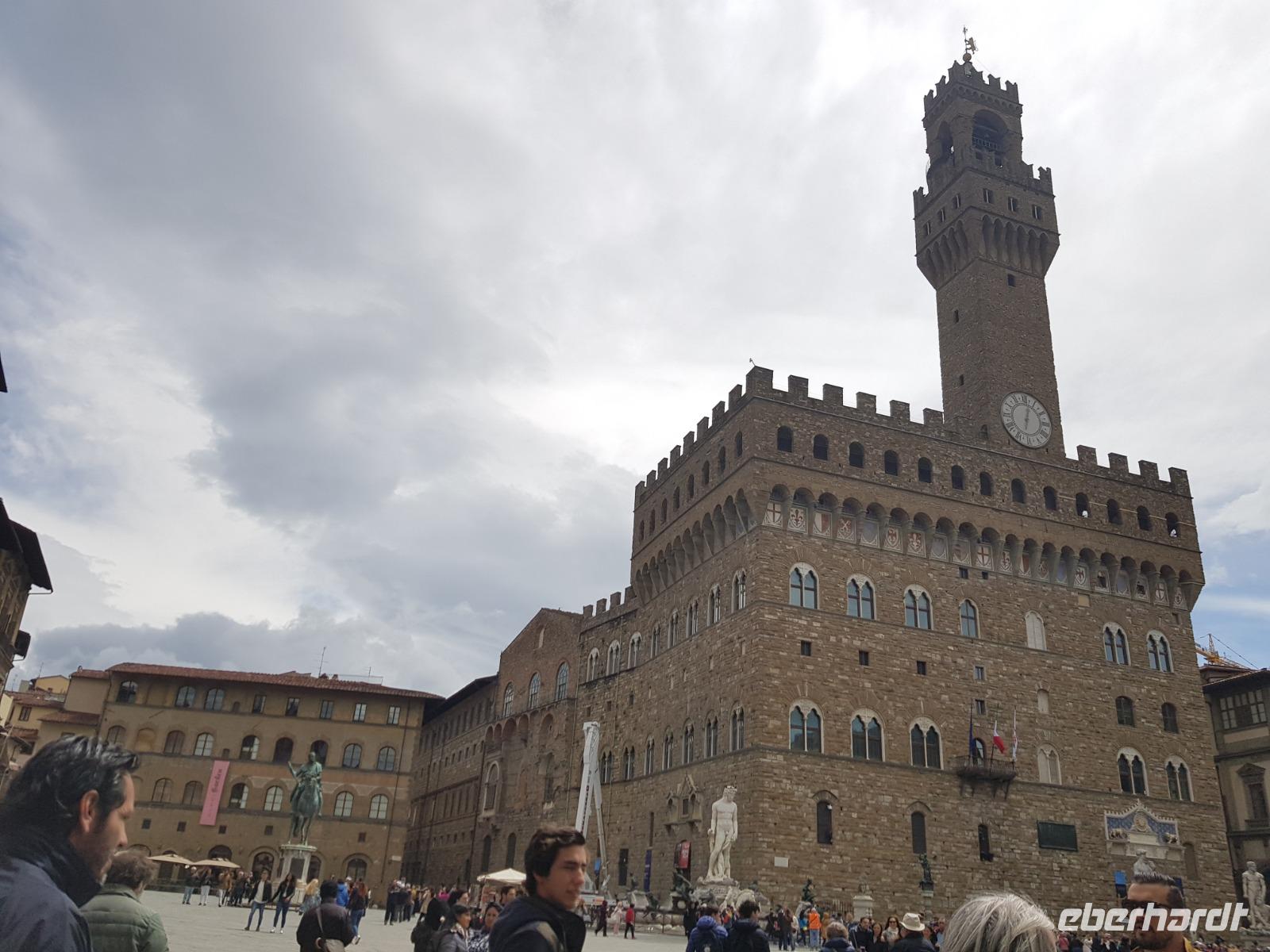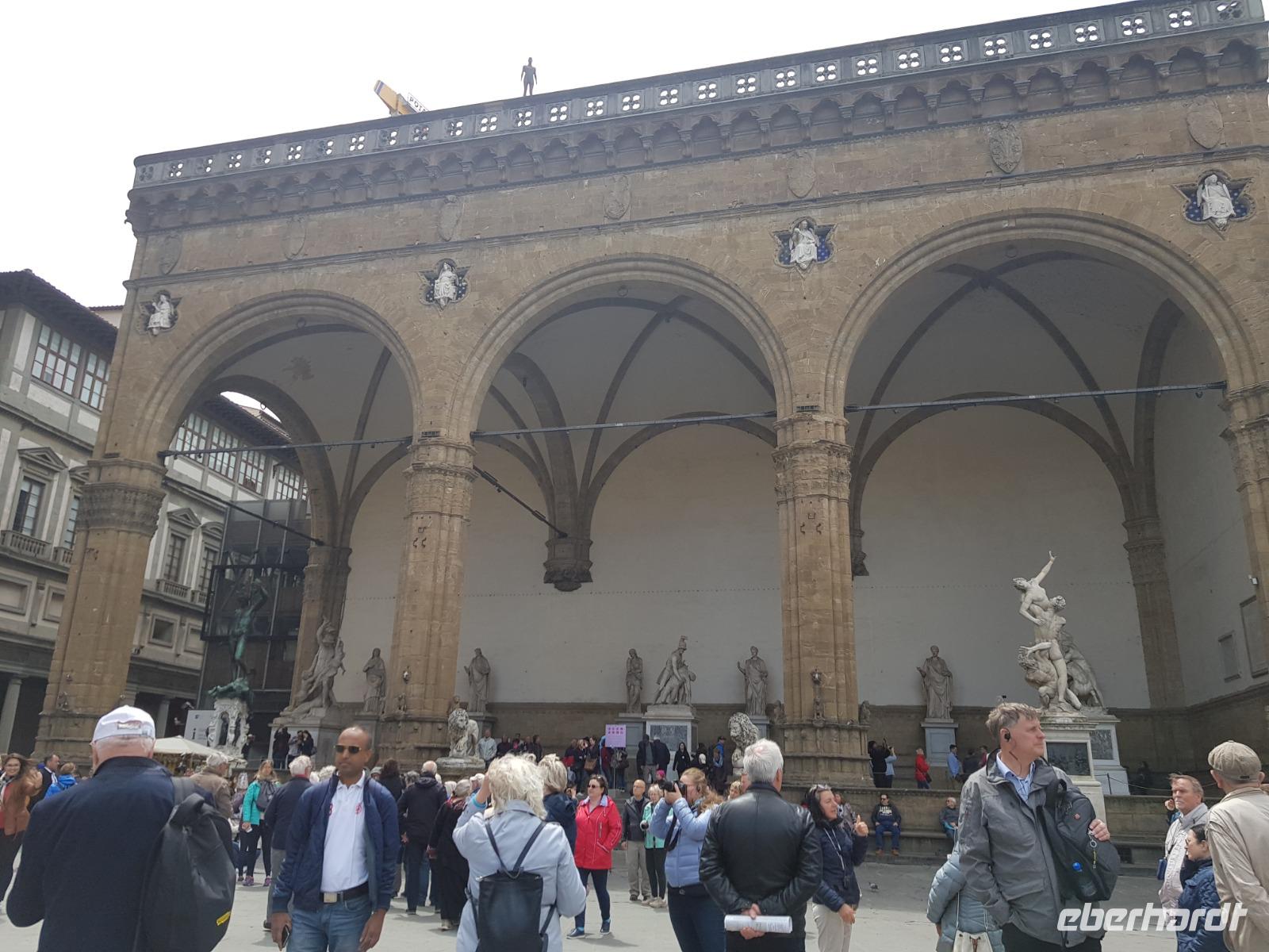Cristina fährt gemeinsam mit uns und unserem Bus zur Piazzale Michelangelo. Von hier aus haben wir einen atemberaubenden Blick über die ganze Stadt Florenz. Danach führt uns unsere Stadtführerin zu Fuß durch die Innenstadt. Wir bewundern die bedeutendsten Bauwerke der Stadt: den Dom Santa Maria del Fiore, mit der mächtigen Kuppel aus dem 13. Jahrhundert, die Kirche Santa Croce mit den Grabmalen Michelangelos und Galileis und die Piazza della Signoria mit dem einzigartigen Skulpturenpark aus dem 14. Jahrhundert. Unsere Stadtführung endet auf der Ponte Vecchio, der ältesten Brücke, die über den Fluss Arno führt, wir schlendern entlang an zahlreichen Goldschmieden.