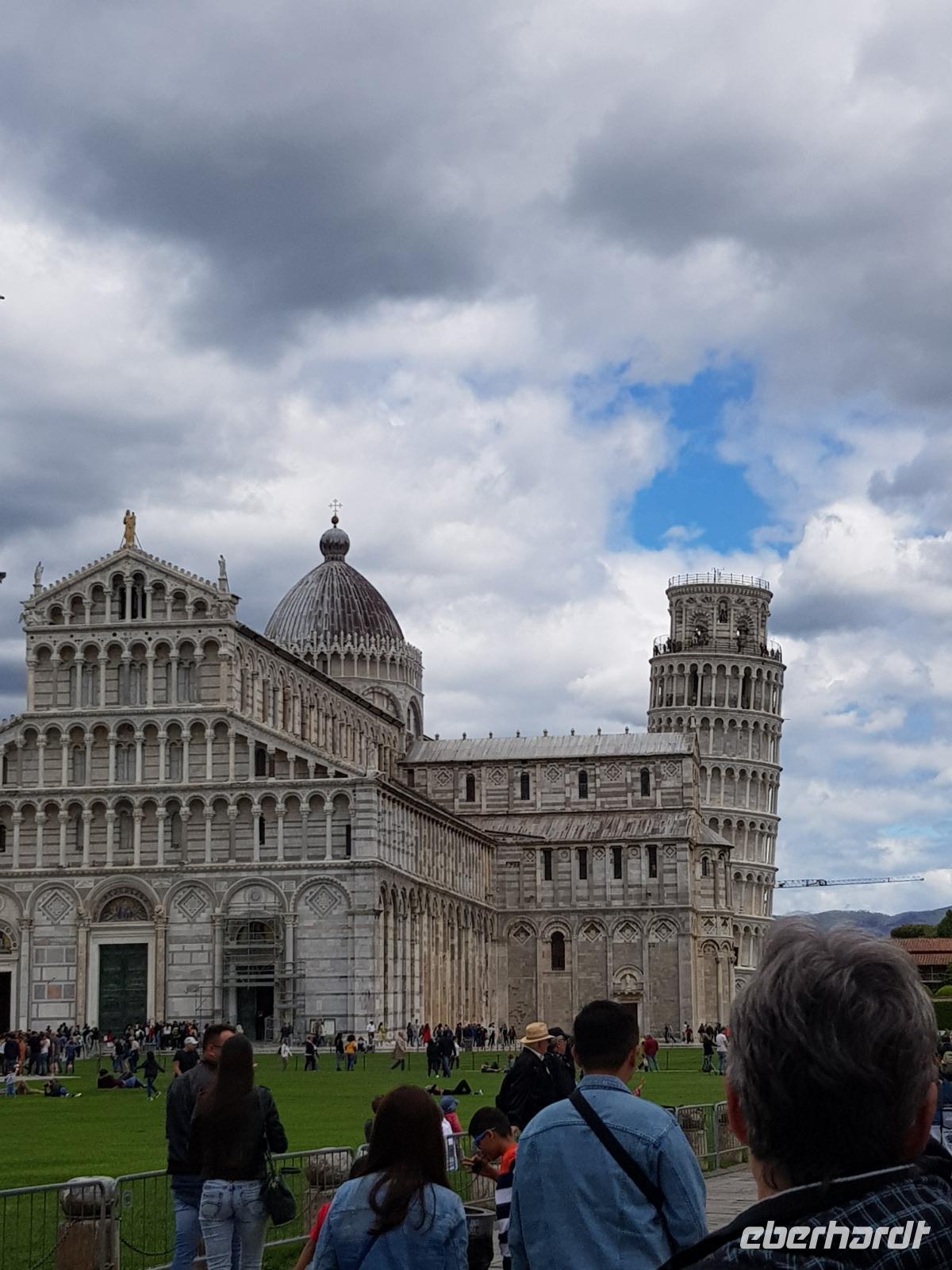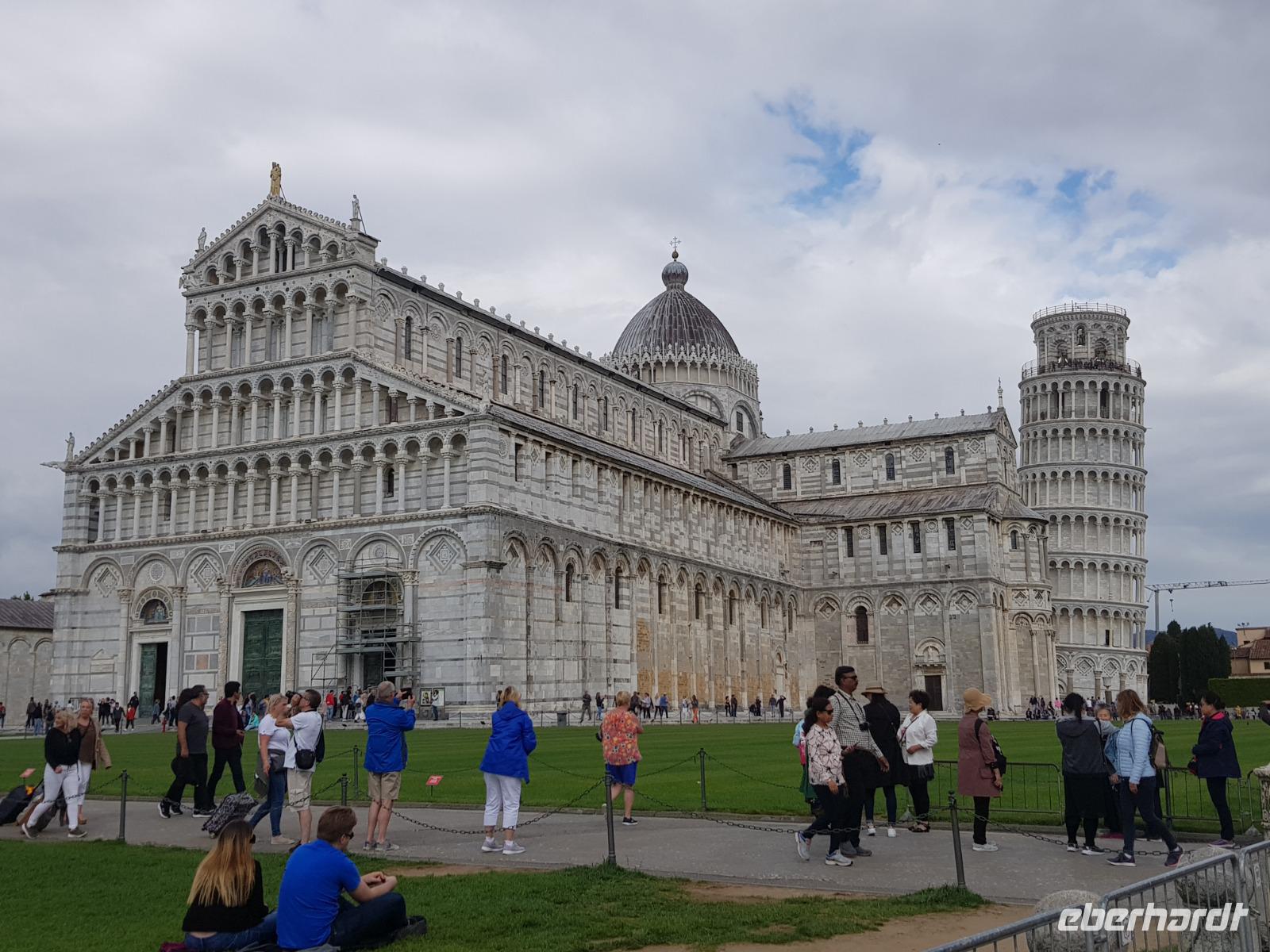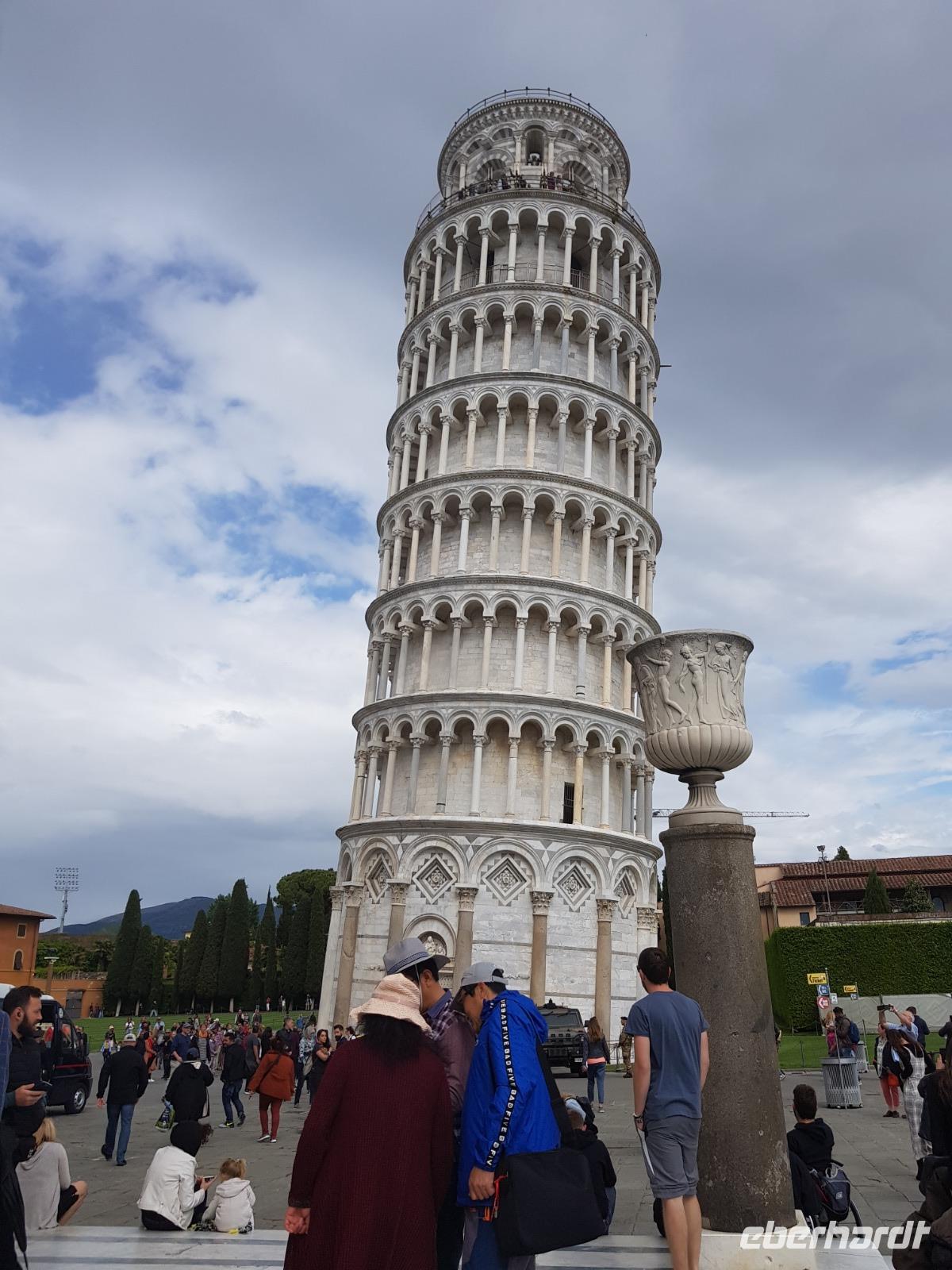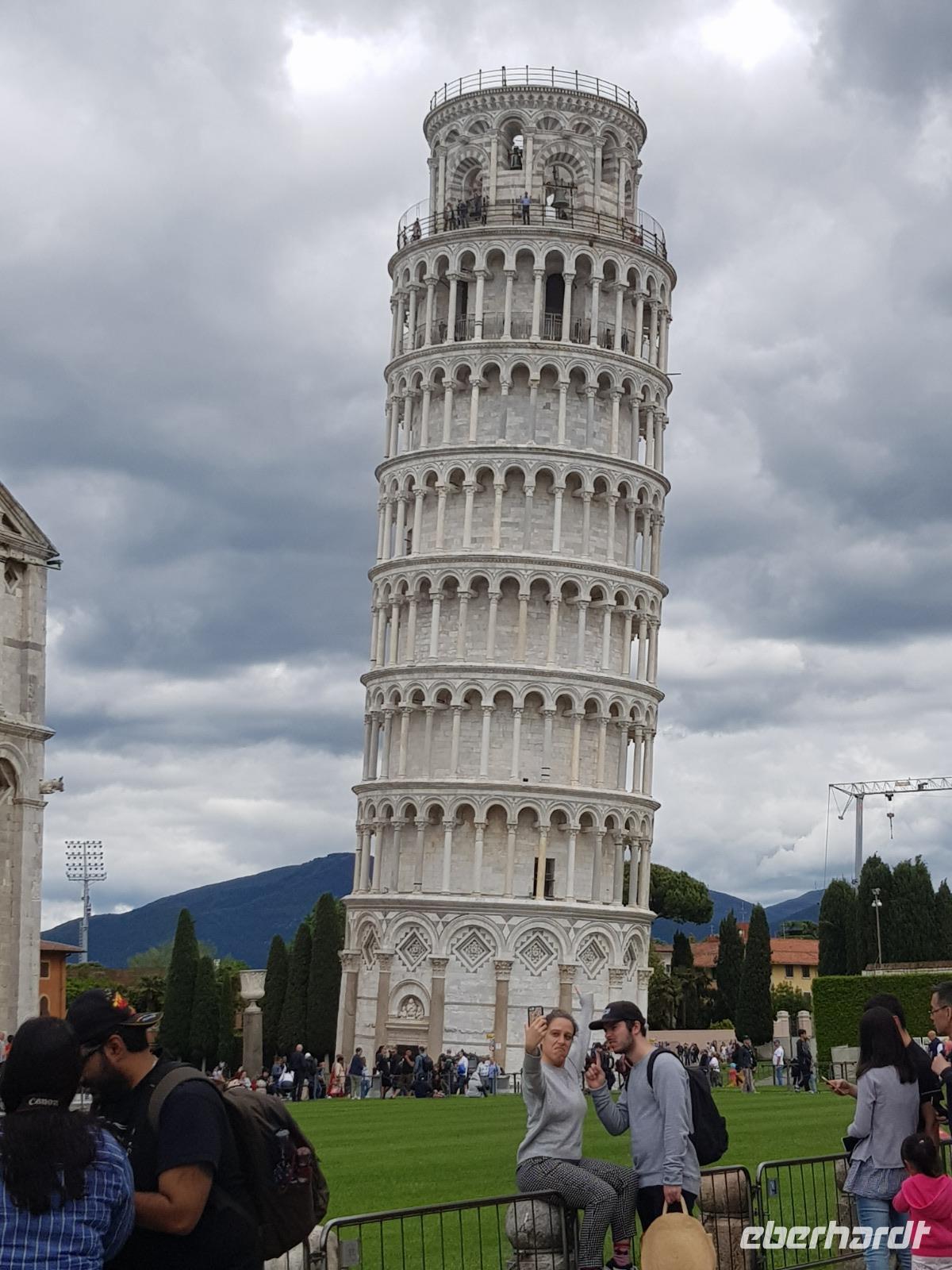 In Pisa angekommen machen wir uns auf den Weg zum Piazza dei Miracoli, dem Platz der Wunder. Hier blicken wir auf das wohl bekannteste schiefe Gebäude der Welt, den schiefen Turm von Pisa. Mit Nada zusammen entdecken wir die kleinen und eindrucksvollen Winkel der Stadt.