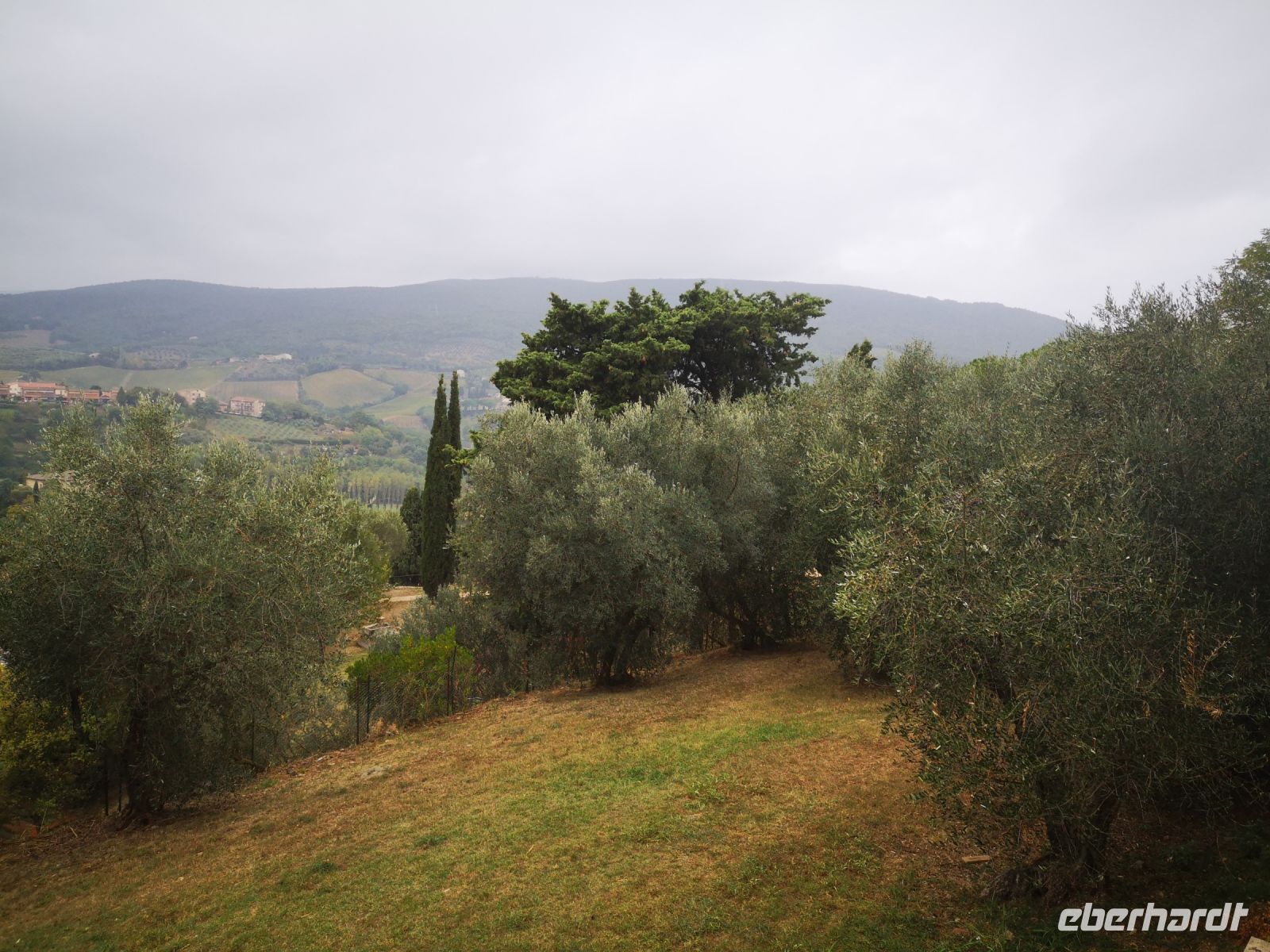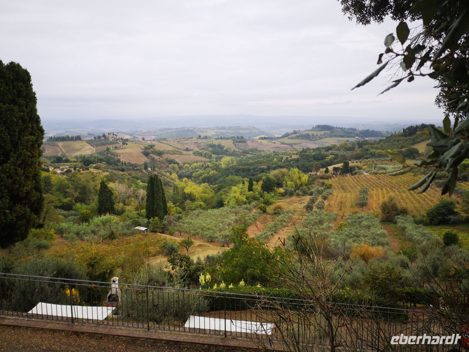 Die typische Landschaft der lieblichen Toskana Hügel, den Zypressen und den Tellerpinien, umgeben mit dem herbstlichen Wuchs der Maggia. Dieses Landschaftsbild alleine wäre es schon Wert in die Toskan