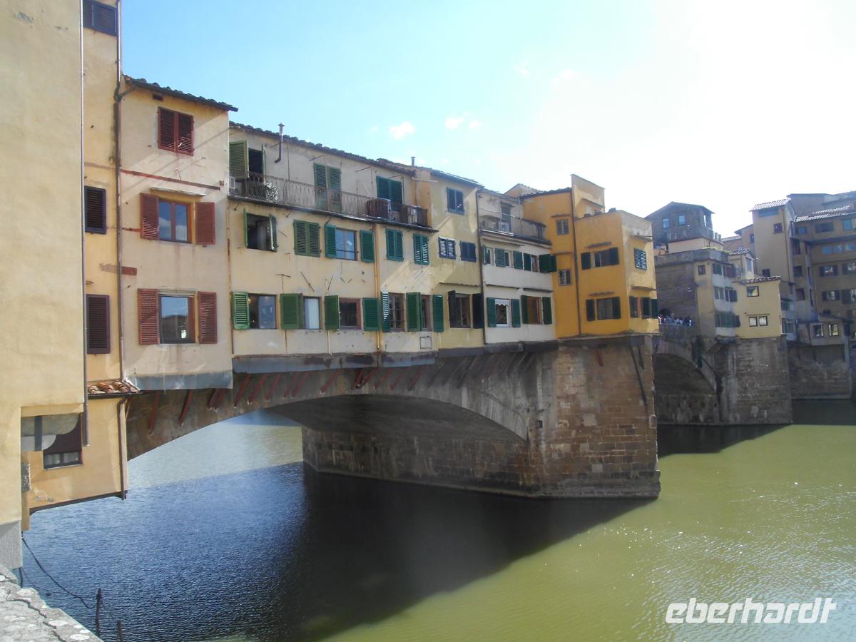 Nach der Mittagspause, die wir in den unzähligen Restaurants und Eisdielen verbringen, ziehen wir weiter in Richtung Ponte Vecchio und Uffizien. Hier ist jeder gut aufgehoben, der Botticelli, Tintoretto und all die anderen alten Meister sehen möchte. Am besten man bestellt die Karten vor. Die Schlangen sind elend lang. Lang ist auch der Tag in der Stadt gewesen, die wegen der vielen Sehenswürdigkeiten übervoll mit Touristen ist. Wir beenden die Führung auf der Piazza della Signorina vor dem Palazzo Vecchio, vor welchem der berühmte David von Michelangelo steht. Der war ursprünglich für die Fassade des Doms gedacht, den Auftraggebern aber dann doch zu revolutionär in der Gestalt. Noch eine gute Stunde Freizeit, und dann brennen wirklich allen die Füße. Gut, dass es nicht so weit ist, bis Montecatini. Und im 5 Sterne Reisebus ist die Fahrt schnell erledigt. Nun erst einmal im Hotel die Füße pflegen und dann bei einem guten Abendmenü das Erlebte noch einmal an sich vorüber ziehen lassen.