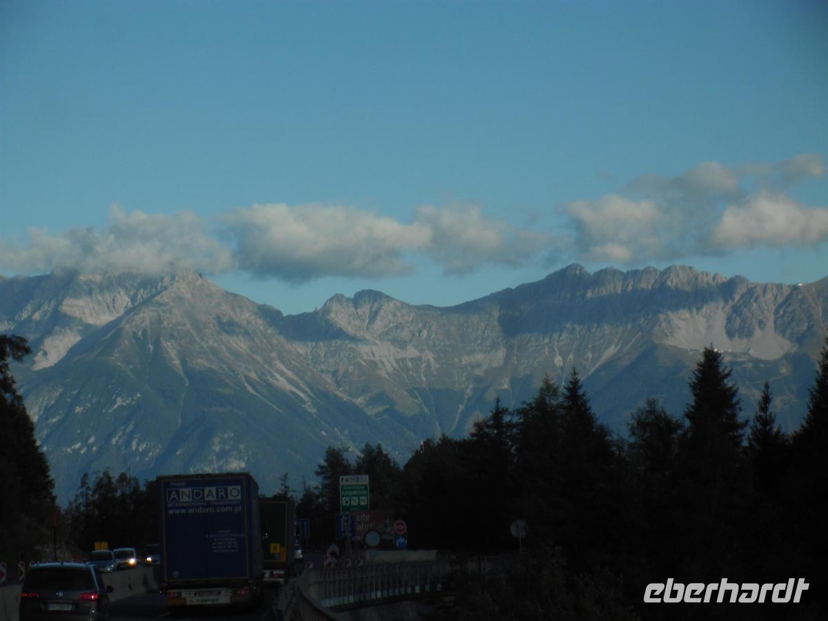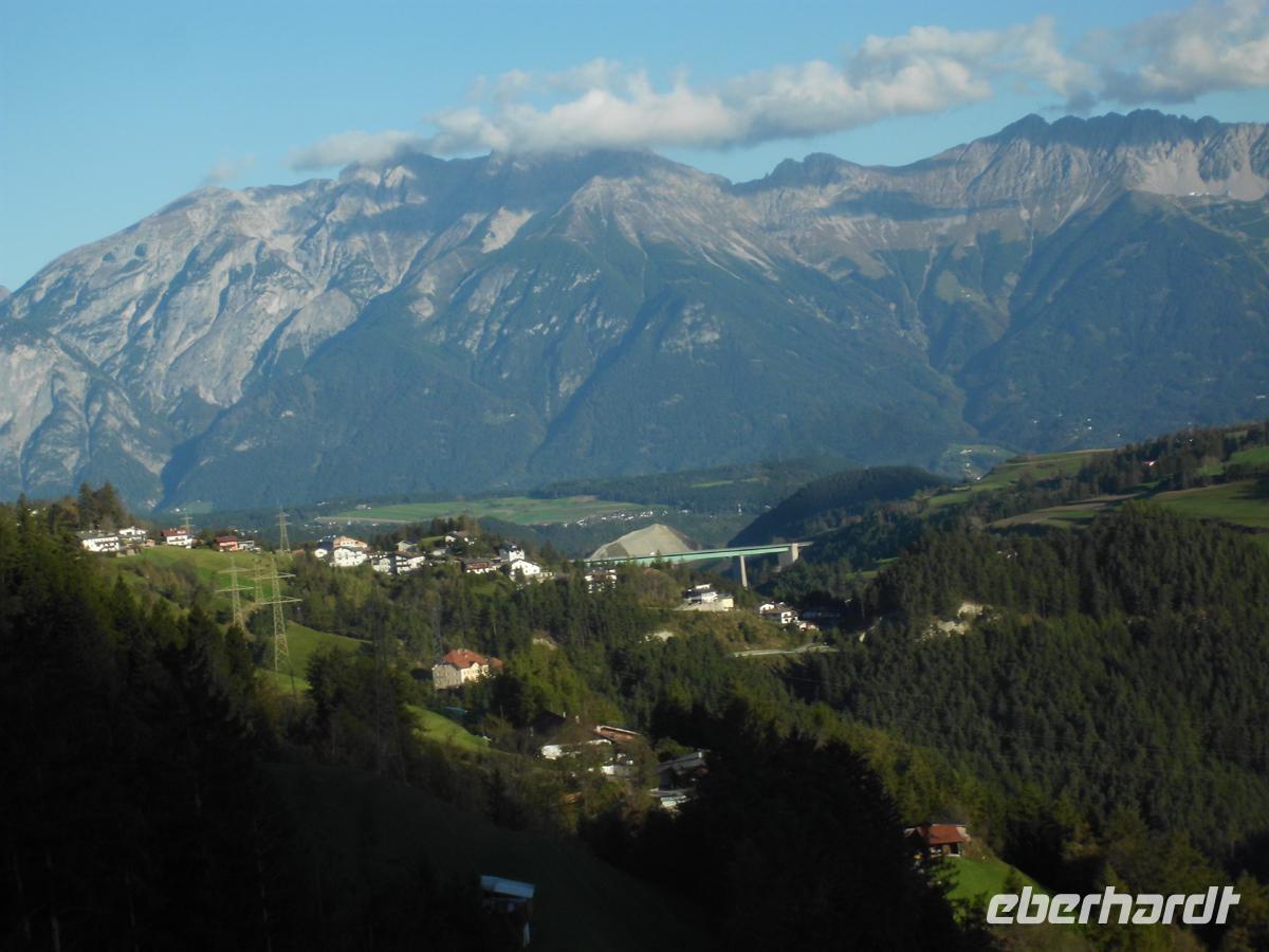 Diese Reise startet von Dessau aus. Durch Sachsen-Anhalt, Thüringen und Bayern begeben wir uns zur österreichischen Grenze, welche wir am Nachmittag erreichen. Der Inn begleitet uns nun bis Innsbruck. Wir kehren dem Karwendelgebirge buchstäblich den Rücken und reisen zum Brenner hinauf. Einen Stop legen wir auf an der Europabrücke ein, die 160 m hoch das Wipptal überquert. 19159 - 1963 errichtet, war das Bauwerk seinerzeit eine ingenieurstechnische Meisterleistung. Am späten Nachmittag erreichen wir den Pass und sind nun in Südtirol. Nur noch 15 km bis Sterzing, und wir beziehen unser sauberes Hotel, wo wir nach einem guten Abendmenü unsere erste Nacht verbringen.