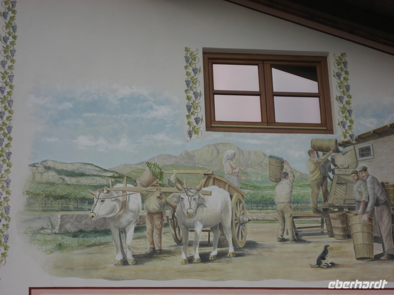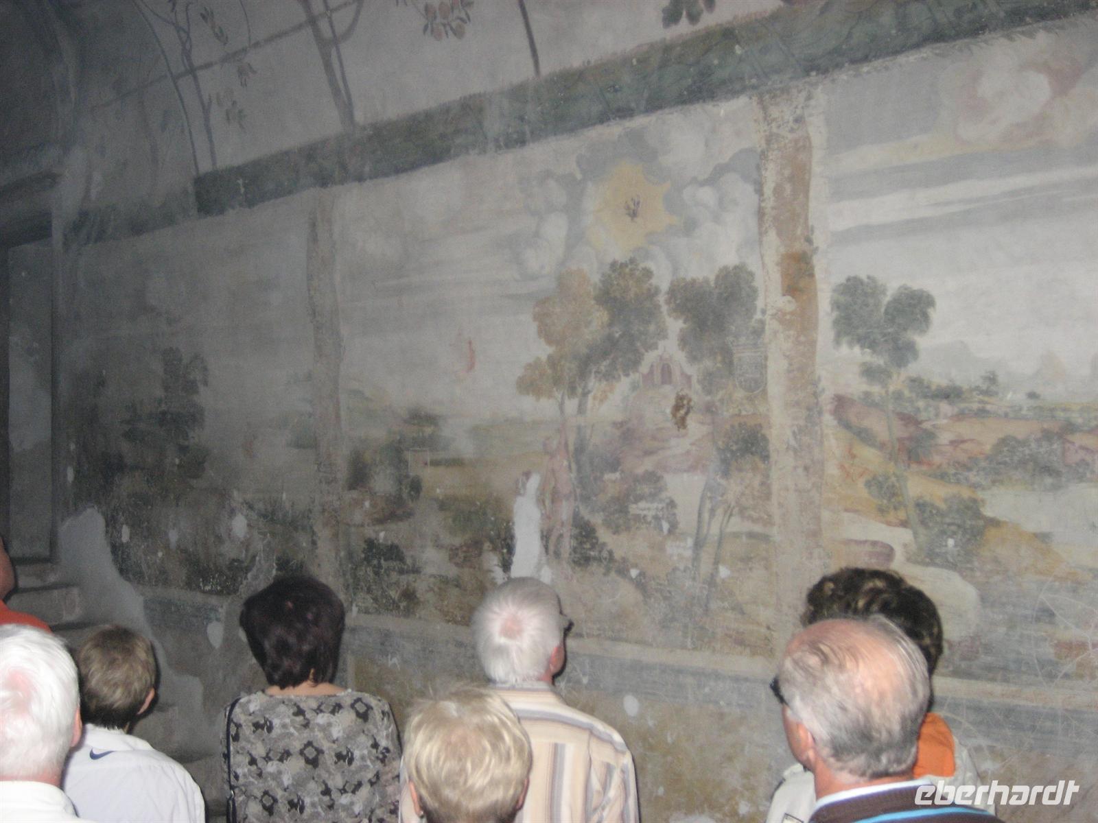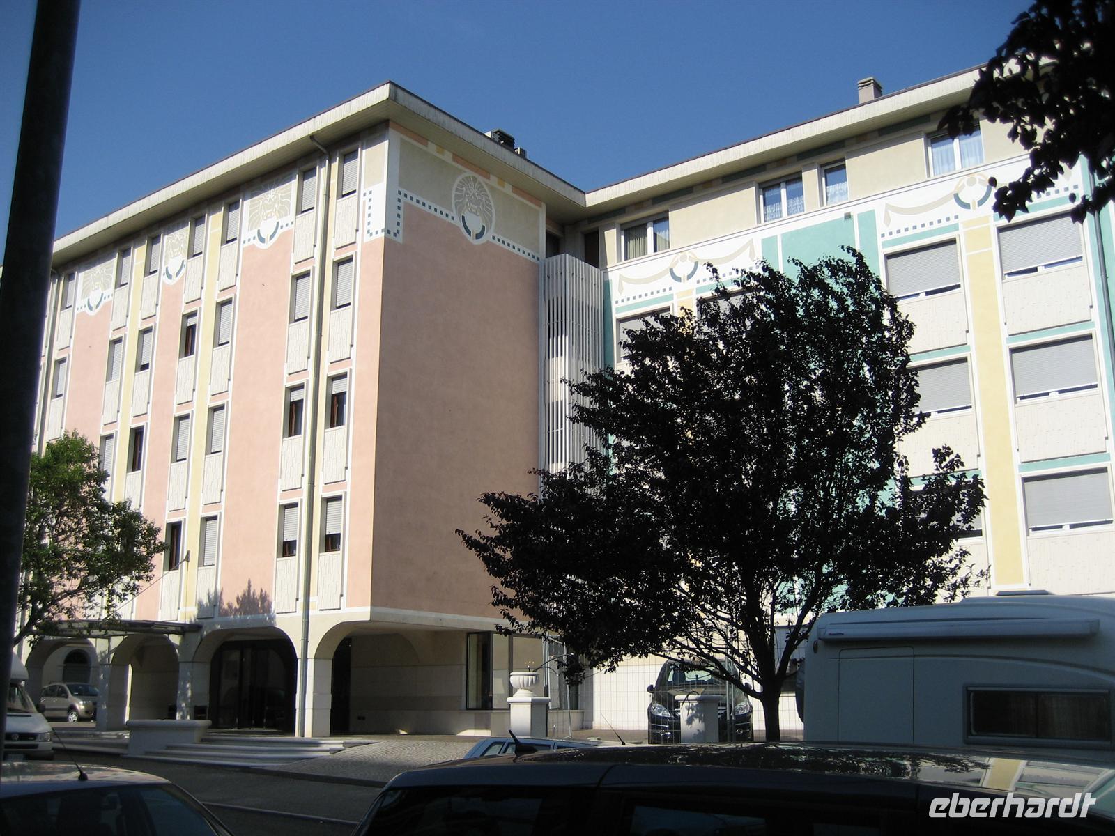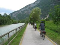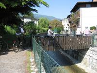 Unsere Radtour beginnen wir heute ebenfalls wieder direkt am Hotel. Sie führt uns durch das Weinanbaugebiet des berühmten "Marzemino". Ein letztes Mal folgen wir der Etsch (Adige). Die historische Mozartstadt "Ala" verbreitet sehr viel Charme aus vergangenen Zeiten, als die Herstellung von Seide und Samt dominierten. Alte Palazzi liebevoll restauriert, Gärten in den Hinterhöfen mit wunderschönen Rosenstöcken. Wir wandeln gedanklich in schönen Kleidern, in Wirklichkeit haben wir Radlerhosen an und sind bestimmt nicht ganz so schick anzusehen. Es macht Spaß. 1 Stunde noch dann ist leider auch diese Radtour vorbei. Jeder möchte so langsam wie irgend möglich fahren, damit es nicht zu ENDE ist. In Borghetto werden wir unsere Räder verladen und gemeinsam in einem landestypischen Weinlokal zu Mittag essen. Wir kosten natürlich den vollmundigen Marzemino. Anregendes Stimmengewirr an einer großen Tafel, aus den Gesprächen kann man allerlei heraushören. Eine gelungene Radreise - die Bergwelt immer im Blick genüsslich im Flachland radeln, dabei Köstlichkeiten des Landes probieren. Ein gutes Hotel mit guter Küche, ein Busfahrer der umsichtig über alles wacht und zwei Radreiseleiter, die ALLE Radgäste gesund und munter täglich auf's Neue an das Ziel bringen. Ausgeruht kommen wir heute schon einmal am Nachmittag in unserem Hotel an. Einige möchten durch Rovereto bummeln, andere einkaufen, oder einfach faulenzen. Zeit bis zum Abendessen haben wir heute reichlich.