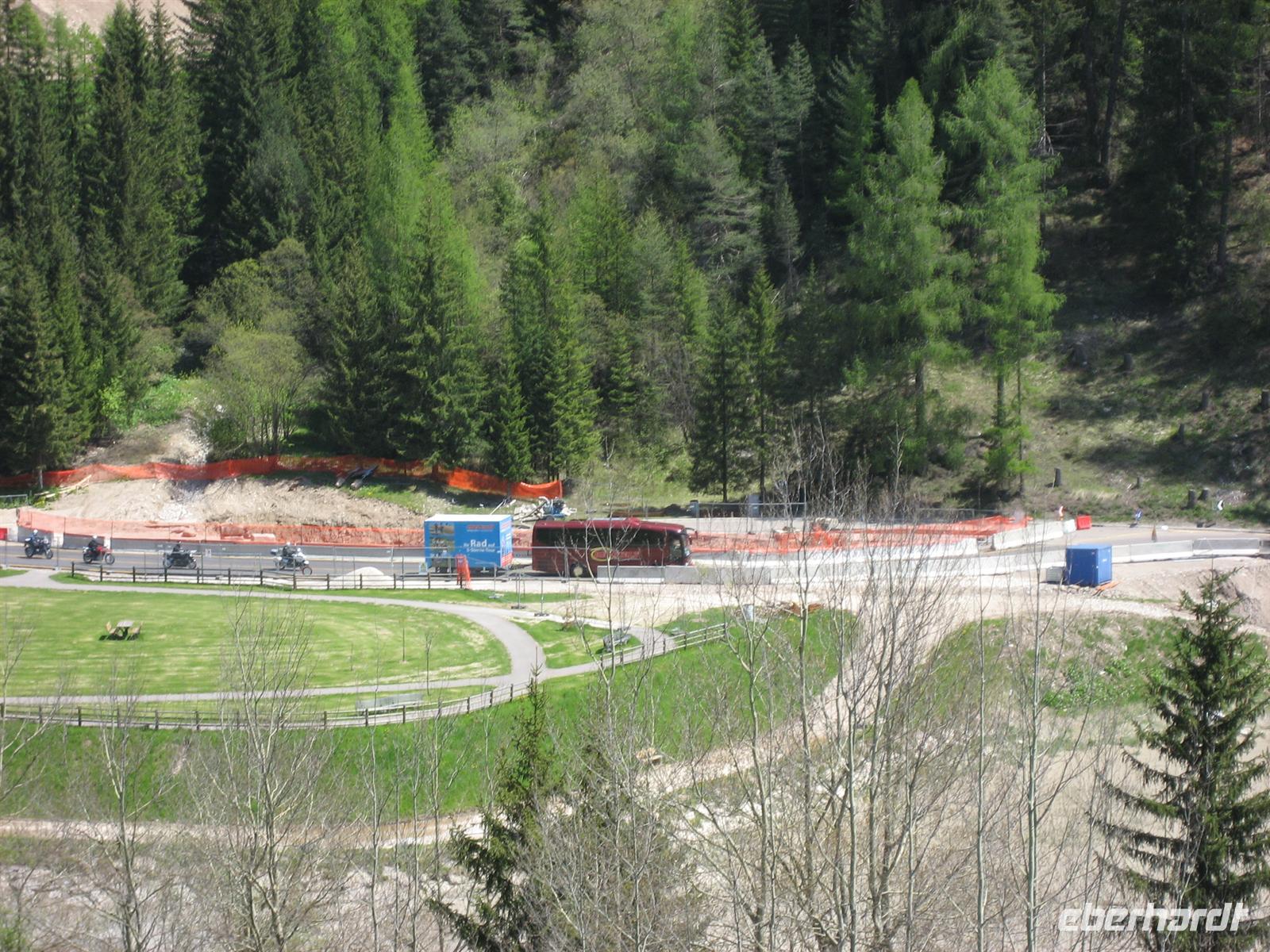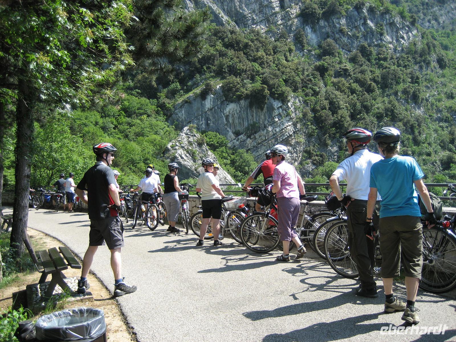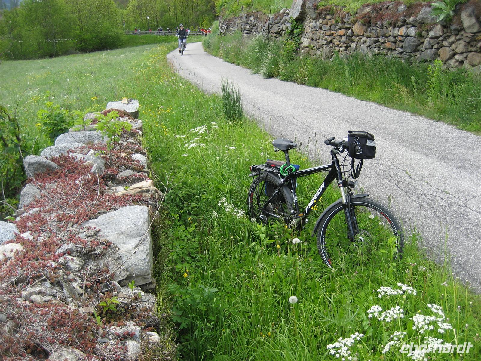 Vogelgezwitscher und Sonnenschein, ein neuer spannender Radfahrtag kann beginnen. Einige Frühaufsteher kommen schon vom Frühstück, andere schlafen länger, wie jeder mag. Pünktlich 8:30 Uhr fahren wir mit dem Bus erst einmal nach Mezzana in eine Käserei. Dort sollte man spätestens gegen 11:00 Uhr sein, sonst kann man den Ablauf der Käseherstellung nicht mehr sehen. Die frische Milch wird angeliefert und gleich verarbeitet. Die Käseleiber werden auch noch sehr schön gestaltet, nicht nur eine Gaumenfreude sondern auch ein schöner Anblick. Mittlerweile ist die Mittagszeit heran, der kleine Hunger kommt so langsam. Wir haben uns heute vorsorglich mit frischem Brot, Wein und Käse aus der Käserei ausgerüstet. Ingo hat Kaffee bzw. Cappuccino vorbereitet. Ein Rastplatz mit schönem Panorama - ist unser nächstes Etappenziel.
