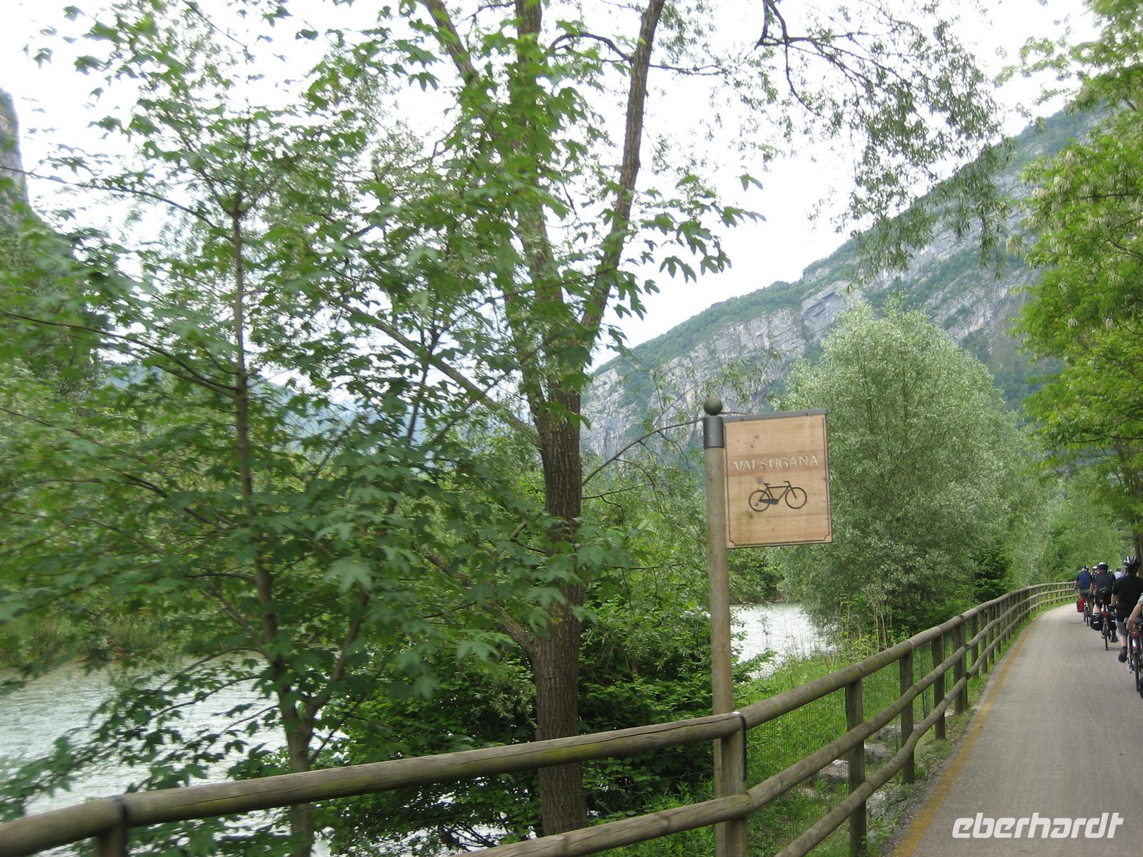 Mit den Eindrücken des letzten Tages sitzen alle erwartungsvoll im Bus. Jeder Tag ein Höhepunkt! - Und Heute? Was werden wir wieder erleben? Daniel erzählt auf der Fahrt bis nach Sella von Land & Leuten. So ist die 1 Std. Fahrzeit schnell vergangen. In Sella verlassen wir den Bus und möchten den Radtag mit einer kleinen Wanderung durch eine Kunstausstellung den besonderen Art beginnen. Skulpturen aus Naturmaterialien lassen unsere Blicke durch den Wald gleiten. Ob Wolf oder Bienenkorb, es ist toll was man aus Moos und Holz zaubern kann. 2 Stunden sind wir im Wald zu Fuß unterwegs. Am Ende kommen wir zu einem Rastplatz, der Bus ist schon da, Ingo hat die Räder bereits ausgeladen. Da es mitten im Wald kein Restaurant gibt, nutzen wir heute mal unseren Busservice. Suppen, heiße Würstchen, Kaffee, Tee aber auch kalte Getränke werden schnell ausgegeben damit wir gestärkt unsere Radtour beginnen können. Bergab- eine schöne Straße führt uns nach Borgo, dort gibt es ein kleines Café mit Kuchen und Eis. Ein Halt hier ist ein Muss! Der Radweg führt uns bis nach Primolano, immer am Brentafluß entlang. Eine kleine Abkühlung tut uns gut, denn die Sonne meint es heute gut mit uns. Herr Kneip hätte seine Freude dies zu sehen. In Primolano verladen wir unsere Räder. 1 Std. Busfahrt zum Ausruhen, bei dem Abendessen sind alle wieder fit.