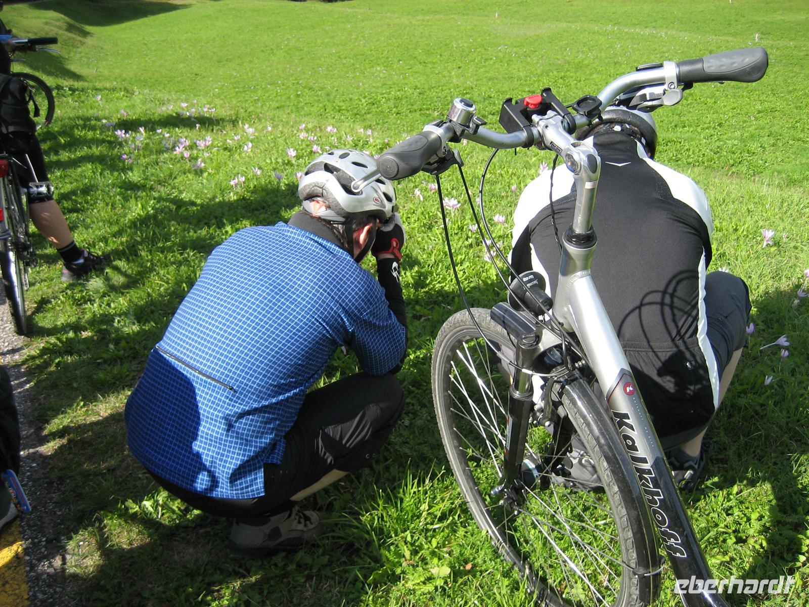 Etwas müde, aber voller Erwartung geht es zunächst mit dem Bus und unserem Eberhardt - Fahrradanhänger Richtung München. Da ich die Radreise nun zum zweiten Mal in diesem Jahr begleite, gebe ich Stammgästen aber auch neuen Gäste unserer Radgruppe hilfreiche Tipps zu den einzelnen Radetappen. Die kleinen Unsicherheiten zur Strecke sind dadurch schnell zerstreut. Eine Tour für jedermann, da wir die Berge mit dem Bus erklimmen, und wir bei den Abfahrten diese dann genießen werden. Der Bus ist die ganze Woche unser stetiger Begleiter. Ein großer Vorteil, sollte ein Radler pausieren wollen oder auch der Himmel es nicht gut mit uns meinen. Dann können wir nur lächeln, denn wir haben unseren Bus immer in der Nähe. Getränke und ein kleiner Imbiss wie bei allen anderen Reisen stehen somit immer zur Verfügung.