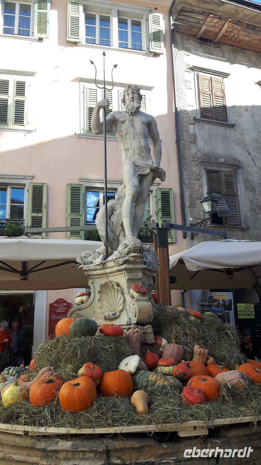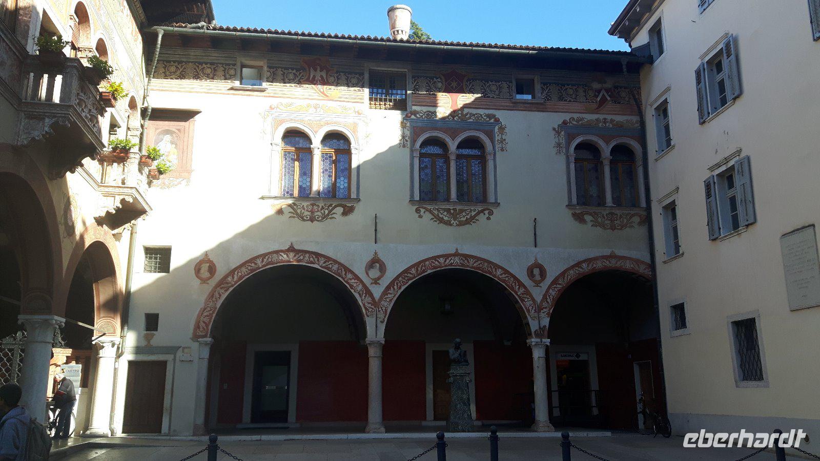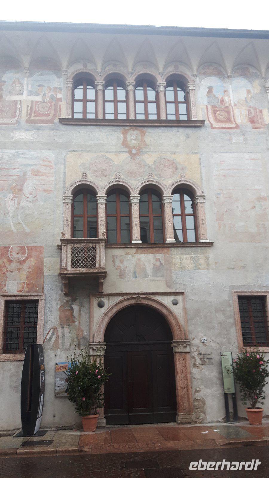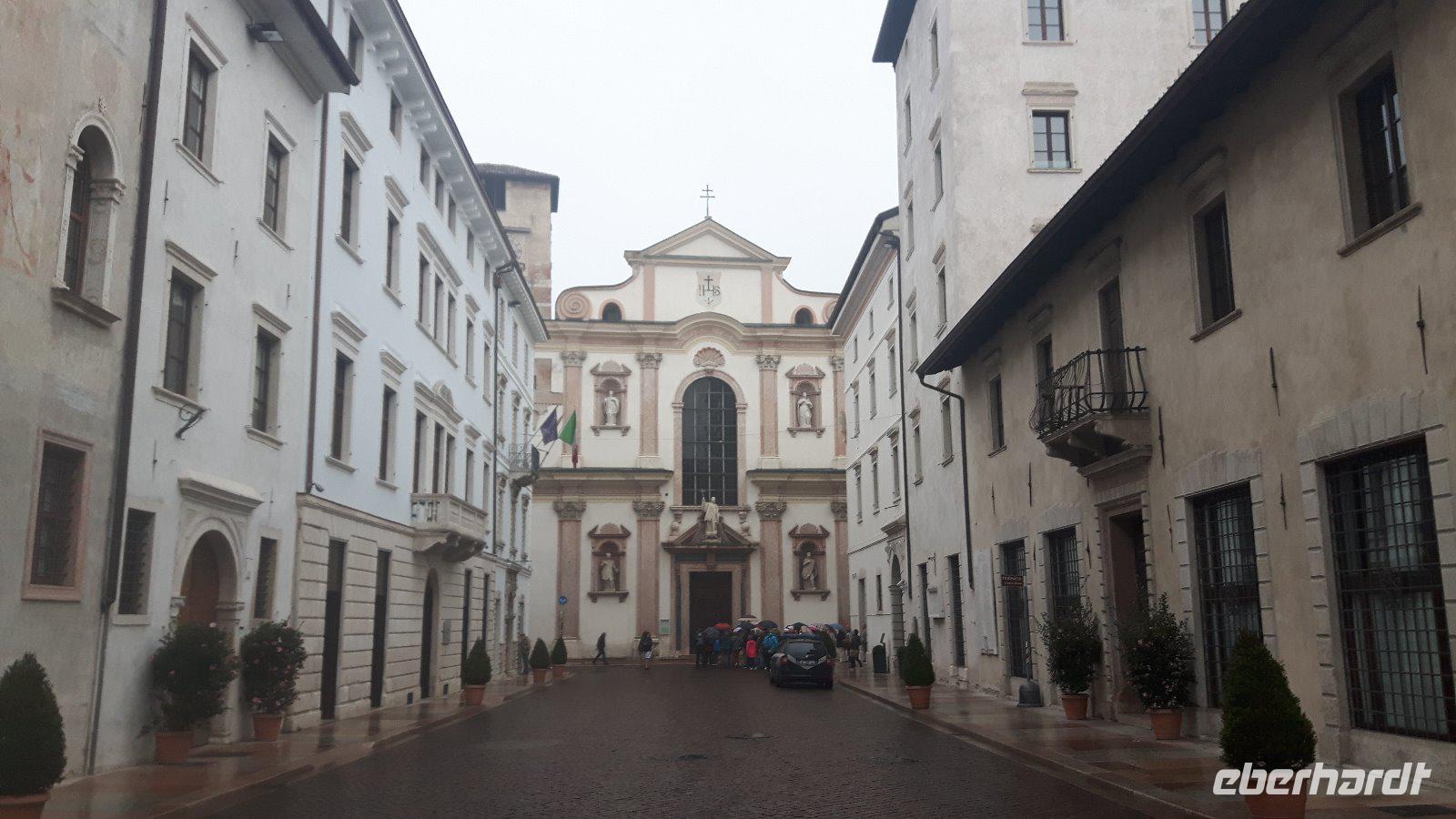 Nach einem guten Frühstück fuhren wir gut gestärkt in die nur wenige Kilometer entfernte Regionshauptstadt Trient, um gemeinsam mit zwei Stadtführerinnen diese kleine Metropole zu Fuss zu erkunden. Leider war uns der Wettergott heute noch nicht so ganz hold, aber es konnte nur besser werden... Die Stadt mit ihren 110.000 Einwohnern kann, wie wir erfuhren, auf eine bewegte Geschichte zurückblicken. Von den Kelten gegründet und dann von den Römern erobert und auf den Namen "Tridentum" getauft, beschloss Kaiser Heinrich II. Anfang des 11. Jahrhunderts, den Bischöfen die weltliche Gewalt zu übertragen. Trotz verschiedener Revolutionen, blieb die Herrschaft bis zum Einmarsch der Truppen Napoleons im Jahre 1796 bei den Bischöfen. Danach wurde das Gebiet dann Teil des Kaiserreiches Österreich-Ungarn und ab dieser Zeit begann man auch mit der Verwirklichung technischer Werke wie der Verlegung der Etsch, dem Bau der Brennerbahn und einer moderneren Stadtentwicklung. Die eigene Autonomie hat viel dazu beigetragen, dass Trient heute ein wichtiger Verwaltungs- und Wirtschaftszweig und auch Sitz der renommierten Universität ist, die besonders auch für ihre Forschung bekannt ist. Die verschiedenen Fresken auf den Palazzi der Altstadt berichten etwas von der Geschichte der Stadt und zeigen u. a. mythologische Figuren, die Reise der deutschen Kaiser nach Rom, das Konzil 1545, oder das Fürstbistum das über Jahrhunderte über das Tal entschied. Trient hat heutzutage viel zu bieten - nicht nur geschichtsträchtige Denkmäler, Palazzi und Schlösser, sondern auch eine besondere Atmosphäre, Kultur und kulinarische Köstlichkeiten. Nach der interessanten und ausführlichen Besichtigung ging es bereits am frühen Nachmittag nach Levico Terme zurück, wo wir bereits im Hotel zum Kaffeetrinken erwartet wurden. Es gab leckeren Apfelkuchen und Crostata, einen traditionellen italienischen Kuchen mit Marmelade bzw. Schokoladencreme. Der weitere Nachmittag stand uns für individuelle Entdeckungen zur Verfügung. Zudem stand in unserem Hotel ein gepflegtes Schwimmbad mit Wellness-Bereich zur Verfügung.