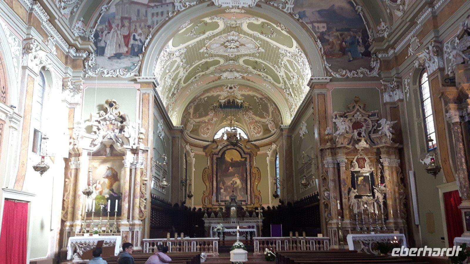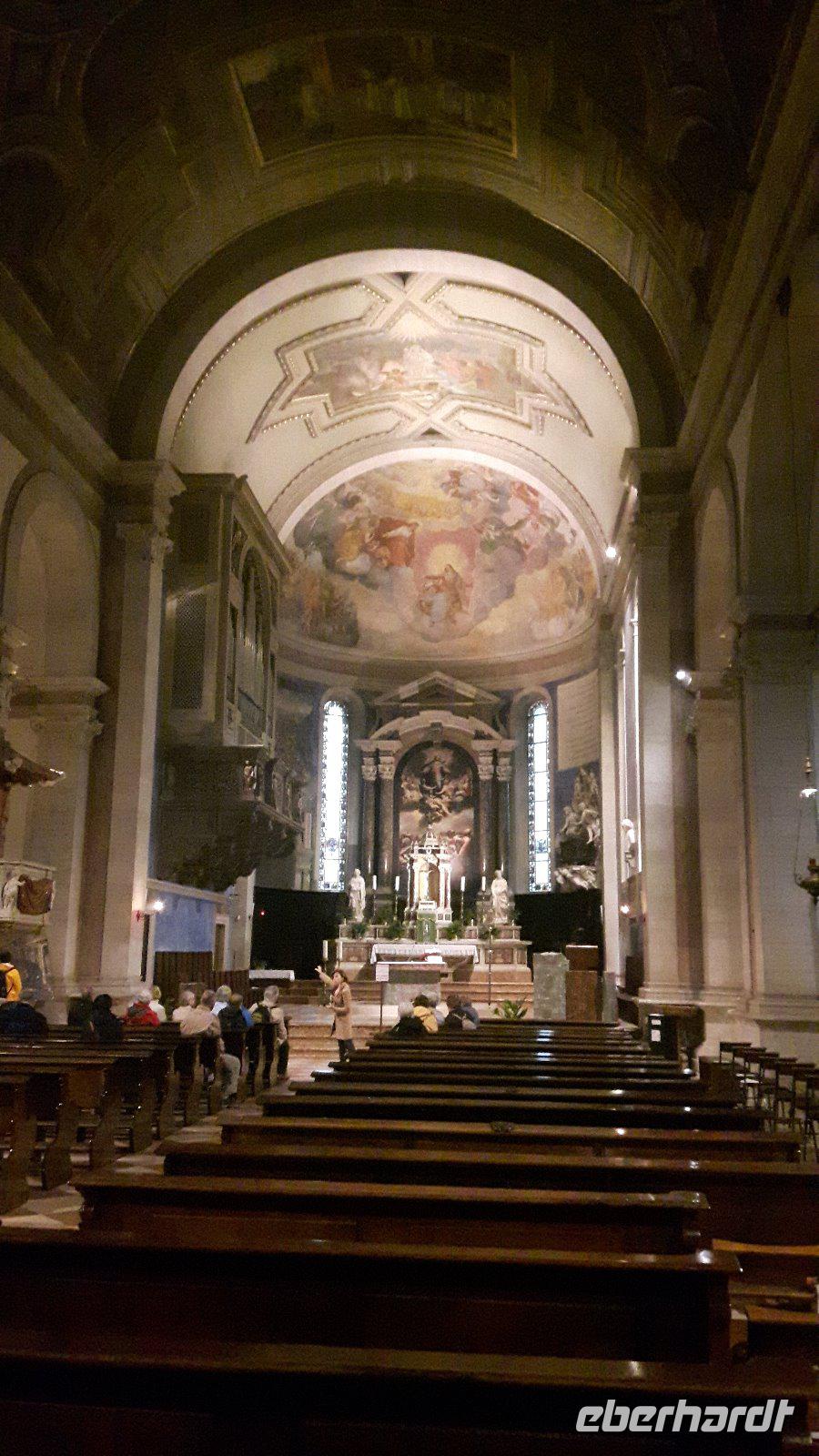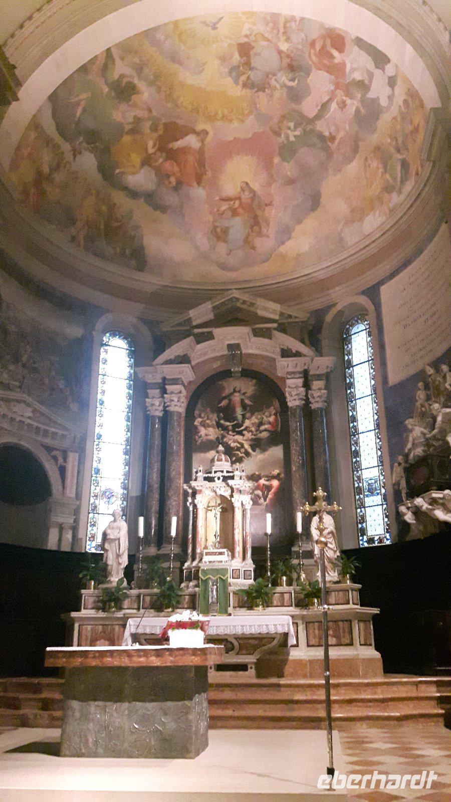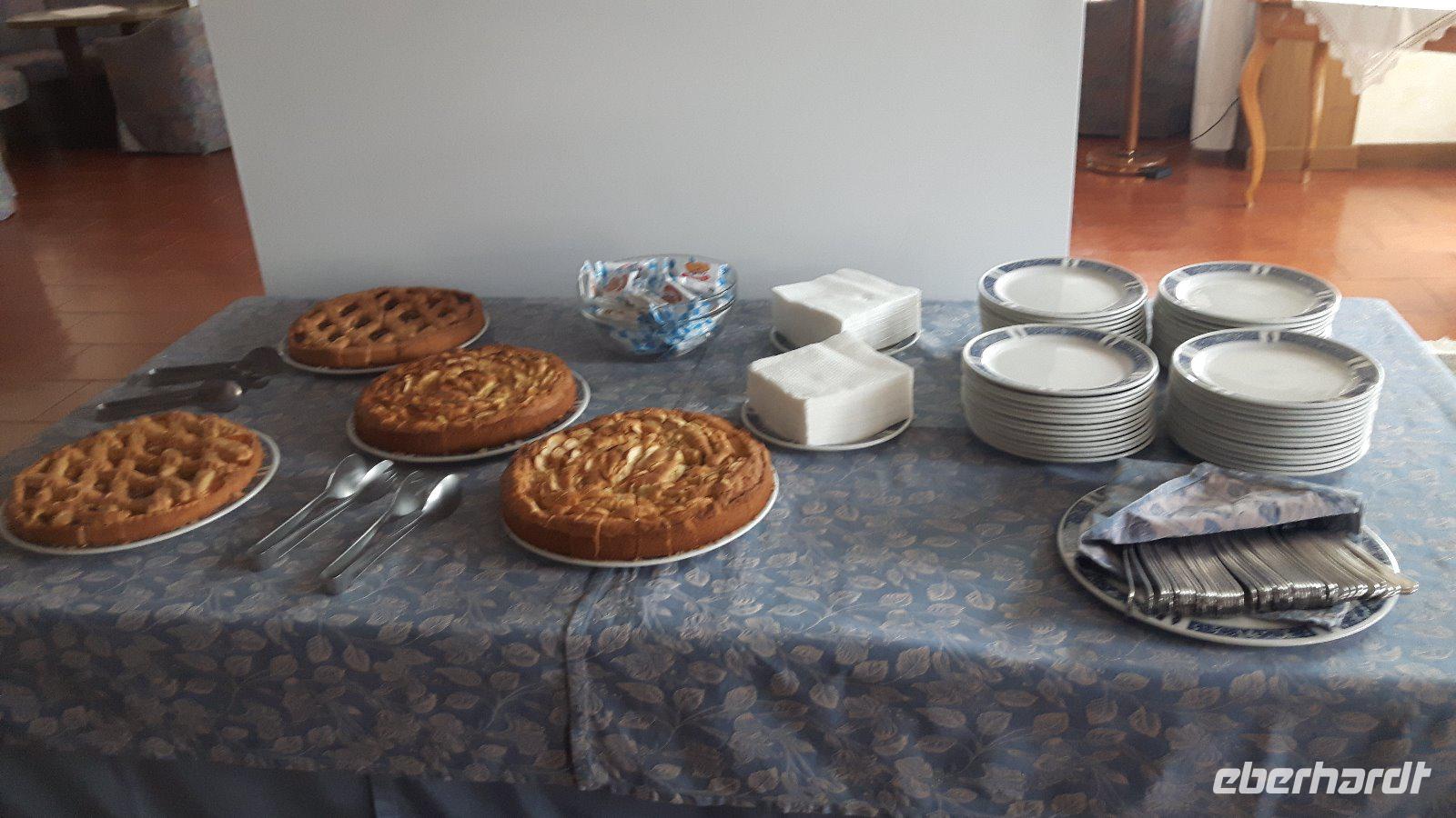Nach einem guten Frühstück fuhren wir gut gestärkt in die nur wenige Kilometer entfernte Regionshauptstadt Trient, um gemeinsam mit zwei Stadtführerinnen diese kleine Metropole zu Fuss zu erkunden. Leider war uns der Wettergott heute noch nicht so ganz hold, aber es konnte nur besser werden... Die Stadt mit ihren 110.000 Einwohnern kann, wie wir erfuhren, auf eine bewegte Geschichte zurückblicken. Von den Kelten gegründet und dann von den Römern erobert und auf den Namen "Tridentum" getauft, beschloss Kaiser Heinrich II. Anfang des 11. Jahrhunderts, den Bischöfen die weltliche Gewalt zu übertragen. Trotz verschiedener Revolutionen, blieb die Herrschaft bis zum Einmarsch der Truppen Napoleons im Jahre 1796 bei den Bischöfen. Danach wurde das Gebiet dann Teil des Kaiserreiches Österreich-Ungarn und ab dieser Zeit begann man auch mit der Verwirklichung technischer Werke wie der Verlegung der Etsch, dem Bau der Brennerbahn und einer moderneren Stadtentwicklung. Die eigene Autonomie hat viel dazu beigetragen, dass Trient heute ein wichtiger Verwaltungs- und Wirtschaftszweig und auch Sitz der renommierten Universität ist, die besonders auch für ihre Forschung bekannt ist. Die verschiedenen Fresken auf den Palazzi der Altstadt berichten etwas von der Geschichte der Stadt und zeigen u. a. mythologische Figuren, die Reise der deutschen Kaiser nach Rom, das Konzil 1545, oder das Fürstbistum das über Jahrhunderte über das Tal entschied. Trient hat heutzutage viel zu bieten - nicht nur geschichtsträchtige Denkmäler, Palazzi und Schlösser, sondern auch eine besondere Atmosphäre, Kultur und kulinarische Köstlichkeiten. Nach der interessanten und ausführlichen Besichtigung ging es bereits am frühen Nachmittag nach Levico Terme zurück, wo wir bereits im Hotel zum Kaffeetrinken erwartet wurden. Es gab leckeren Apfelkuchen und Crostata, einen traditionellen italienischen Kuchen mit Marmelade bzw. Schokoladencreme. Der weitere Nachmittag stand uns für individuelle Entdeckungen zur Verfügung. Zudem stand in unserem Hotel ein gepflegtes Schwimmbad mit Wellness-Bereich zur Verfügung.