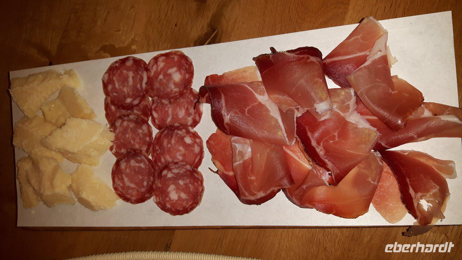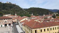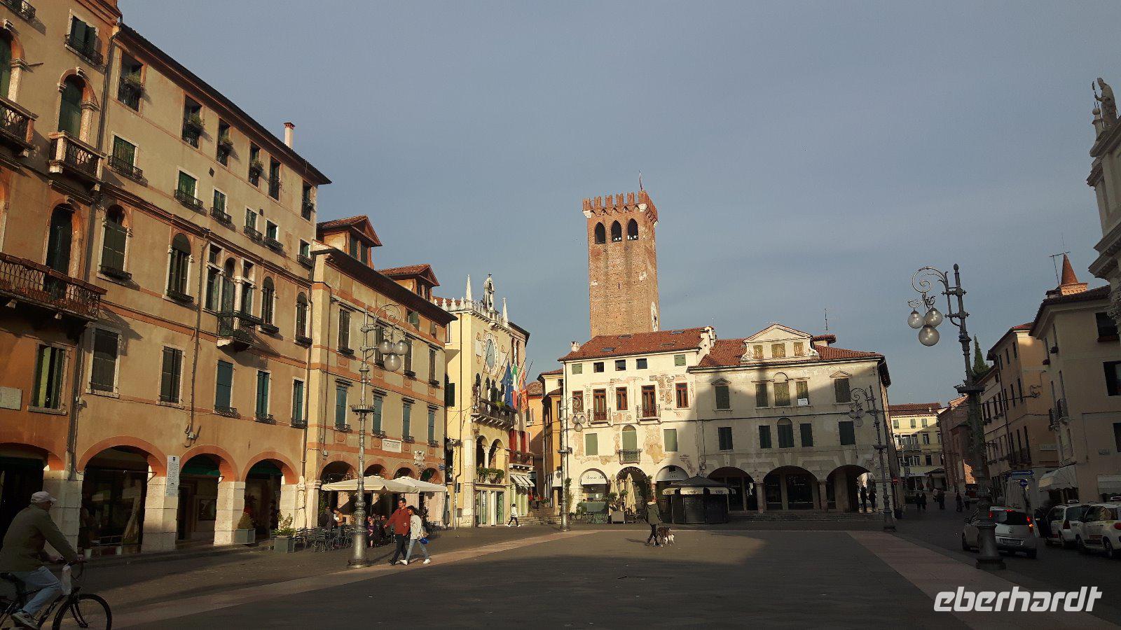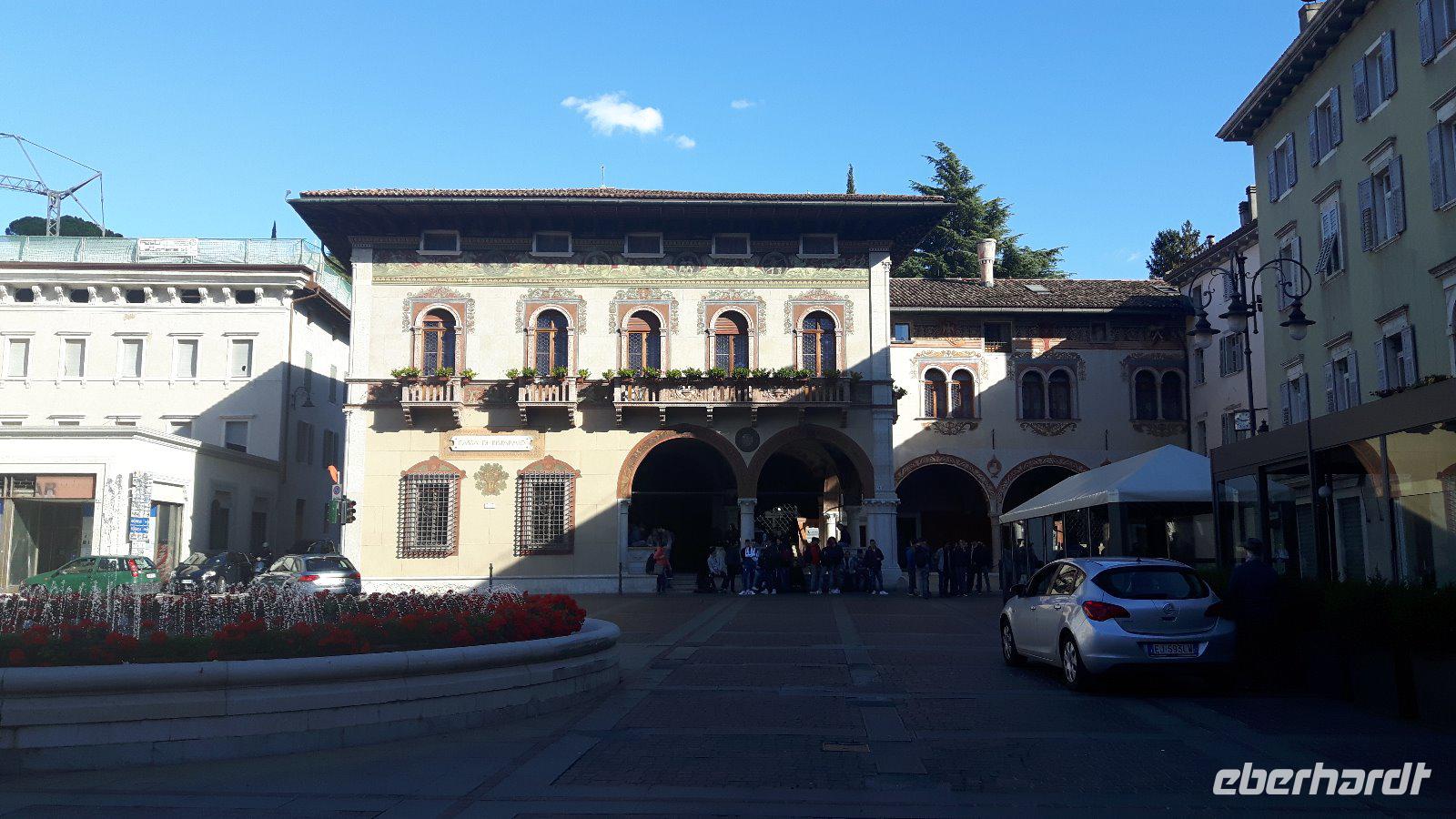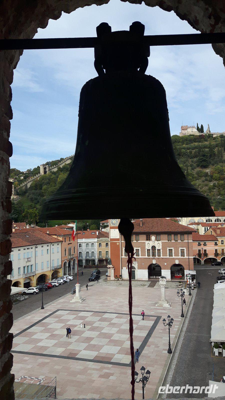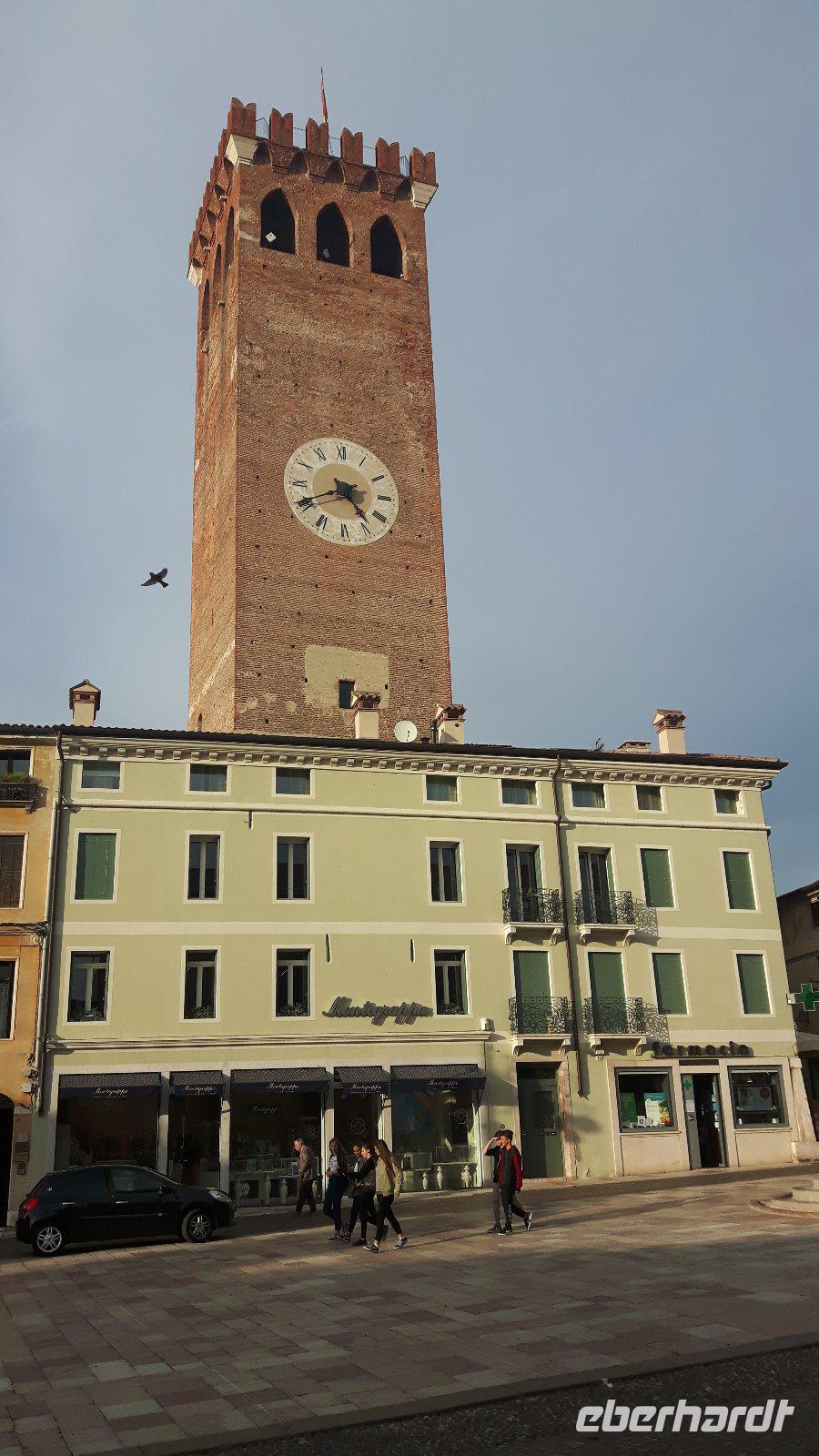 Gegen 9 Uhr brachen wir gemeinsam mit unserer einheimischen Reiseleiterin Anna in die Nachbarregion Venetien auf. Wir erhielten bereits auf der Fahrt viele wissenswerte Informationen zur Gegend und ließen die Landschaft des Valsugana ganz einfach nur auf uns wirken. Zunächst legten wir einen längeren Aufenthalt im mittelalterlich geprägten Ort Marostica ein, wo wir einen Spaziergang über den Hauptplatz mit seinem "Schachbrett" unternahmen. Hier gibt es immerhin so einiges, was mit einem Schachspiel zu tun hat, zum Beispiel das Fest mit menschlichen Spielfiguren auf diesem riesigen marmorverkleideten Schachbrett-Platz. Das menschliche Schachspiel von Marostica hat antike Wurzeln und wird mit einer lokalen Legende in Verbindung gebracht. Diese Veranstaltung muss ein absolutes Spektakel sein...! Live erleben konnten wir es zwar heute nicht, aber zumindest konnte sich der ein oder andere im Schachspiel ausprobieren!