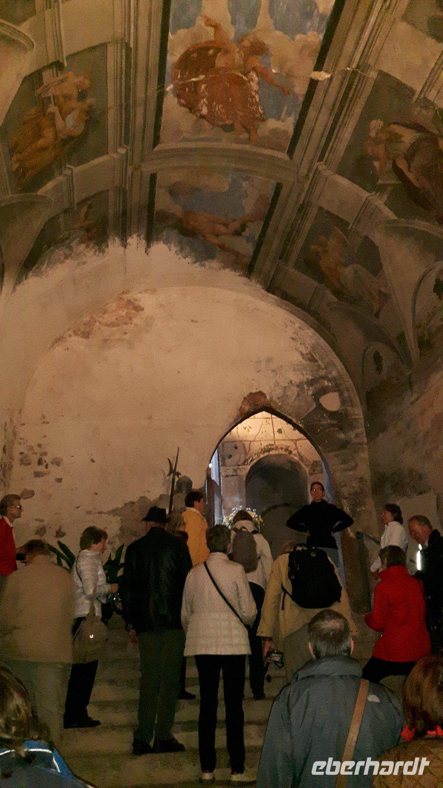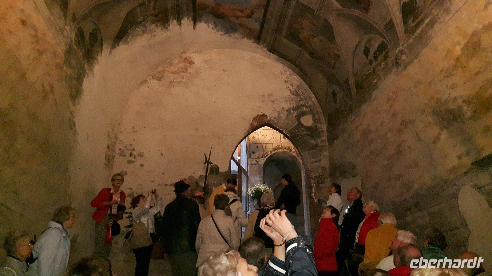 Am späten Vormittag brachen wir heute in Richtung Rovereto auf, wo wir bereits von unserer sympathischen Stadtführerin Maria erwartet wurden, um mit ihr gemeinsam zuerst die berühmte Friedensglocke zu besichtigten. "Maria Dolens", die monumentale Glocke und gleichzeitig größte Glocke der Welt, schlägt übrigens jeden Abend, um die Menschheit an die Gefallenen der Kriege aller Nationen zu erinnern und sie so den Weg zum Frieden finden zu lassen. Von hier aus ging es mit dem Bus weiter zur Barockkirche vom "Hl. Johannes der Täufer", welche im Inneren wertvolle Fresken aufweist. Schließlich erreichten wir das Stadtzentrum und unser gemütlicher Spaziergang begann. Es war angenehm, es gab keine großen Touristenströme wie in anderen Städten und man konnte die Schönheiten der Stadt ungestört genießen, denn alles ging beschaulich zu. Wir besichtigten die idyllische Altstadt mit ihren vielen engen Gassen, schönen Palästen, Plätzen und Brunnen und sahen auch die mächtige Burganlage, die die Stadt überragt. Vieles erinnert hier in Rovereto an die fast hundert Jahre, als sich die Stadt unter der Herrschaft der Venezianer befand. Aber auch die Österreicher, die danach bis zum ersten Weltkrieg - mit einer kurzen Unterbrechung durch die napoleonische Besetzung - in der Stadt herrschten, haben im Stadtbild deutliche Spuren hinterlassen. Die kulturelle Blütezeit erlebte die Stadt im 18. Jahrhundert und es ist absolut kein Zufall, dass der junge Mozart zu gerade hier in Rovereto sein erstes Konzert in Italien gab. Zu guter Letzt zeigte uns Maria auch noch etwas von der modernen Architektur der Stadt - das MART, das Museum für moderne und zeitgenössische Kunst. Dieses Gebäude wurde vom Stararchitekten Mario Botta entworfen und gilt als Meisterwerk der Architektur! Am frühen Abend erwartete uns ein ganz besonderer Höhepunkt der Reise - ein Burgabend auf Castel Noarna. Diese mittelalterliche Burg liegt unweit von Rovereto oberhalb des Etschtales. Schon die Auffahrt mit dem Bus war fantastisch, da wir immer wieder schöne Blicke auf das Tal und die Stadt Rovereto hatten. Wir wurden mit einem Glas Weißwein begrüßt und erlebten eine kleine Burgführung, bevor es schließlich zum Abendessen ging. Für uns war ein wunderbares Buffet mit italienischen Spezialitäten vorbereitet - unter anderem Antipasti, das sind eingelegte Kleinigkeiten in Olivenöl. Für wahrhaft jeden Geschmack war etwas dabei! Nach diesem reichhaltigen Buffet konnten wir anschließend das Tanzbein schwingen und es herrschte eine romantische Stimmung. Gegen 22 Uhr waren wir in Levico Terme zurück und ein langer, aber wunderschöner Reisetag ging zu Ende!