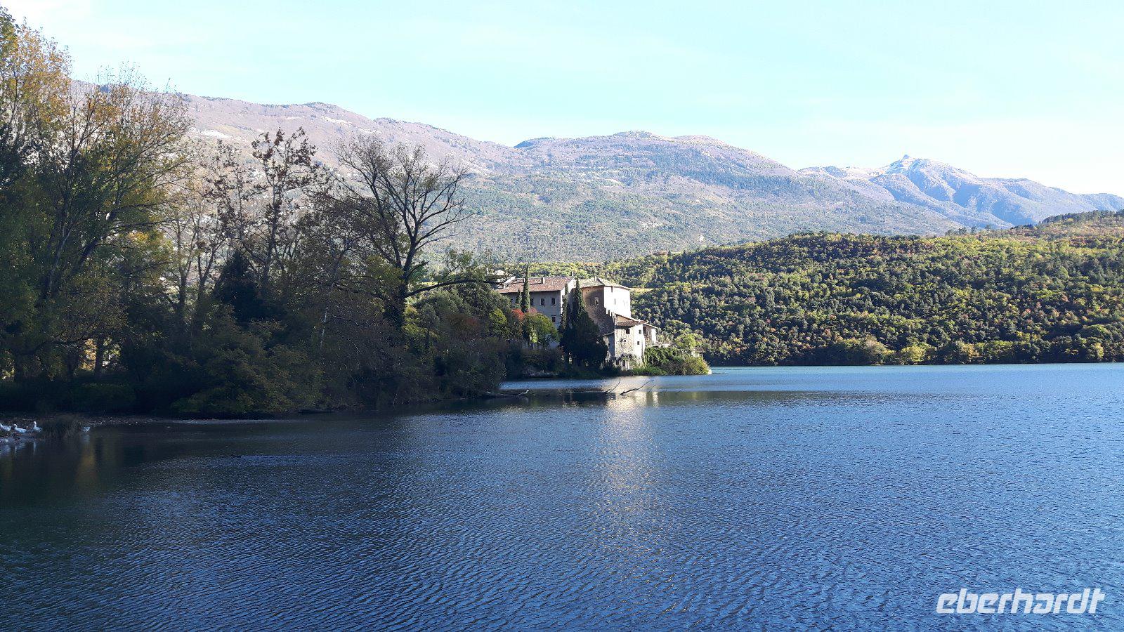 Heute hatten wir die Qual der Wahl - entweder einen gemütliche Tag in Levico Terme zu verbringen oder an einem zusätzlichen Tagesausflug zum Gardasee teilzunehmen... Die meisten Gäste entschieden sich natürlich für die gemeinsame Fahrt zum Gardasee. Zunächst machten wir uns in Richtung Garda auf und einen ersten Eindruck vom See konnten wir bei einem Fotostopp oberhalb der malerischen Bucht von Garda gewinnen. Traumhaft schön lag der See zu unseren Füßen - ein Augenblick zum Genießen und Träumen...! Anschließend besuchten wir diesen Ort an der mittleren östlichen Uferseite, wo die bezaubernde Altstadt Gardas und die weitläufige Uferpromenade zum Flanieren einluden. Die Altstadt faszinierte uns mit ihren kleinen Gässchen, den Häuserfassaden im venezianischen Stil, jeder Menge Geschäften, Restaurants und Cafés. Entlang der Ostuferstraße immer nordwärts folgend fuhren wir durch weitere interessante Ortschaften wie Torri del Benaco und Malcesine. Wir kamen heute außerordentlich gut voran - es gab wenig Verkehr, denn so langsam war auch hier am Gardasee das Saisonende spürbar. Aufgrund dessen konnten wir sogar noch einen spontanen Stopp in Torbole, am Nordostende des Gardasees gelegen, einlegen. Es war auch hier etwas Zeit für einen kleinen Bummel zum Hafen oder in die Altstadt. Nicht nur wir waren begeistert - schon der große Dichter Goethe war von der Außergewöhnlichkeit der hiesigen Winde und von der Schönheit des Gebietes, welches er "das Land wo die Zitronen blühn" nannte, fasziniert. Weiter ging es nun durch das Sarcatal, wo wir am frühen Nachmittag in der hochmodernen und geschmackvoll eingerichteten Weinkellerei Toblino an einer Verkostung lokaler Weine teilnahmen. Dazu gab es einen kleinen Mittagsimbiss mit regionalen Spezialitäten - es war zwar wirklich nichts zum "satt werden", aber immerhin gab es typische Produkte der Region mit Schinken, Salami und Käse. Das war übrigens richtig lecker! Ein Fotostopp am romantischen Schloss Toblino, direkt am Ufer des Toblinosees, rundete den heutigen sonnenreichen Ausflug ab.