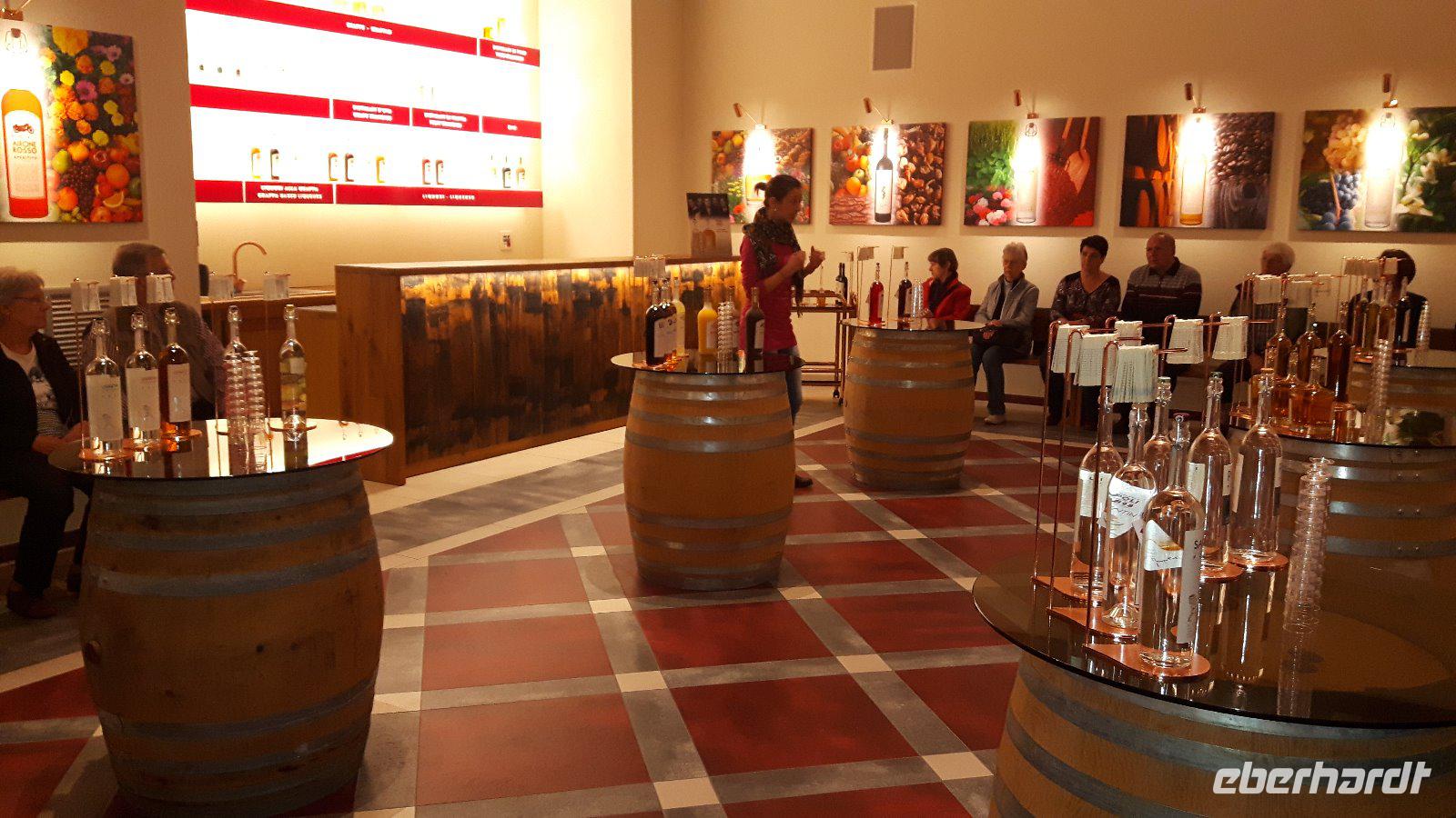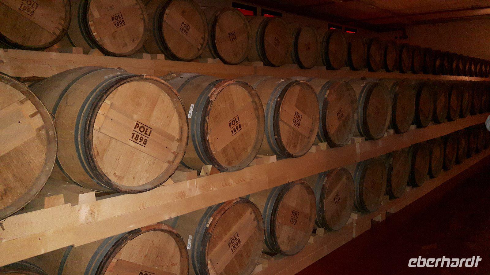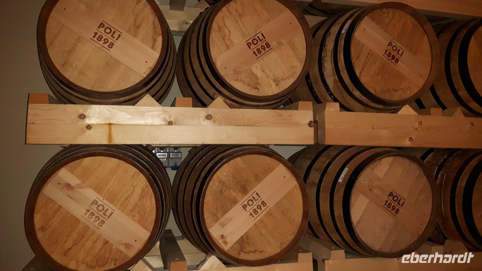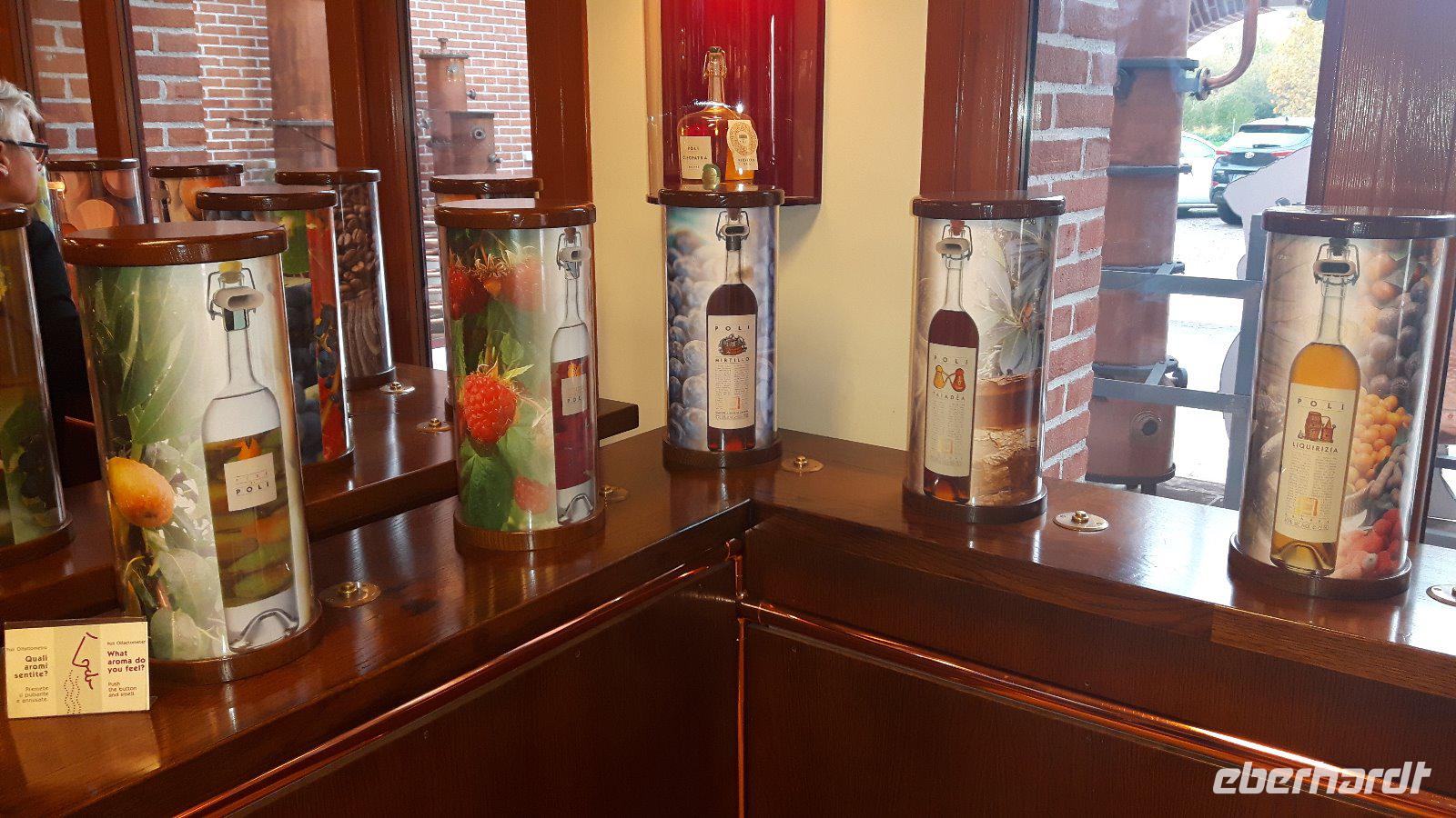 Anschließend erlebten wir eine spannende Führung durch das Castello Inferiore, welche wir übrigens kurzerhand zusätzlich zu unserem eigentlichen Programm, organisierten. Diese untere Burg von Marostica stammt aus dem 14. Jahrhundert und überblickt den Schachplatz, der die Stadt zu einem absoluten Unikat macht. Wir sahen während der Schloss-Führung einige originale und wertvolle venezianische Gemälde und Fresken. Das Schloss verfügt ebenso über eine interessante Ausstellung mit außergewöhnlichen Kollektionen von Kleidern, die in den späten 1950er Jahren verwendet wurden. In Marostica verbrachten wir auch unsere Mittagspause und es gab hier auf Annas Empfehlung hin die Gelegenheit, in einer typischen Osteria einzukehren und hausgemachte Spezialitäten der Region zu probieren. Gut gestärkt ging es anschließend weiter nach Schiavon, wo sich der Sitz der Poli Grappa-Destillerie befindet und wir einen geführten Rundgang unternahmen. Wir erfuhren viel Wissenswertes zur Grappa-Herstellung und selbstverständlich durfte auch eine entsprechende Verkostung nicht fehlen! Der Grappa ist immerhin ein auf der Welt einzigartiges Destillat, weil er aus der Destillation eines festen Rohmaterials hervorgeht. Man gewinnt Grappa nämlich aus Trester, also den Schalen der Trauben, nachdem diese zur Weinbereitung gekeltert wurden. Und wenn wir es auf den Punkt bringen wollen, dann ist Grappa theoretisch aus "Abfällen" hergestellt - sehr interessant...! Gut gelaunt ging es am Nachmittag weiter in das nahe gelegene Städtchen Bassano del Grappa. Unser gemeinsamer Spaziergang führte uns zunächst zum Highlight der Stadt, zur Alten Brücke, heute auch "Ponte degli Alpini" genannt. Die überdachte Holzbrücke geht auf Pläne Andrea Palladios zurück und gilt zurecht als eine der charakteristischsten Brücken Italiens. Wir hatten allerdings etwas Pech, denn die Brücke wird momentan restauriert. Trotz der Baumaßnahmen konnten wir jedoch ihre Schönheit erahnen. Der Blick von der Brücke über den Brenta-Fluss und Bassano del Grappa war einzigartig, denn die bunten Häuser spiegelten sich durch die genialen Lichtverhältnisse im Fluss! Anschließend gab es noch ein wenig Freizeit, um das besondere Flair der Stadt einzufangen, bevor es nach Levico Terme zurückging. Im Hotel wurden wir bereits zum festlichen Gala-Abendessen erwartet, um den letzten Ausflugstag dieser Reise gemütlich ausklingen zu lassen.