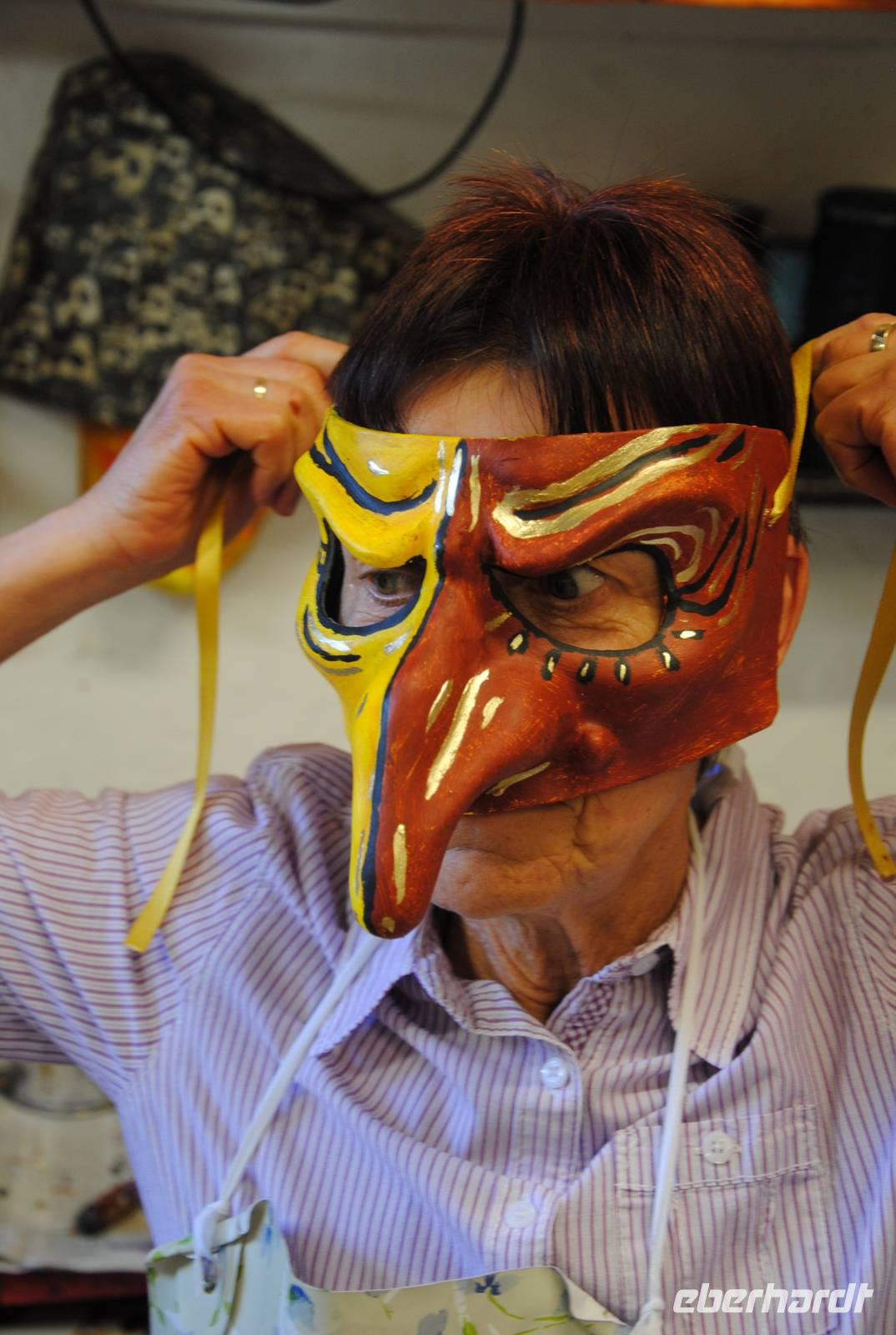Nach der Mittagspause, gestärkt durch Gelati oder andere Köstlichkeiten, stand einem kreativen Nachmittag nichts mehr im Wege. Die Gäste besuchten einen Maskenworkshop. Anfangs mit etwas gemischten Gefühlen, setzte sehr schnell reges Treiben ein und nach 2 Stunden waren wahre Meisterwerke vollbracht. Man konnte meinen, dass in so manchem ein wirklicher Tizian oder Tintoretto steckt.Die Kunstwerke im Hotel verstaut, hatte jeder noch vor dem Abendessen genügend Zeit die nähere Umgebung auf eigene Faust zu erkundigen. Trotz reichlich Appetits hatte jeden die Dimension der Pizzagrößen überrascht. So mancher musste sich sogar geschlagen geben und einen Teil auf dem Teller lassen. Zwischen den einzelnen Gängen blieb etwas Zeit für einen kleinen Italienischkurs rund um das Essen.