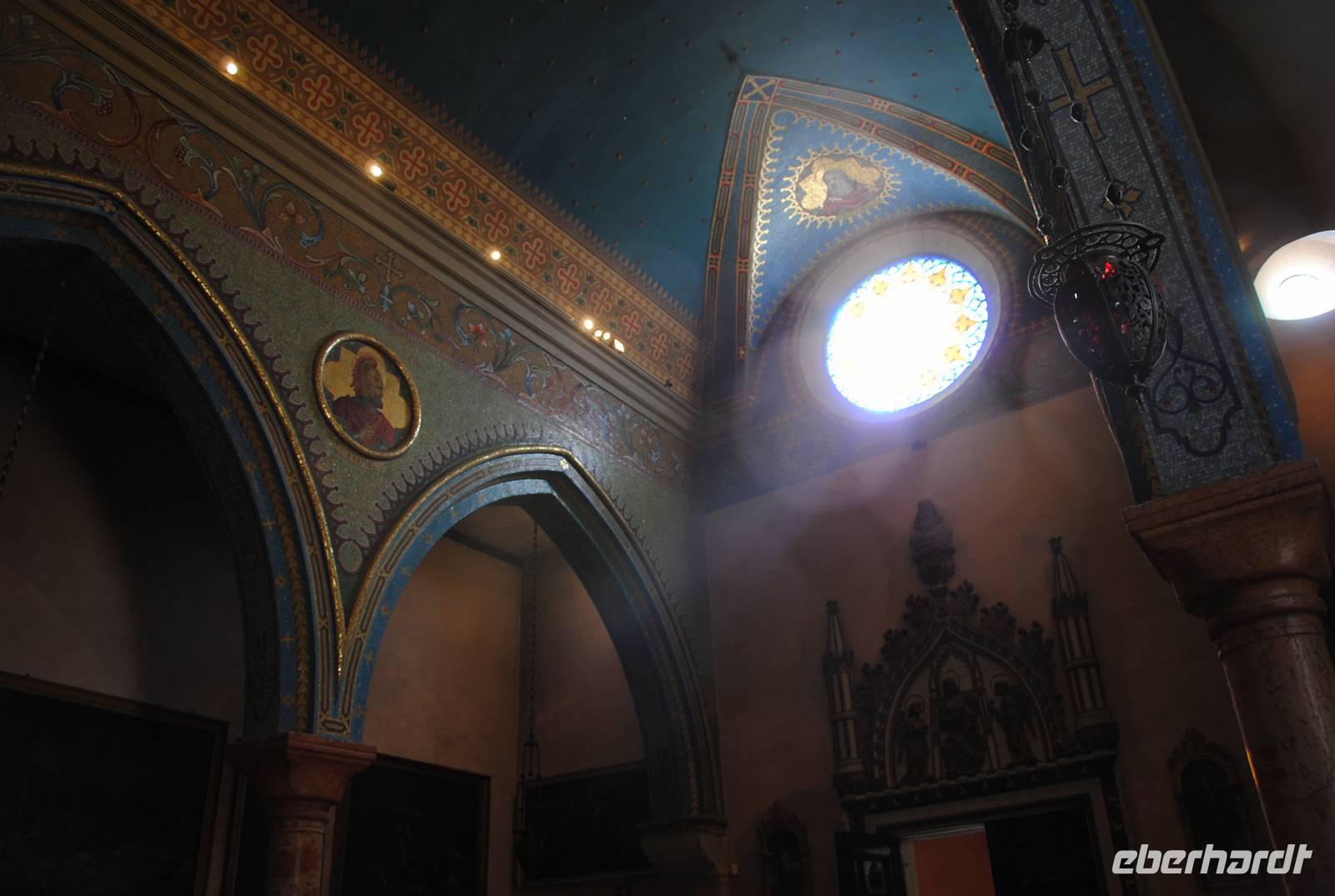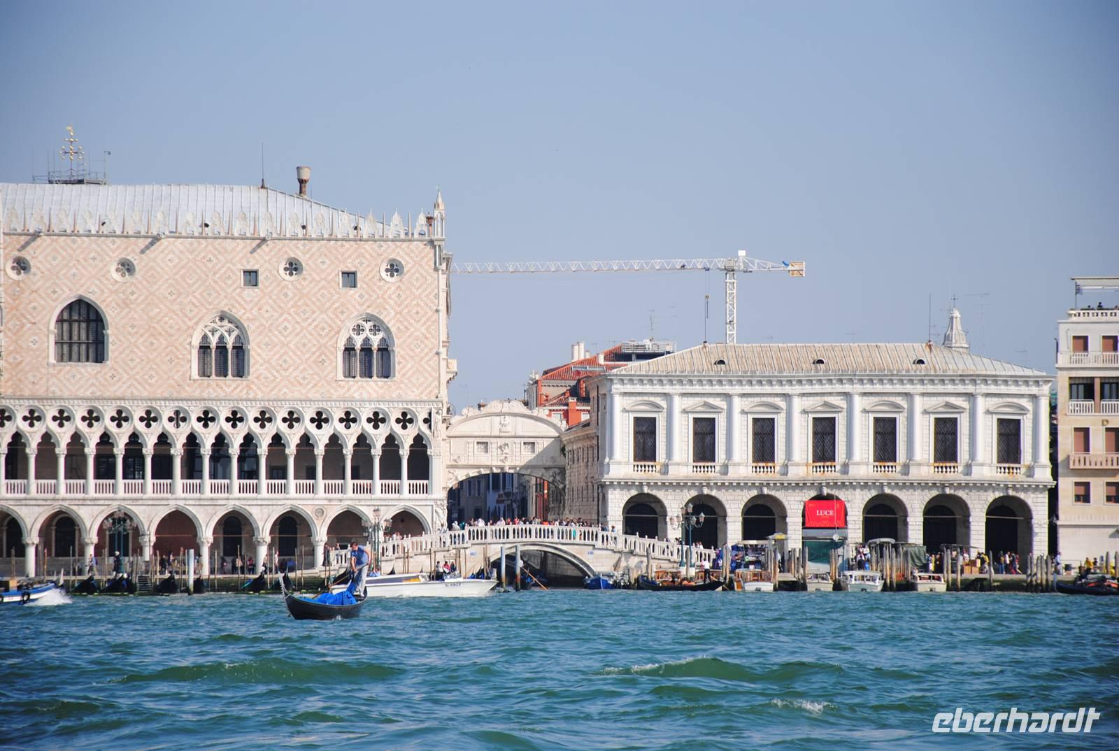 Auch wenn morgens der Himmel noch bedeckt war, zeigte sich die Sonne bereits nach dem Frühstück. Zuerst führte der Weg in Richtung Santa Maria del Salute -eine Kirche die als Dankbarkeit der überstanden letzten Pest vom Dogen gestiftet wurde. In der Gesamtbetrachtung eine Barockkirche aber im Detail erkennt man doch eine Menge Renaissance. Im Inneren besticht eine Marien-Ikone aus Kreta aus dem 12./13.Jahrhundert. Die Gemälde von Tizian und Tintoretto, sind von anderen Sakralbauten hier her gebracht worden.