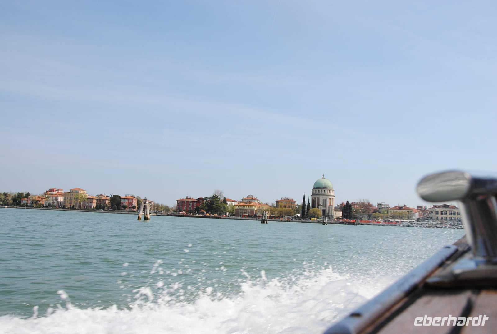 Markenzeichen sind die vielen bunten Häuser, die einst den Fischern als Orientierung diente. Von hier kommt auch das Traditionshandwerk Burano-Spitze. Aber Vorsicht - bei der Masse des Angebots und den günstigen Preisen ist wohl das Meiste nur Ware aus China.Gestärkt und mit vielen Eindrücken von dieser Insel steuerten wir unser letztes Ziel des Tages an - San Lazzarro degli Armeni. Während der Fahrt gab es zur deutschen Kaffeezeit auch eine Kostprobe des Buraner Traditionsgebäcks Bussola - eine süßer Keks auf Basis vieler Eier sowie Zucker und Butter. Den Lido gestreift - ab leider nur die dem Strand abgewandte Seite - und nach einem kurzen Schwenk nach recht erreichten wir die Insel San Lazzarro degli Armeni.