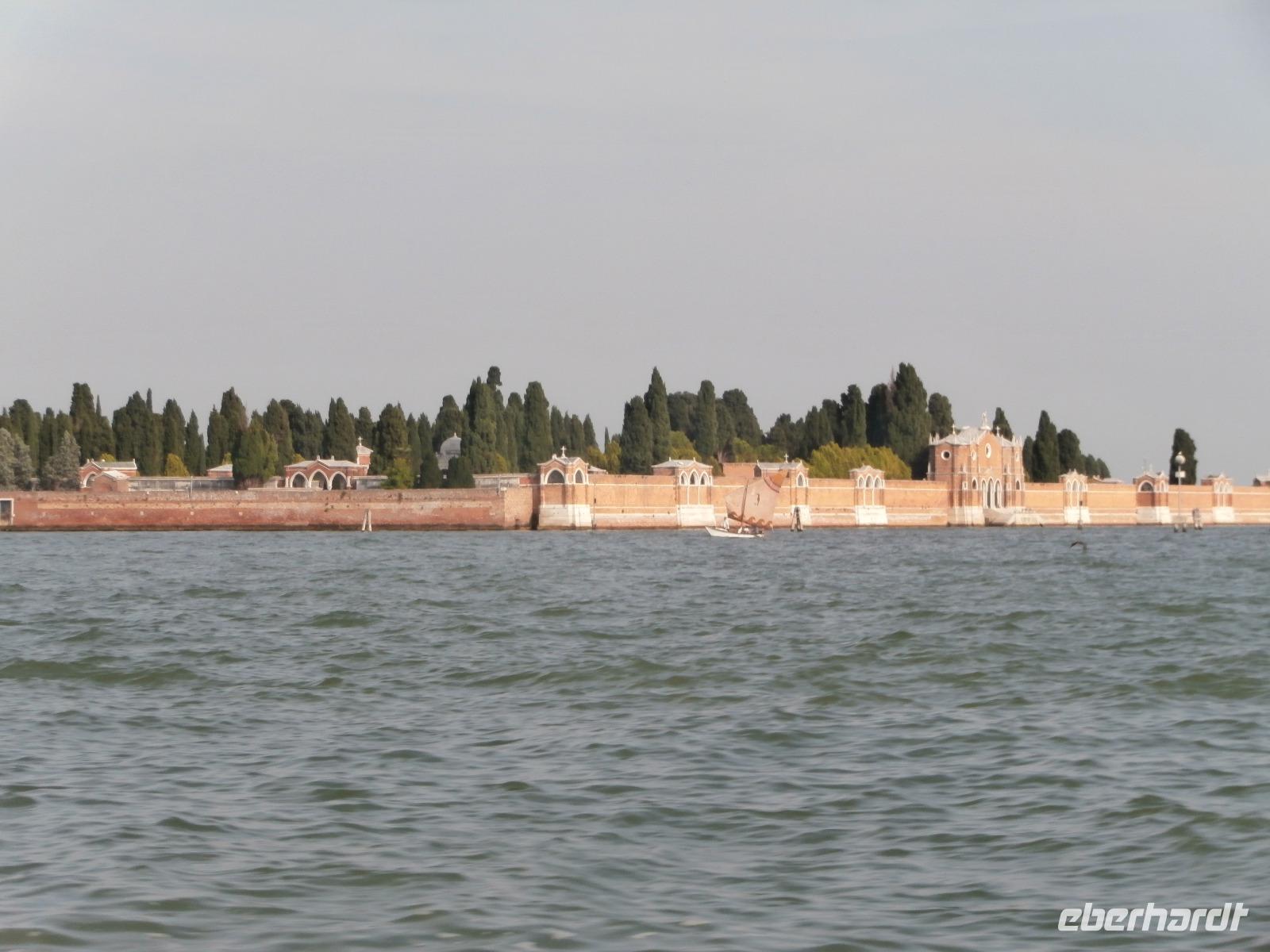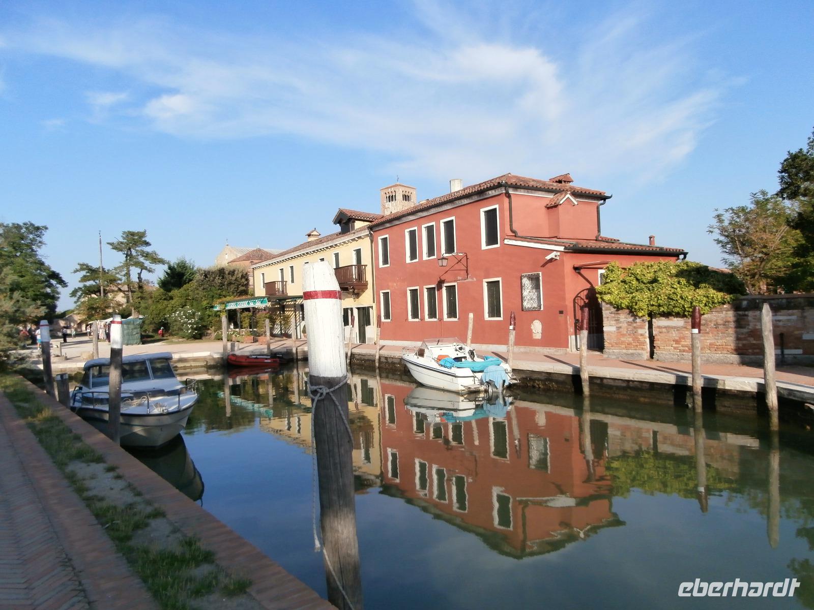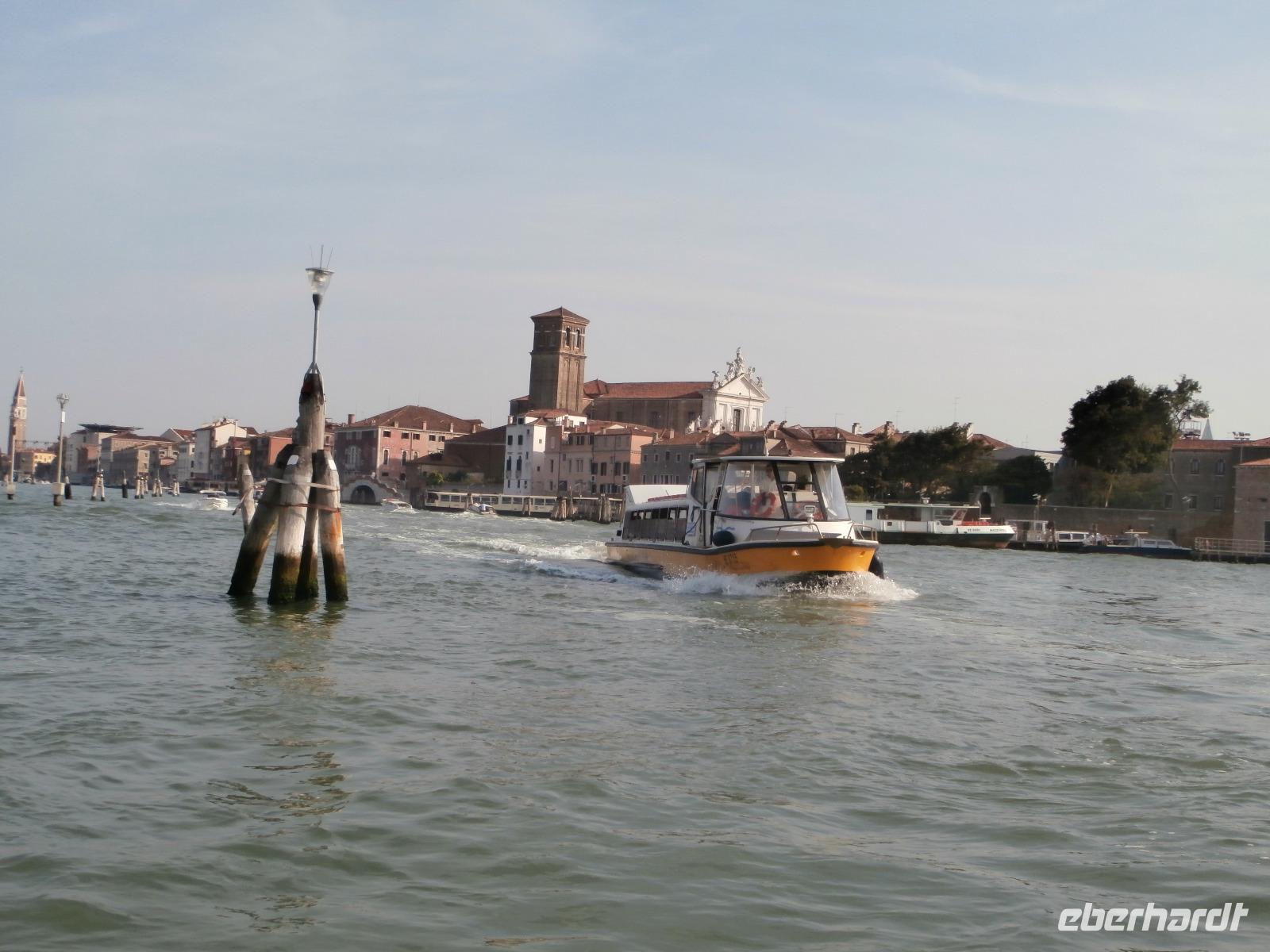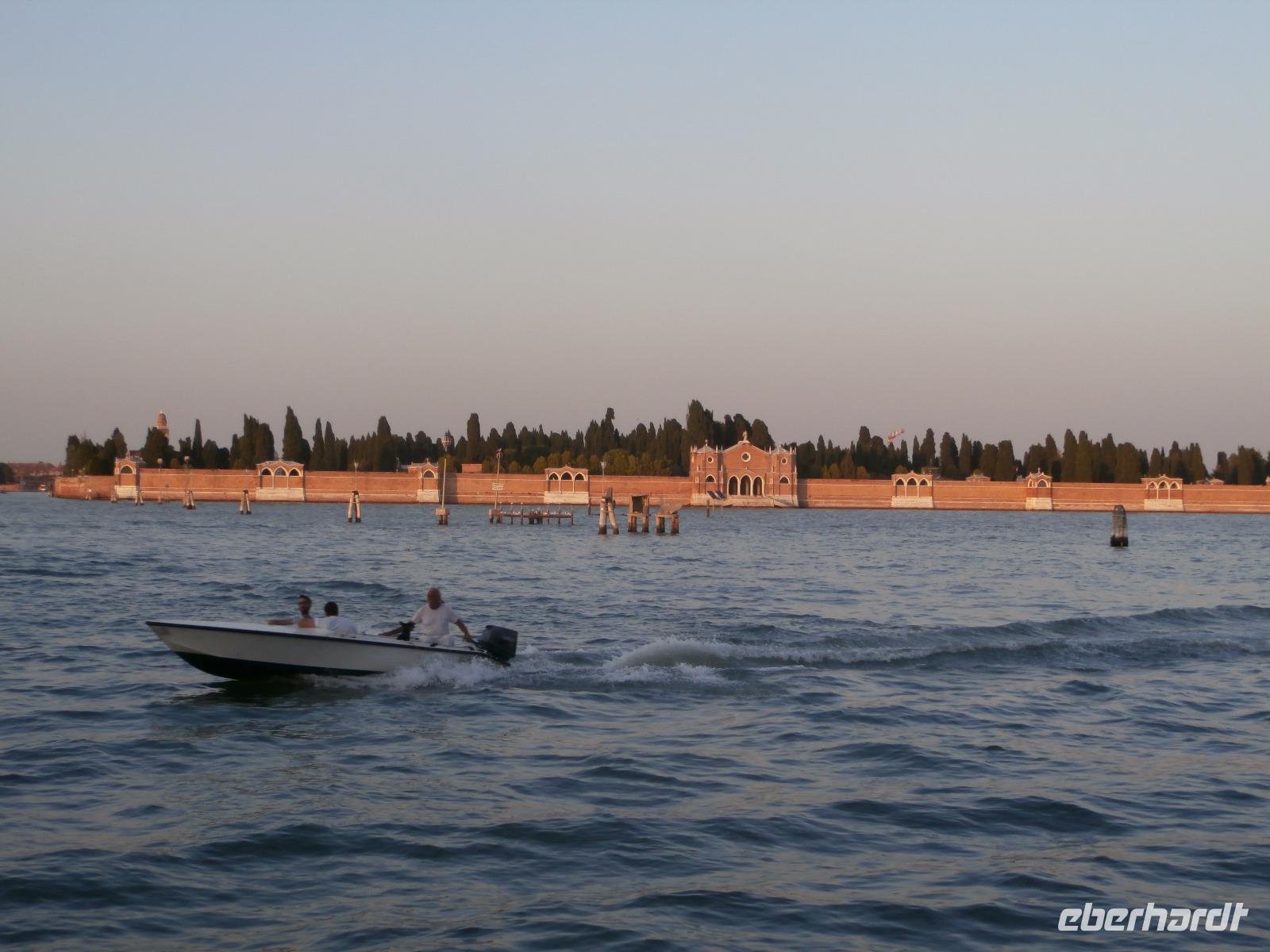 Mit dem Boot laufen wir noch die nächste Insel an, Torcello ist nicht so spektakulär aber sie präsentiert sich uns mit der Kirche Santa Fosca aus dem 11. Jahrhundert und in einer römischen Villa entdeckte man zwei Meter unter dem Meeresspiegel einen Fußboden, man geht davon aus, das Torcello schon im 1. Jahrhundert besiedelt war. Torcello war Bischofssitz und die im Jahre 639 geweihte Kathedrale ist das älteste Bauwerk der ganzen Lagune. Eine Zeit lang lebte der englische Schriftsteller Ernest Hemingway auf der Insel. Wir sind leider etwas spät dran und so wurde die Kirche grad geschlossen als wir hineinschauen wollten. Unsere Rückfahrt führt uns vorbei an der „Friedhofsinsel" San Michele und der Insel Murano, welche Standort der berühmten venezianischen Glasindustrie ist. Später als geplant erreichen wir wieder das Hotel, aber bei der vorherrschenden Hitze des heutigen Tages war der Ausflug mit dem Boot eine gute Idee.