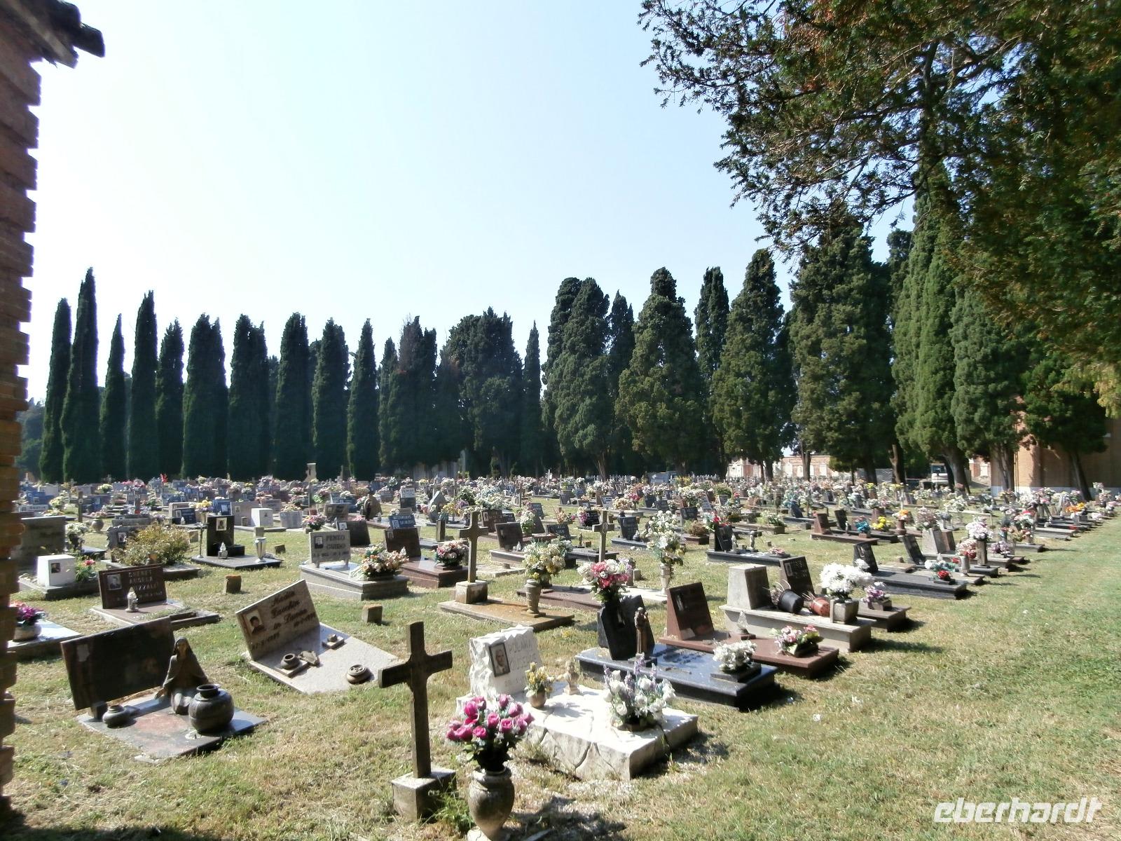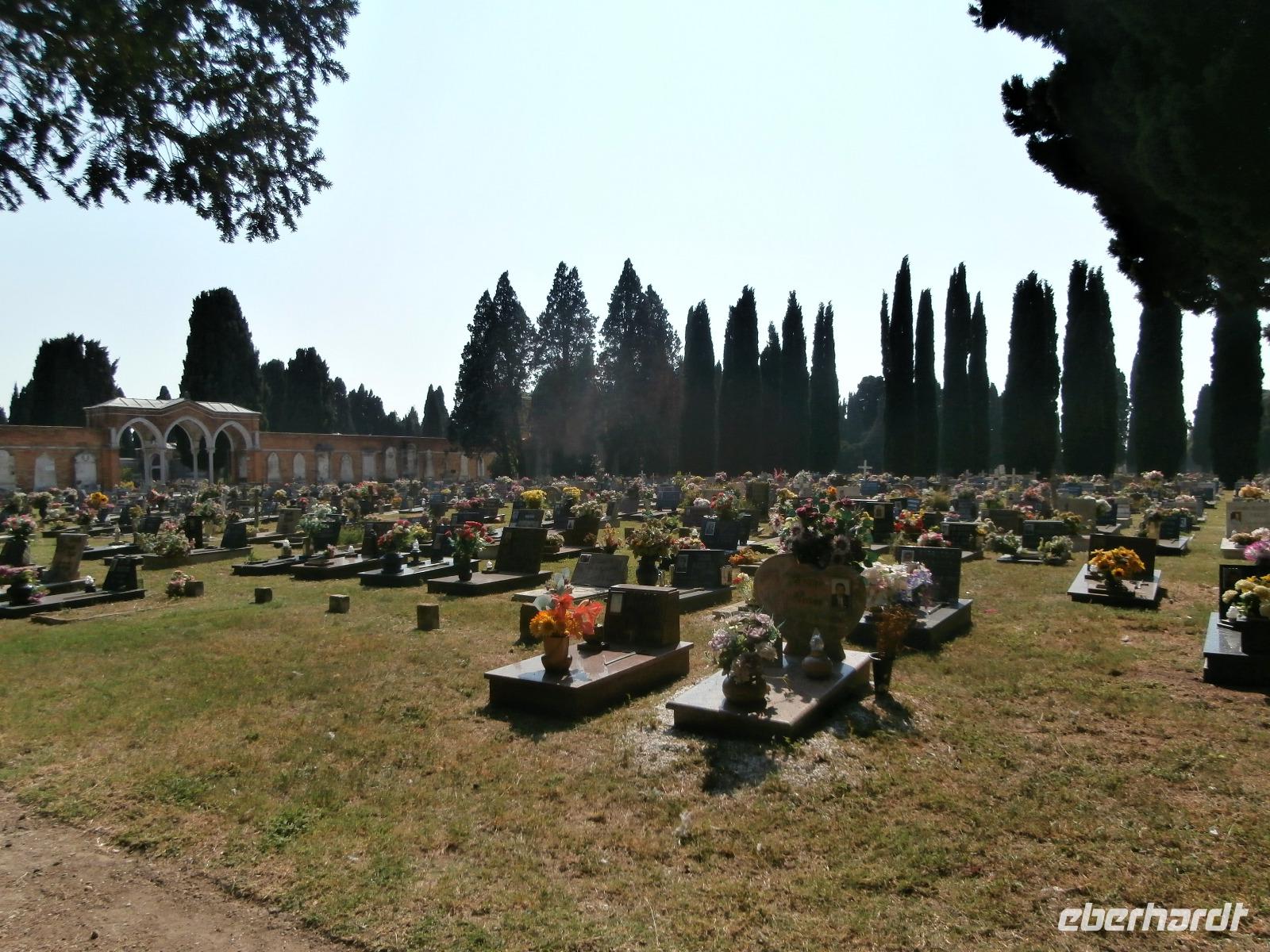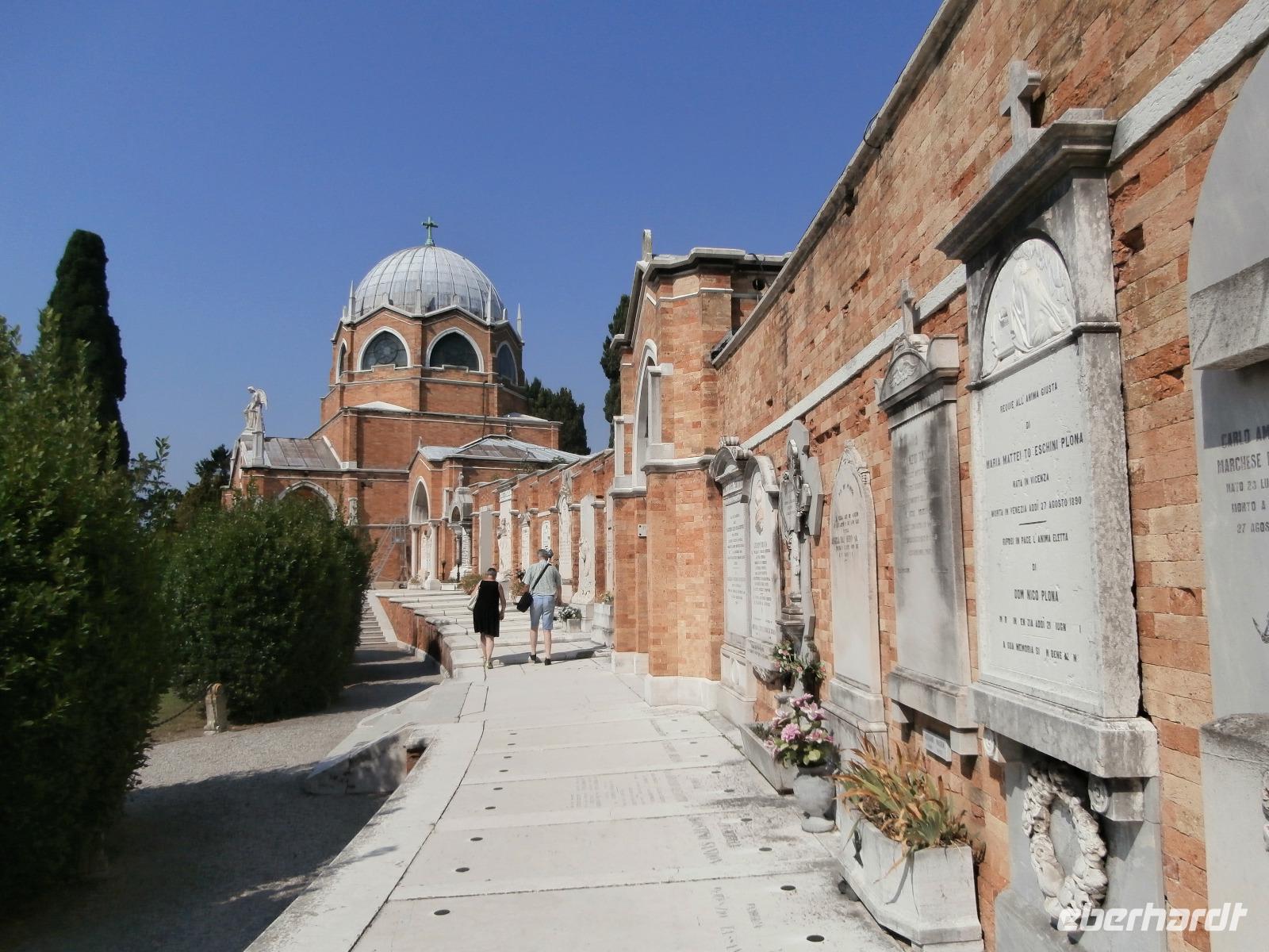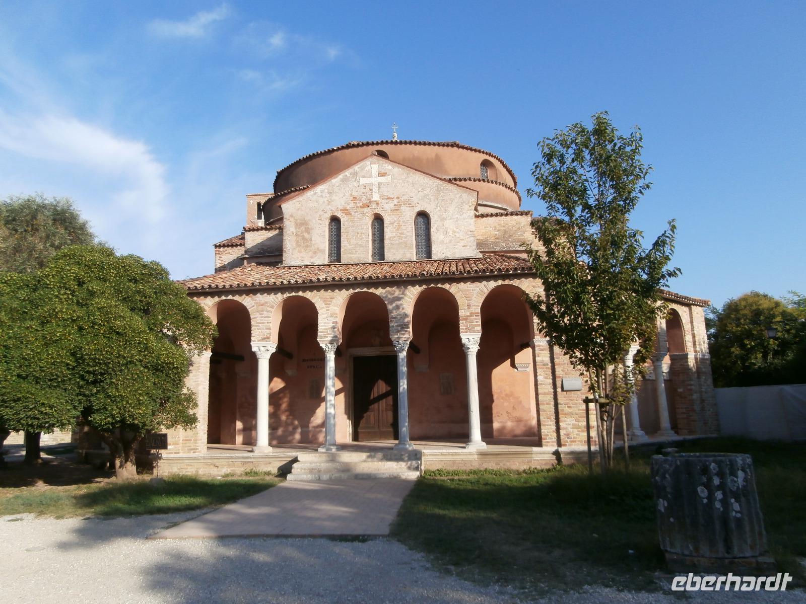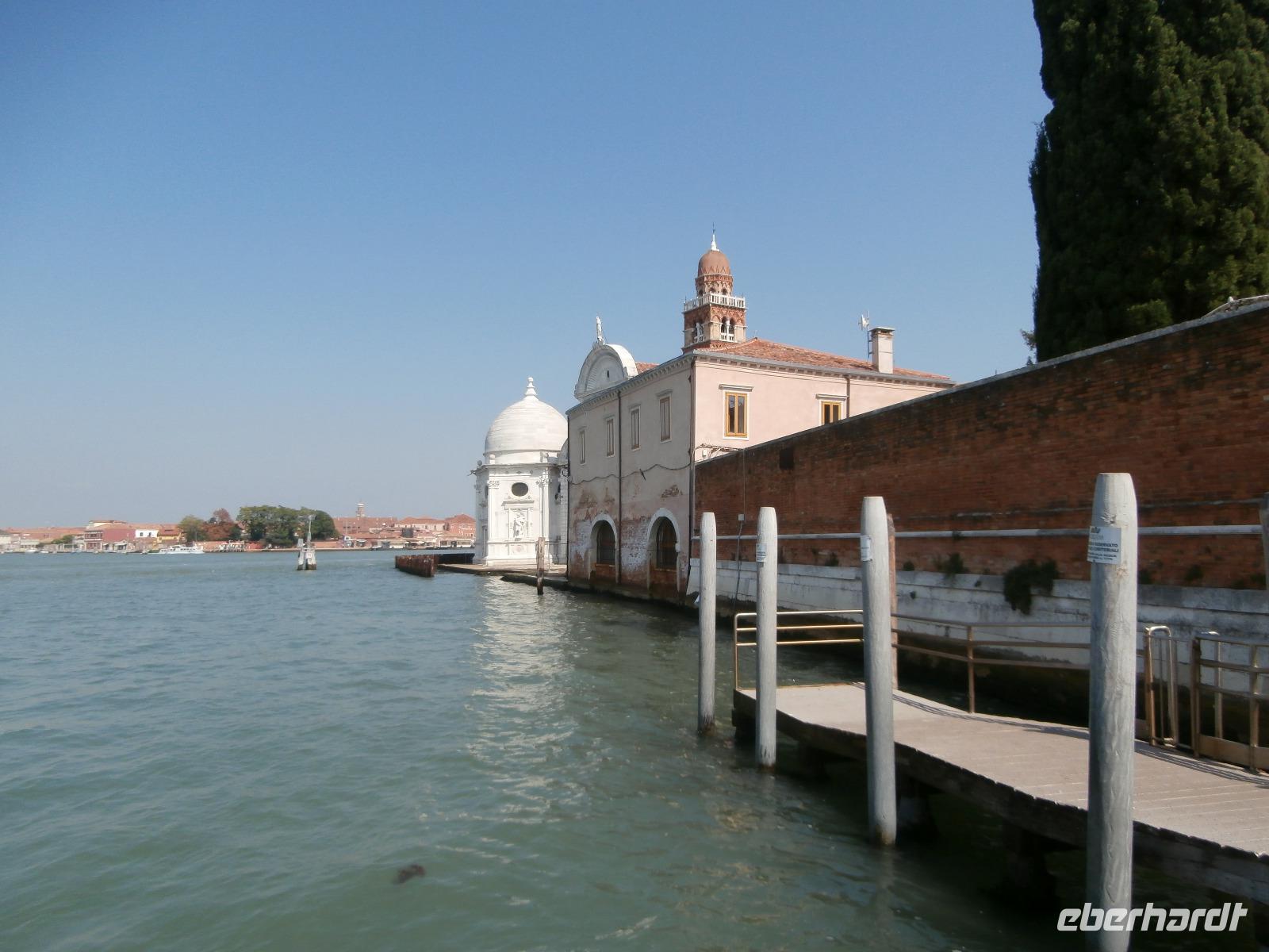 Mit dem Boot laufen wir noch die nächste Insel an, Torcello ist nicht so spektakulär aber sie präsentiert sich uns mit der Kirche Santa Fosca aus dem 11. Jahrhundert und in einer römischen Villa entdeckte man zwei Meter unter dem Meeresspiegel einen Fußboden, man geht davon aus, das Torcello schon im 1. Jahrhundert besiedelt war. Torcello war Bischofssitz und die im Jahre 639 geweihte Kathedrale ist das älteste Bauwerk der ganzen Lagune. Eine Zeit lang lebte der englische Schriftsteller Ernest Hemingway auf der Insel. Wir sind leider etwas spät dran und so wurde die Kirche grad geschlossen als wir hineinschauen wollten. Unsere Rückfahrt führt uns vorbei an der „Friedhofsinsel" San Michele und der Insel Murano, welche Standort der berühmten venezianischen Glasindustrie ist. Später als geplant erreichen wir wieder das Hotel, aber bei der vorherrschenden Hitze des heutigen Tages war der Ausflug mit dem Boot eine gute Idee.