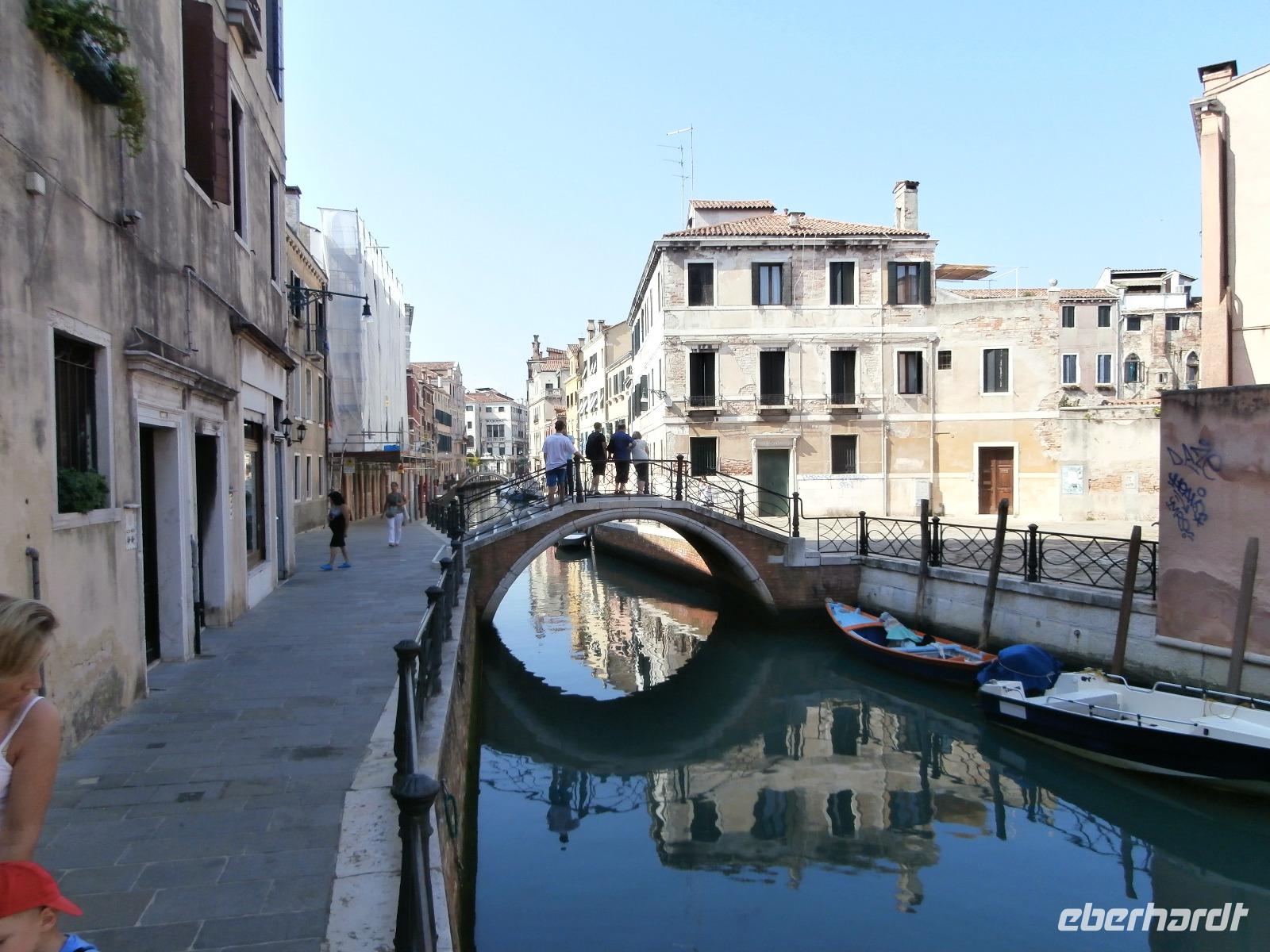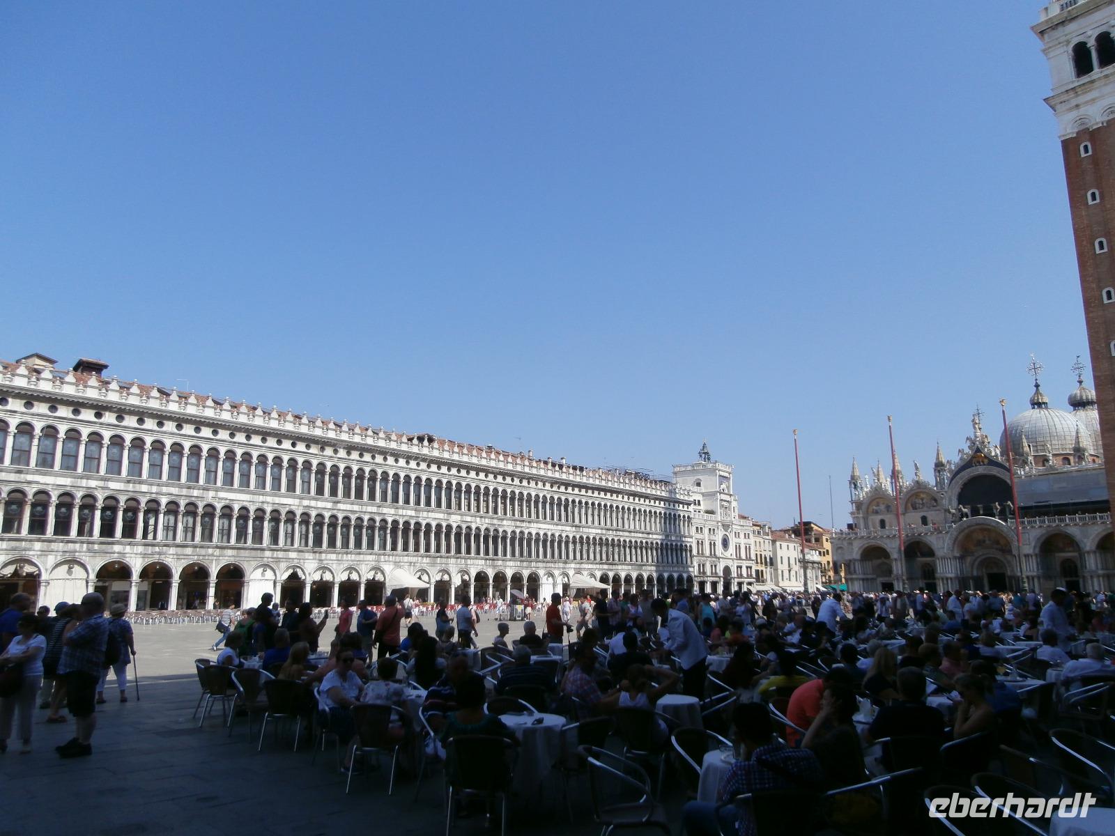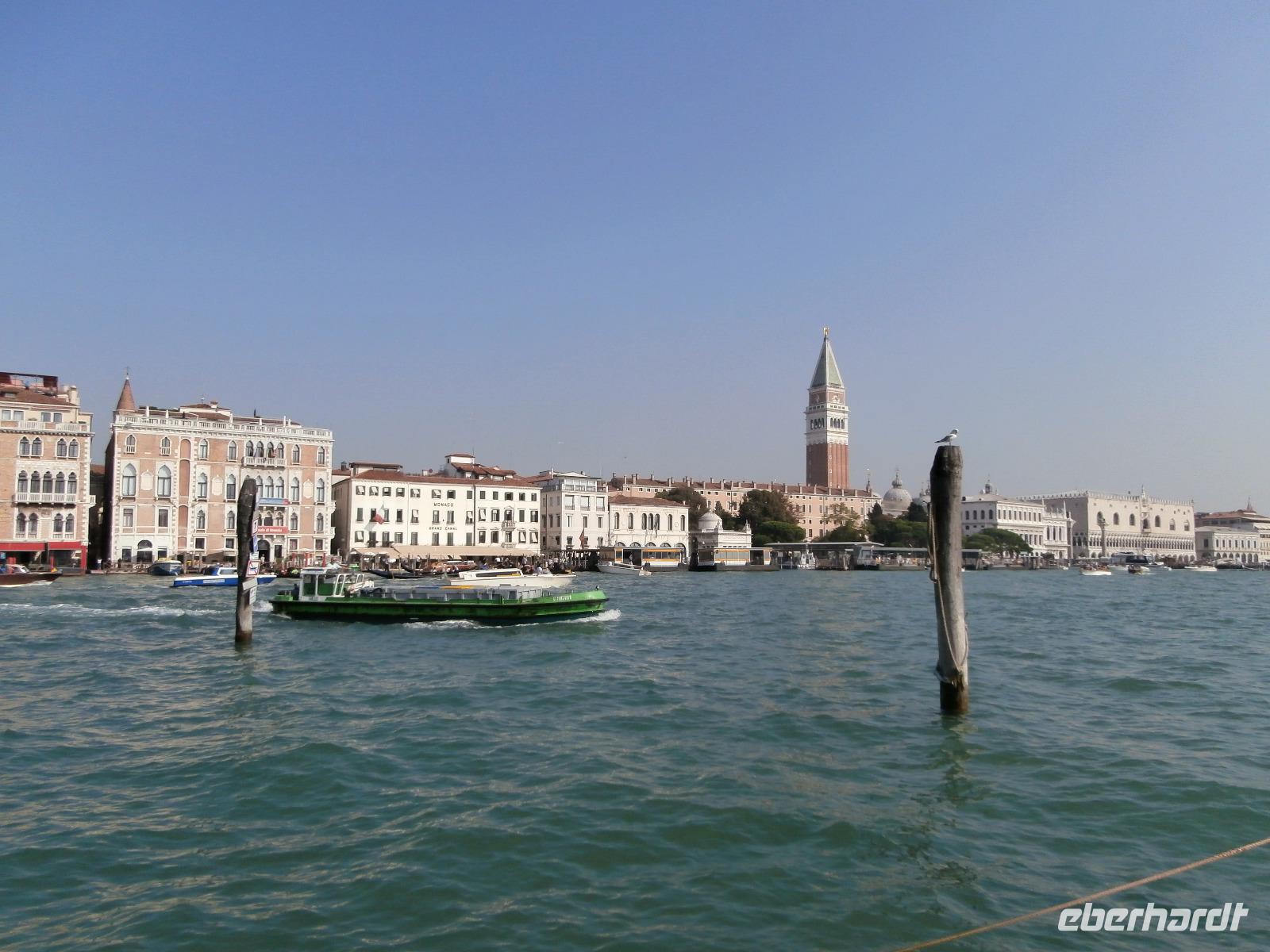 Wir starten unsere Venedig Tour per Haustürtransfer, alles ist pünktlich und so sind wir sehr zeitig am Flughafen in Tegel. Das Sommerwetter der letzten 2 Wochen hält an, auch heute sind wieder ca. 30 Grad zu erwarten. Das Wetter soll in Venedig für die nächsten Tage sehr schön und hitzig sein. Der Abflug verspätet sich und so ist unsere Ankunft in Venedig am späten Nachmittag. Mit dem öffentlichen Schiff der Alilaguna fahren wir bis zur Haltestelle Zattere und von hier ist es nur ein kleiner Fußmarsch bis zum Hotel Belle Arti Venice. Nach dem Check In im Hotel treffen wir uns zum kühlen Drink im hoteleigenen Garten und später gehen wir gemeinsam ins Restaurant San Trovaso zum Abendessen. Weitere 2 Gäste treffen am Abend im Hotel ein und so sind wir mit 8 Reisegästen eine kleine Reisegruppe. Nach dem Abendessen spazieren wir noch über den Canal Grande zum Markus Platz, hier wird überall musiziert. Ein lauer Sommerabend umfängt uns am ersten Tag in Venedig.