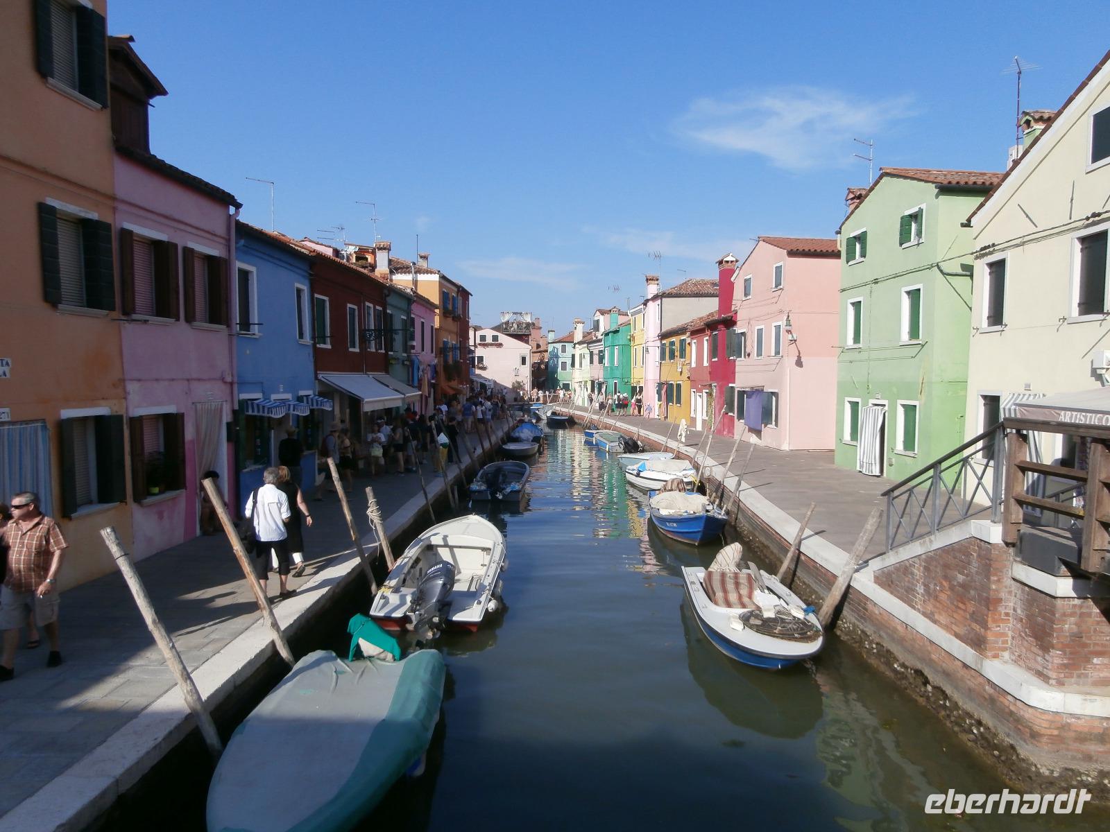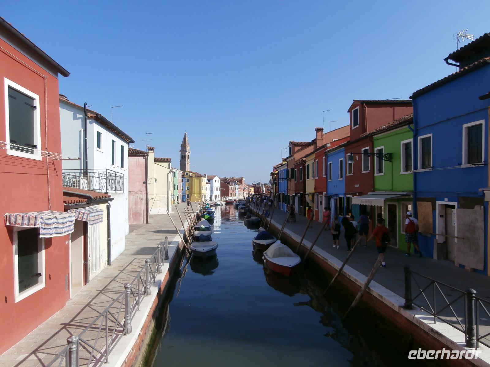 Wieder ausgestattet mit den Audioguides starten wir zusammen in den Tag, auch heute treffen wir uns mit Alessia im Hotel. Unsere Führung beginnen wir in der Accademia, sie befindet sich am Südufer des Canal Grande in unserem Stadtviertel Dorsoduro Die Accademia beherbergt die weltweit größte Sammlung venezianischer Malerei von der Gotik bis zum Rokoko. Weiter laufen wir durchs Stadtviertel Dosoduro entlang der kleinen Kanäle, sehen immer wieder, wie das Leben auf dem Wasser und mit den Booten funktioniert. Nun steht die Besichtigung der Kirche Santa Maria Gloriosa die Frari an, sie ist die zweite größte, gotische Kirche der Stadt Venedig und der Aufnahme Mariens in den Himmel gewidmet. Zwei Hauptwerke Tizians befinden sich in der Frari Kirche, das Öl-Gemälde, „Himmelfahrt Marias" es wurde speziell für diesen Ort gemalt und 1518 am Hochaltar aufgestellt. Ein großes Grabmal in der Kirche erinnert an Tizian. Weiter geht es noch über einige schöne Plätze wie den Campo Santa Maria Formosa bis in Nähe der Rialto Brücke Hier verabschieden wir uns heute von Alessia und fahren mit dem Vaporetto hinaus zur malerischen Fischerinsel Burano, sie empfängt uns herzlich, eine Augenweite sind die vielen bunten Häuser, sie ist sicherlich die farbenfrohste Laguneninsel. Bunt gestrichene Häuser säumen die Kanäle und von überall ist der schiefe Campanile der Kirche San Martino von Burano zu sehen. Hier nutzen wir die kurze Zeit, um die Köstlichkeiten der Insel zu probieren, Eis zu essen und Espresso zu trinken. Die Spitzenschule Scuola die Merletti ist eine über 100 Jahre alte Klöppelschule mit Museum, leider sind es heute nur noch wenige Klöpplerinnen, denen man bei der Arbeit in Burano zusehen kann.