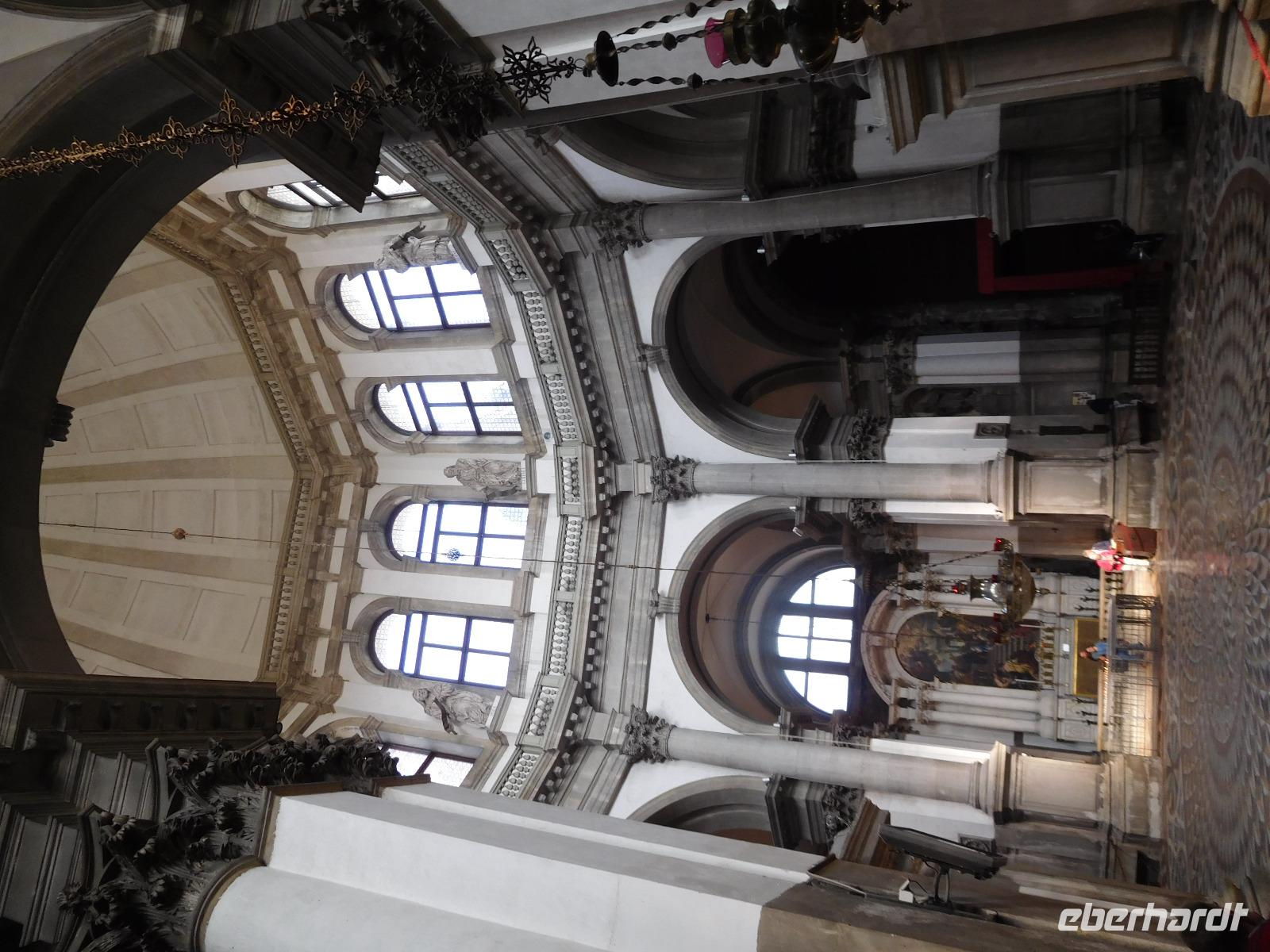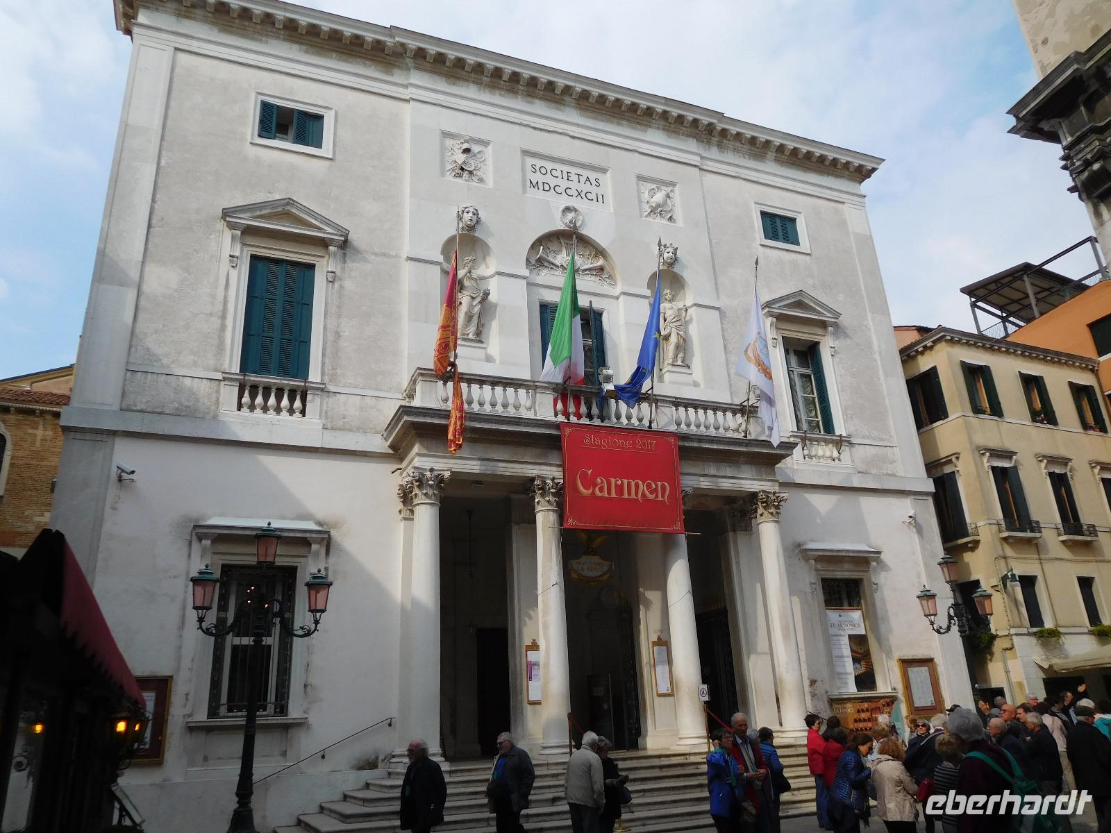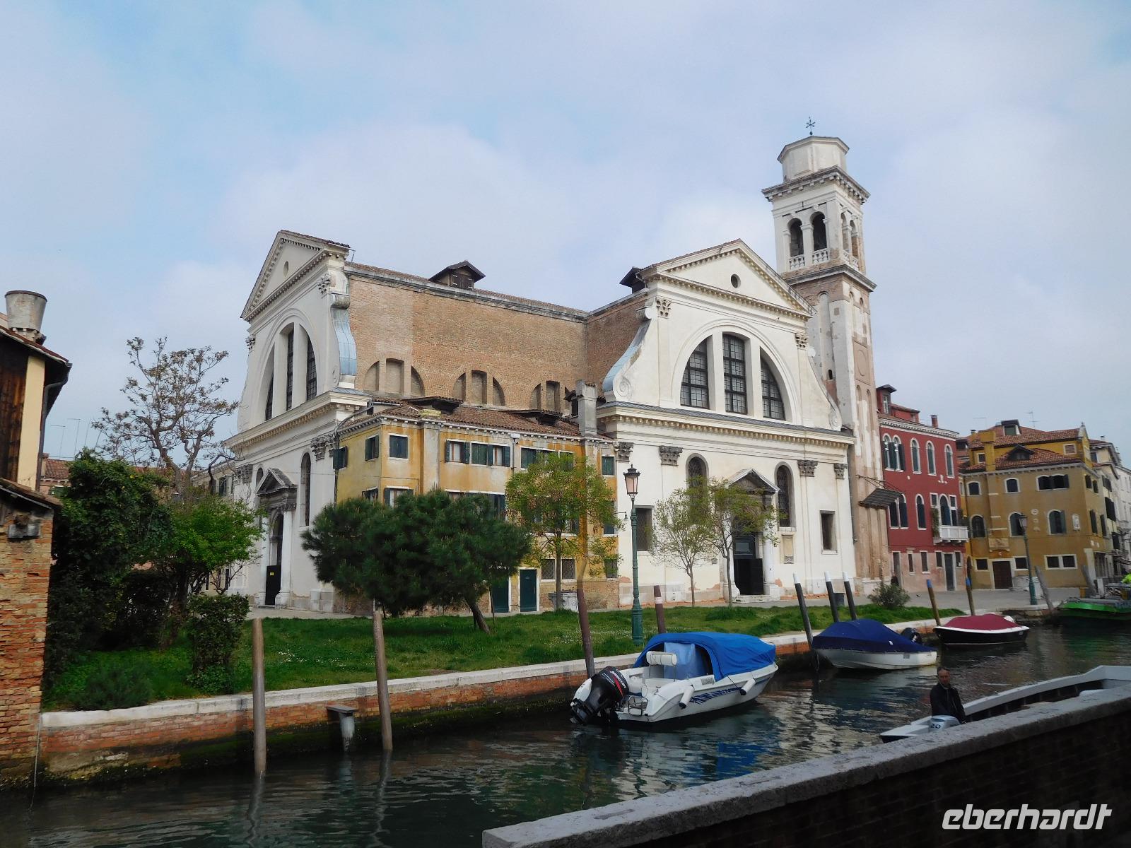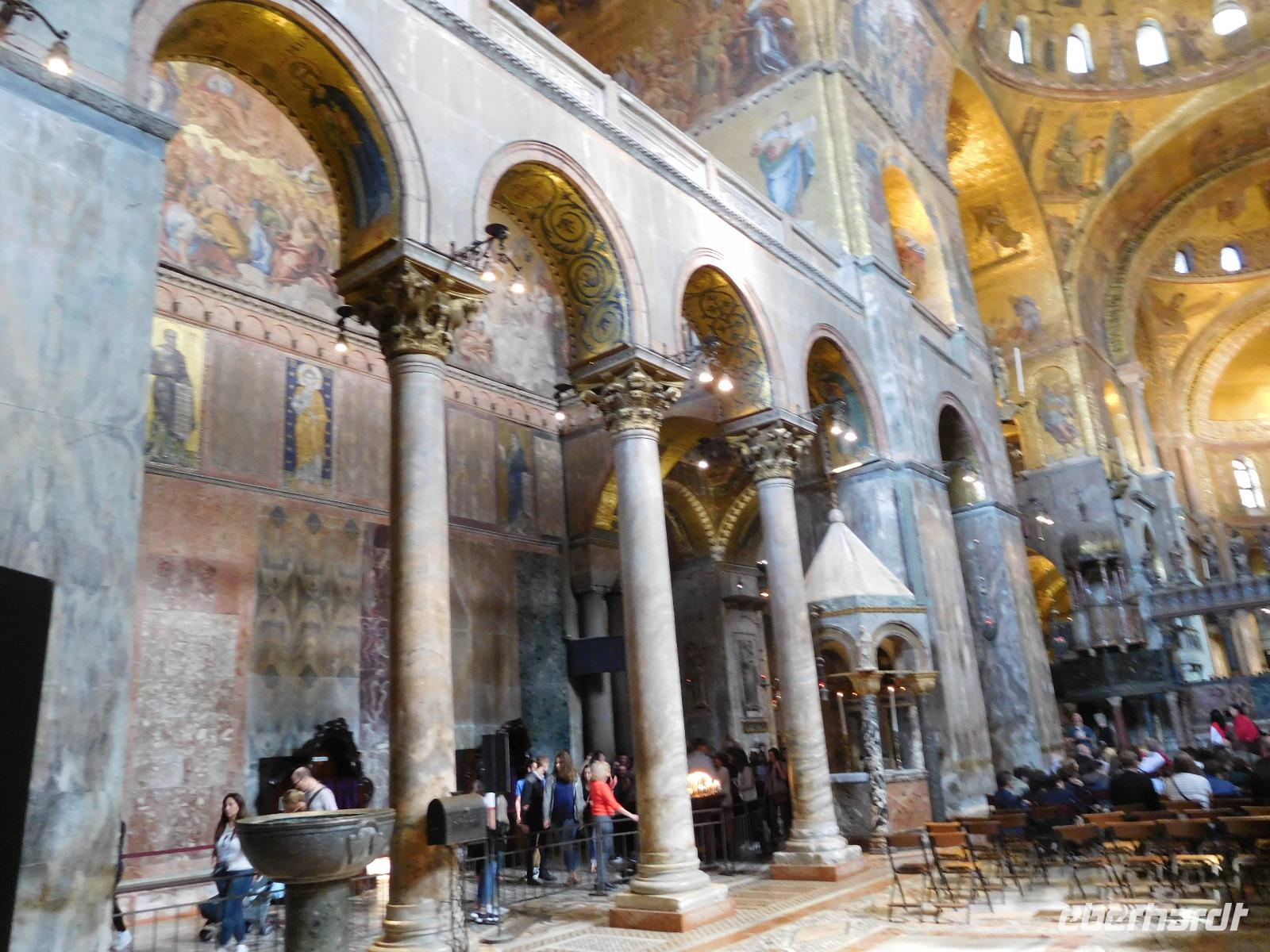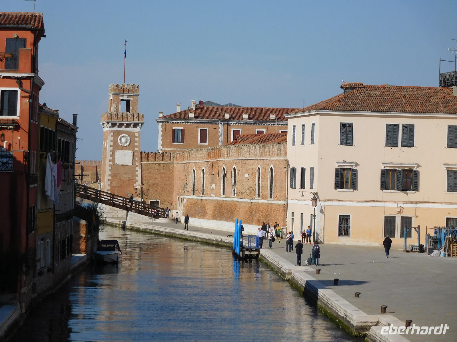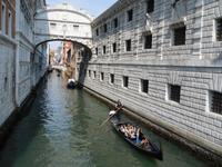 Um halbzehn holte uns Alessia vom Hotel ab und führte uns über die Akademiebrücke zum Stefansplatz, wo wir die Stefanskirche ansahen, durch deren Chorbereich ein befahrbarer Kanal verläuft. Weiter ging es zum berühmten Musiktheater La Fenice und durch verwinkelte Gassen, die man nur mit kleinen Gruppen begehen kann, zur Scala Contarini. Die außen an der gleichnamigen Villa angebrachte Wendeltreppe verbindet in malerischer Weise alle fünf Stockwerke. Weiter nach San Marco, wo wir Ausführliches über die Geschichte Venedigs und der wichtigsten Dogen erfuhren, der Vormachtsstellung seit dem vierten Kreuzzug, in dem die Venezianer 1203 die Kreuzfahrer dahingehend manipulierten, statt Jerusalems das reiche christliche Byzanz zu erobern, dessen Dominanz im östlichen Mittelmeer damit an Venedig überging. Beispiel dafür die vier Bronzepferde auf der Markuskirche, die bei dieser Gelegenheit dort geraubt wurden. Alessia hatte den Zeitplan so gestrickt, dass wir ohne Eintrittsgeld in die Markusbasilika hineingehen konnten, die auch nur um diese Zeit sehr schön beleuchtet ist. So hatten alle einen Eindruck von der Pracht der Mosaiken, von denen viele aus der Hagia Sophia in Konstantinopel geraubt worden waren. Vorbei am Dogenpalast, dessen Marmorverkleidung in der Mittagssonne glänzte, gingen wir noch zur Seufzerbrücke, die für viele Verurteilte der letzte Weg vor Gefängnis und Hinrichtung war. Die anschließende Freizeit bot jedem Gast Gelegenheit, seinen Interessen nachzugehen. Einige Gäste kauften mit dem Reiseleiter eine Tageskarte für die Vaporetti, wie die Linienboote genannt werden, und fuhren zunächst auf die San Marco gegenüber liegende Insel San Giorgio. Hier besichtigte man die gleichnamige Kirche mit drei bedeutenden Gemälden von Tintoretto, bevor es auf den Turm ging, von dem man einen grandiosen Blick auf San Marco und die anderen umliegenden Inseln hatte. Dann setzte man über auf die Insel Giudecca, wo die Kirche Il Redentore, wie San Giorgio vom Renaissancearchitekten Andrea Palladio, das Hauptziel war. Den Abschluß bildete eine Fahrt durch den Canale Grande mit seinen unzähligen meist gotischen Palästen. Vorbei am Bahnhof und am Hafen fuhr das Boot zurüch zum Zattere auf Dorsoduoro und abends trafen sich alle zum wirklich erlesenen Abendessen.