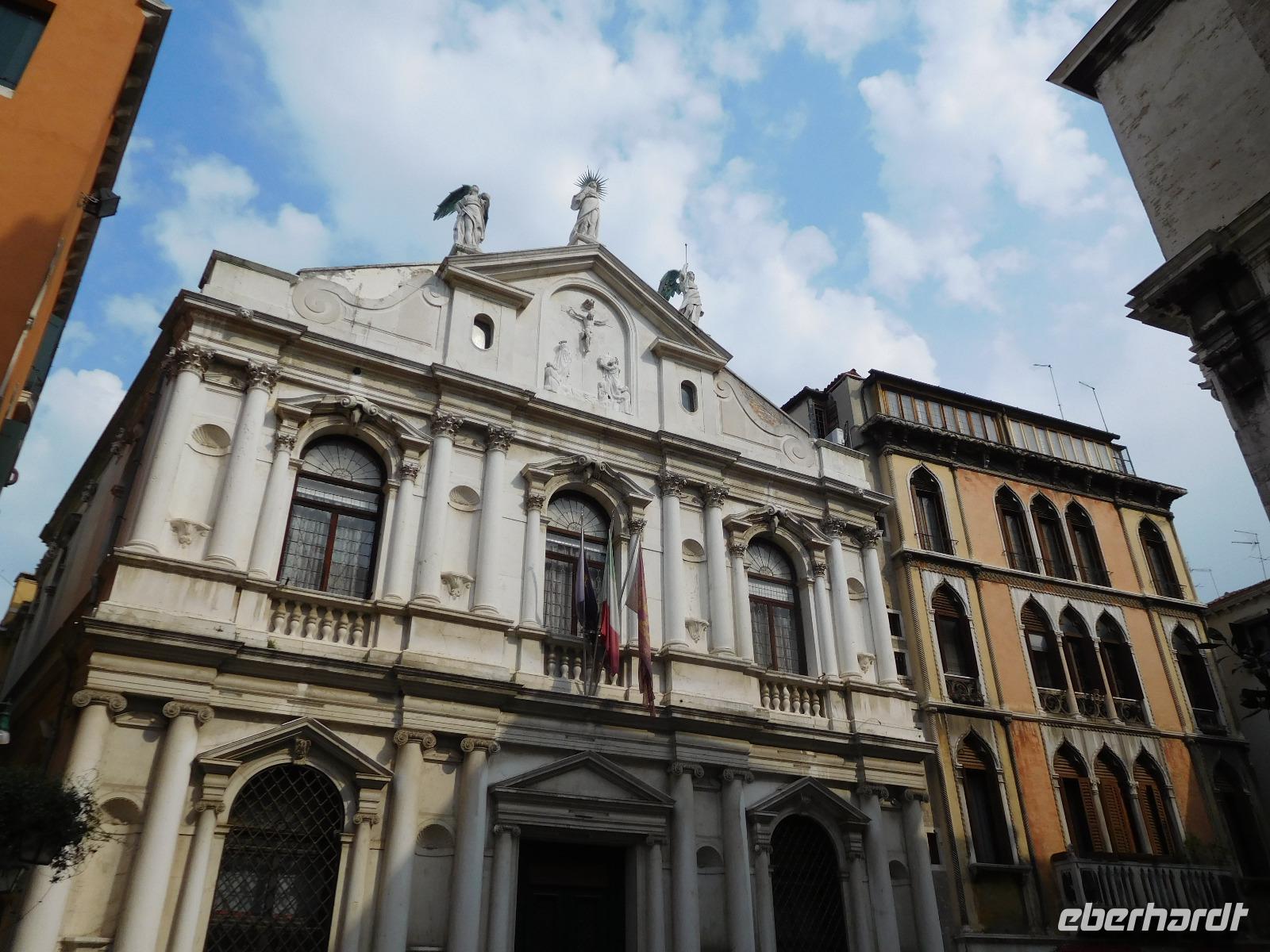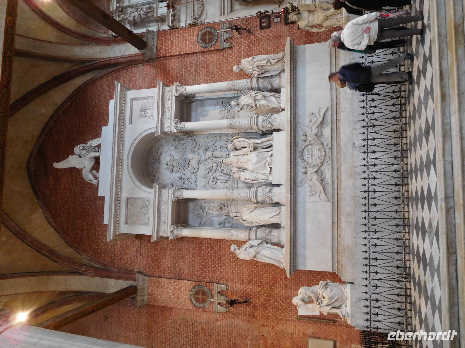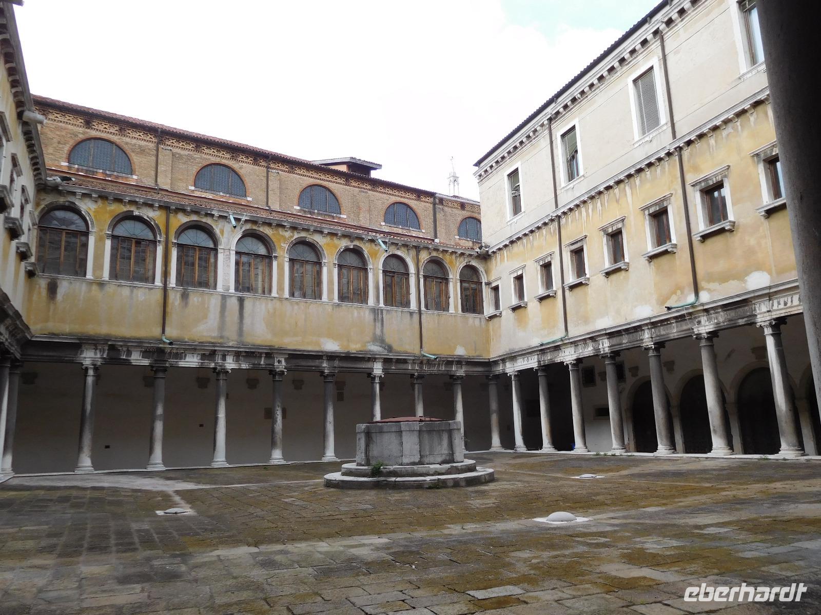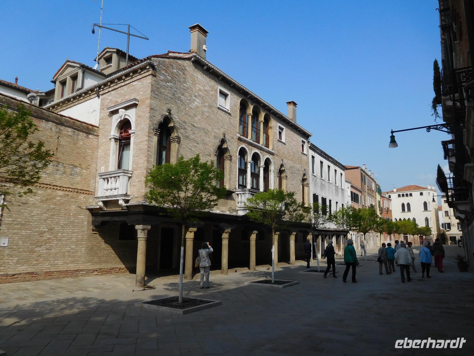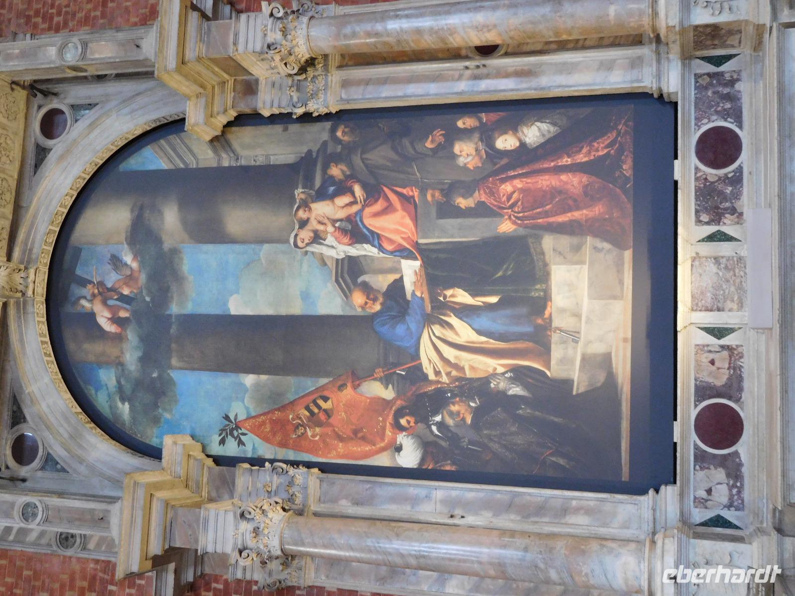 Nach einem entspannten Frühstück trafen sich alle Gäste um zehn Uhr vor der Akademie, der weltweit wichtigsten Sammlung venezianischer Kunst. So sind Bellini, Giorgione, Tizian, Veronese und Tintoretto mit hervorragenden Werken vertreten, was auch für die ausgestellten Bilder von Tiepolo und Canaletto gilt. Anschließend schlenderten wir zur Frarikirche, dem neben der Marcusbasilika von der Ausstattung her wohl bedeutendsten Sakralbau der Stadt. Hier sind die prächtigsten Grabmale wichtiger Dogen neben Epitaphen für bedeutende Venezianer, wie Tizian und Canova zu bestaunen. Tizian hatte die berühmte Assunta für den Hauptaltar und die Pesaromadonna für die Fraribruderschaft gemalt. Eindrucksvoll auch das reich geschnitzte Chorgestühl. Anschließend konnte jeder seinen persönlichen Interessen nachgehen. Einige besuchten gleich die benachbarte Scuola San Rocco, deren Räume von Tintoretto ausgemalt wurden, andere spazierten ins Ghetto oder ließen sich treiben. Abends konnte man sich beim Essen von den vielen Eindrücken des Nachmittags erzählen.