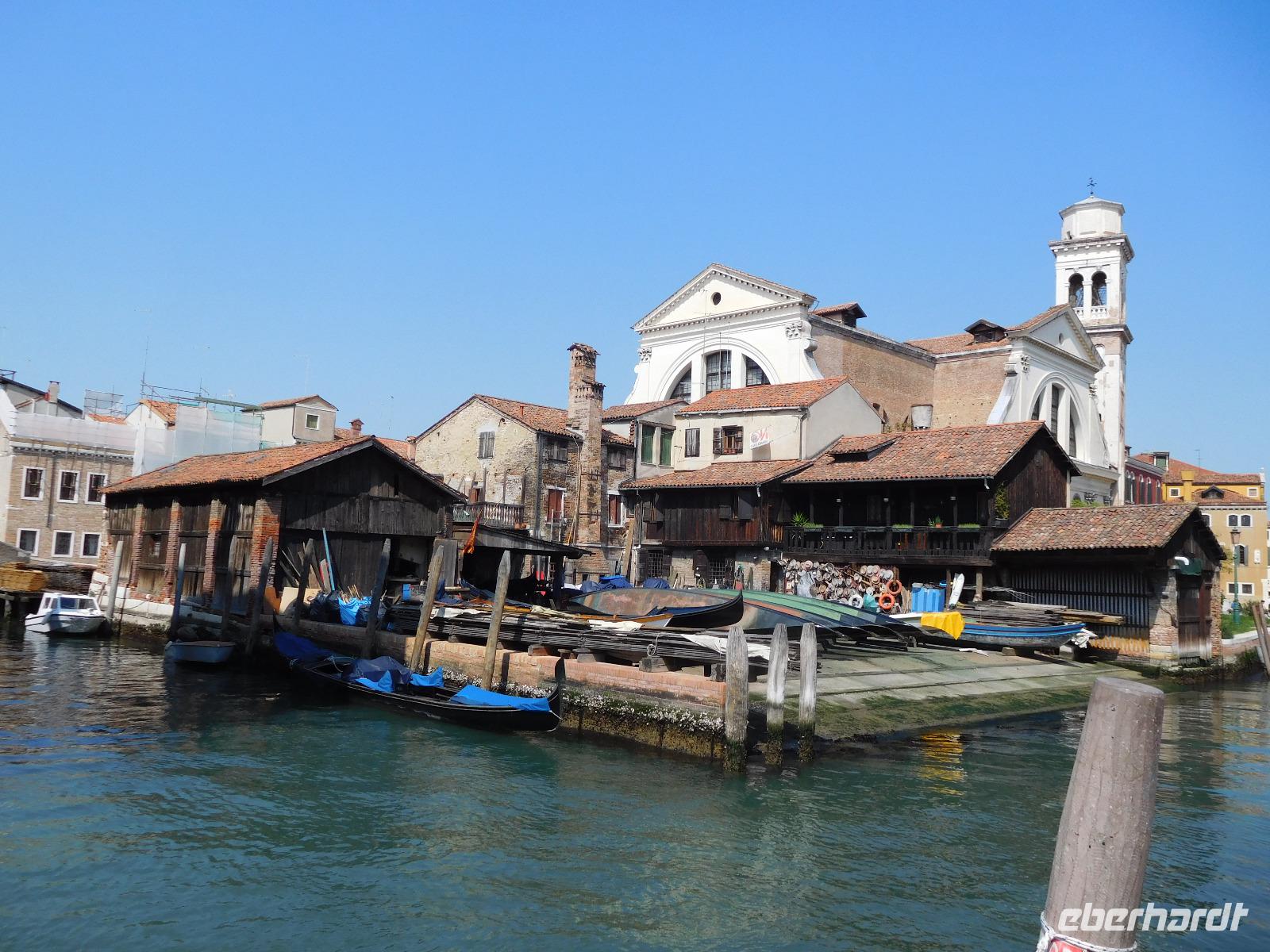 Um zehn Uhr holte uns Alessia bei strahlendem Sonnenschein vom Hotel ab und wir gingen um zwei Ecken zu einer alten Gondelwerft im Dorsoduro und schauten den Bootsbauern bei ihrer fast künstlerisch zu nennenden Arbeit zu. Schließlich muß jede Gondel auf Gewicht und Statur des Gondoliere genau abgestimmt sein und so sind alle quasi Unikate. Anschließend schlenderten wir durch unser Viertel Dorsoduro bis an die Spitze der Insel zur Dogana, dem alten Zollamt. Ziel war die daneben liegenden Kirche Santa Maria Salute, deren eindrucksvolle Kuppel Seefahrer und Ankommende von weiter Ferne begrüßt. Mit ihren Tiziangemälden ist sie nicht nur architektonisch, sondern auch von der Ausstattung her ein Juwel. Dann war es nicht weit ins Guggenheimmuseum. Mit viel Detailkenntnis erklärte Alessia schon im Garten einige Skulpturen z.B. von Henry Moore und zeigte uns das Grab von Peggy Guggenheim mit der Tafel ihrer wichtigsten Partner. Die Bestände des Museums stellen ein Pantheon der Moderne des 20. Jahrhunderts dar, in dem alles, was Rang und Namen hat, vertreten ist. Zumindest Chagall, de Chiricho, Max Berg, Picasso und Braque waren den meisten bekannt. Schöne naive Bilder der Tochter von Peggy Guggenheim, die mit Anfang Vierzig zu früh aus dem Leben ging. Auf der Terrasse der Villa mit tollem Blick auf den Canale Grande verabschiedeten wir Alessia und es war ein sehr herzlicher und ein wenig wehmütiger Abschied. Den Nachmittag nutzte jeder zur ganz individuellen Abrundung seines Venedig- Programms und das abendliche Abschiedsessen fiel wiederum besonders lecker aus.