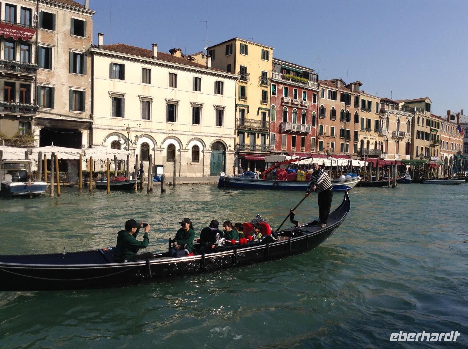 5 Jahrhunderten stand heute als erstes auf unserem Plan. Alessia erklärte uns Leben und Arbeiten der wichtigsten Künstler, die einst in Venedig wirkten, oder sich von der Stadt in ihren Arbeiten inspirieren ließen. Mit viel Liebe und Hingabe besprach sie die wichtigsten Gemälde und wir bekamen einen tollen Eindruck, wie Venedig sich über die Jahrhunderte entwickelte und veränderte, aber eben viele Details auch genauso heute noch in der Stadt zu finden sind, wie damals. Nach dem Besuch der Accademia bummelten wir weiter durch den Stadtteil Dorsoduro. An einem Kanal gelegen, zeigte uns Alessia eine alte traditionelle Firma des Gondelbaus. Wir besprachen das alte Handwerk, dass bis heute in der Stadt überlebt hat und sich um die Erhaltung un Wartung der vielen Gondeln kümmert. Aber auch der Gondelneubau wird immer noch betrieben. Am Wasser entlang spazierten wir bis zur alten Zollstation an der Spitze dieses Stadtteils. Plötzlich standen wir dem Marcusplatz und dem Dogenpalast genau gegenüber, ein toller Anblick. Genau da endete auch unsere Stadtführung und jeder hatte Zeit am Nachmittag für eigene Erkundungen. Zum Abendessen ging es wieder gemeinsam.