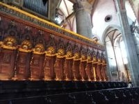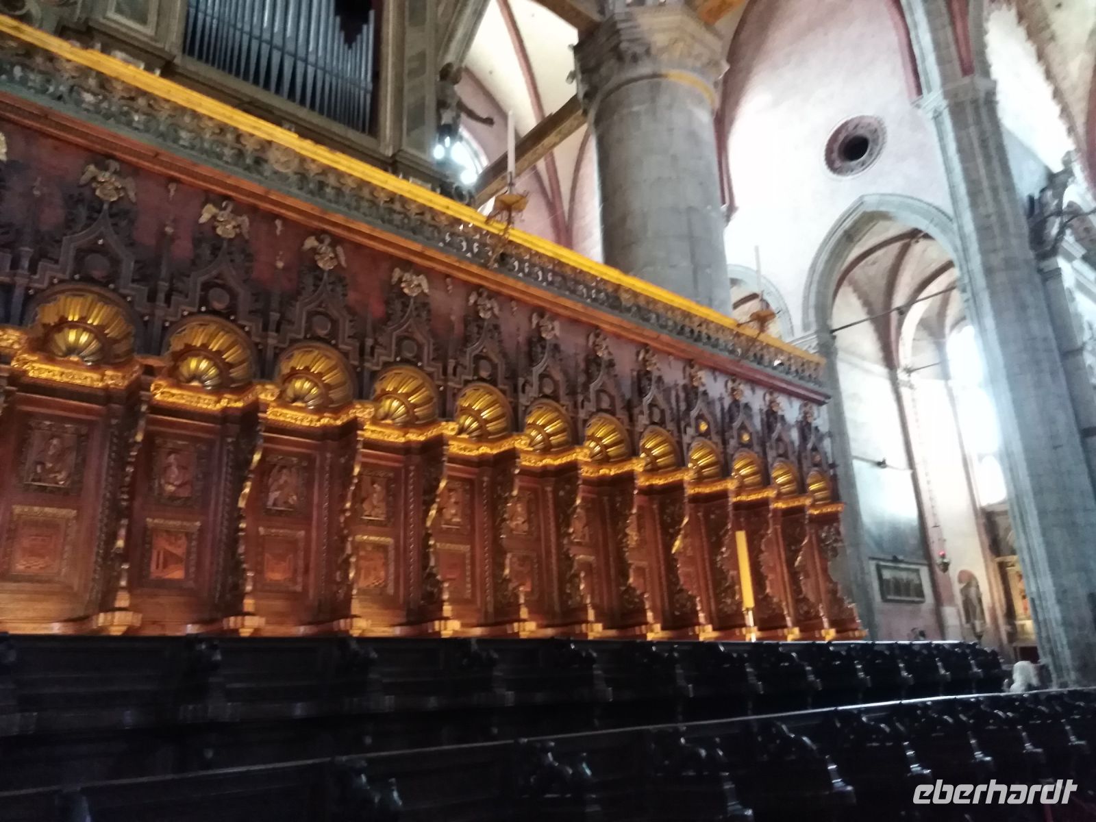 Wertvoll ist das aus Holz geschnitzte Chorgestühl, Tizians "Assunta" sowie der Pesaro-Altar mit dem Triptychon der "Thronenden Madonna" von Giovanni Bellini. Auch Werke von Donatello (u.a. Johannes der Täufer) befinden sich hier. Alessia erläuterte uns die Geschichte des Konventes und die Kunstwerke der bekannten Meister.