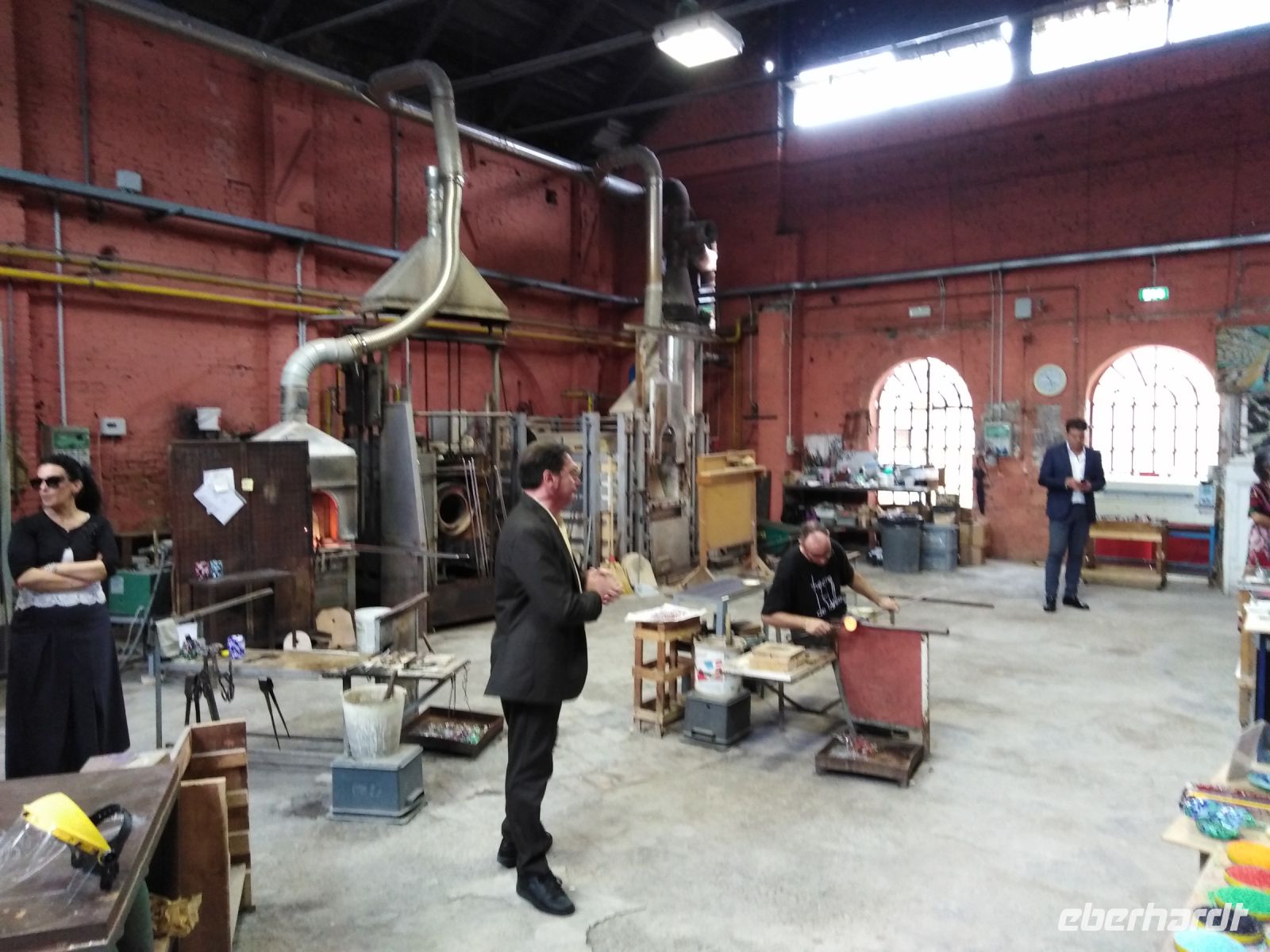 Nach etwa einer Stunde Fahrt aus dem Stadtbereich heraus auf die offene Laguna Veneta erreichten wir die bekannt Insel Murano, die weltweit für Glaskunst steht. Die Glasmacher gingen um 1290 nach Murano, um das Brandrisiko in der Stadt Venedig zu verringern. Im 15.-und 16. Jahrhundert entwickelten sie farbiges Glas und Kristallglas, das die Beliebtheit der spezifisch venezianischen Gläser und Kelche an den europäischen Tafeln begründete.