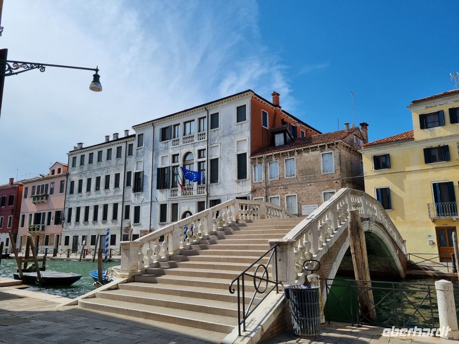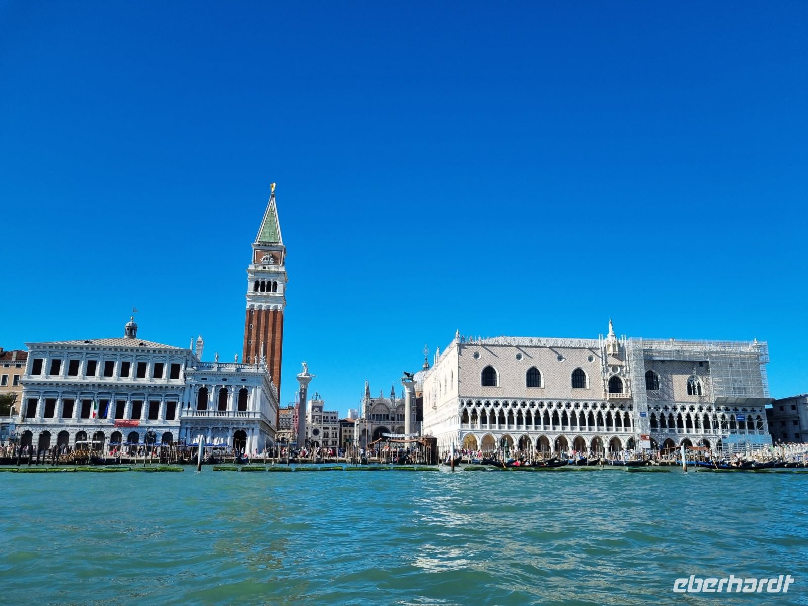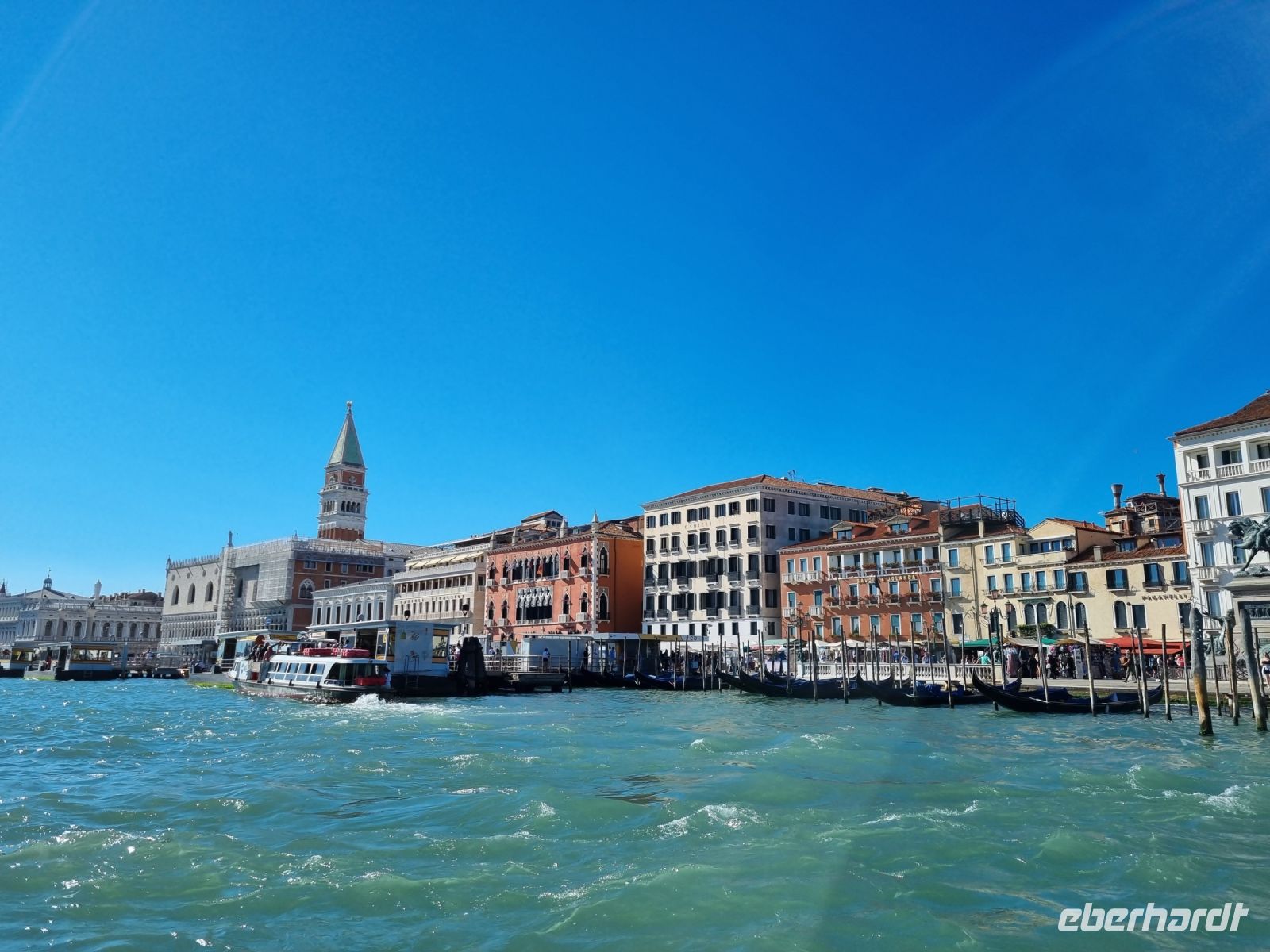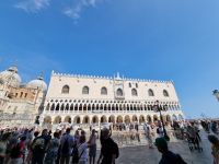 Gegen 7 Uhr trafen sich die ersten 11 Reisegäste mit mir am Flughafen in Dresden, um gemeinsam zunächst mit Lufthansa in Richtung Frankfurt und anschließend mit weiteren 7 Reisegästen nach Venedig zu fliegen. Somit war unsere Reisegruppe mit 18 Personen vollzählig und unser Abenteuer Venedig konnte beginnen. Wir landeten pünktlich auf dem Flughafen Marco Polo in Venedig und mit dem Linienboot fuhren wir direkt weiter ins Stadtzentrum. Venedig zeigte sich bereits auf dem Wasserweg bei herrlichem Sonnenschein von seiner schönsten Seite und in diesem Zusammenhang konnten wir auch die ersten Sehenswürdigkeiten wie den Markusplatz auf uns wirken lassen. Nach etwa 90 Minuten erreichten wir den Giudecca-Kanal und die Station "Zattere", von wo aus es nur noch ein kurzer Fußweg zu unserem sehr zentral gelegenen Hotel "Belle Arti" war. Dieses Hotel befindet sich in unmittelbarer Nachbarschaft der berühmten Kunstgalerie Accademia Belle Arti, woher sich der Name ableitet. Die Zimmer sind traditionell im klassischen venezianischen Stil gestaltet und für uns war es zudem der perfekte Ausgangspunkt für unser Besichtigungsprogramm in den nächsten Tagen. Ein gemeinsames Abendessen mit dem Großteil unserer Gruppe rundete den ersten Reisetag ab und wir freuten uns auf die nächtliche Erholung bzw. spannende Tage...