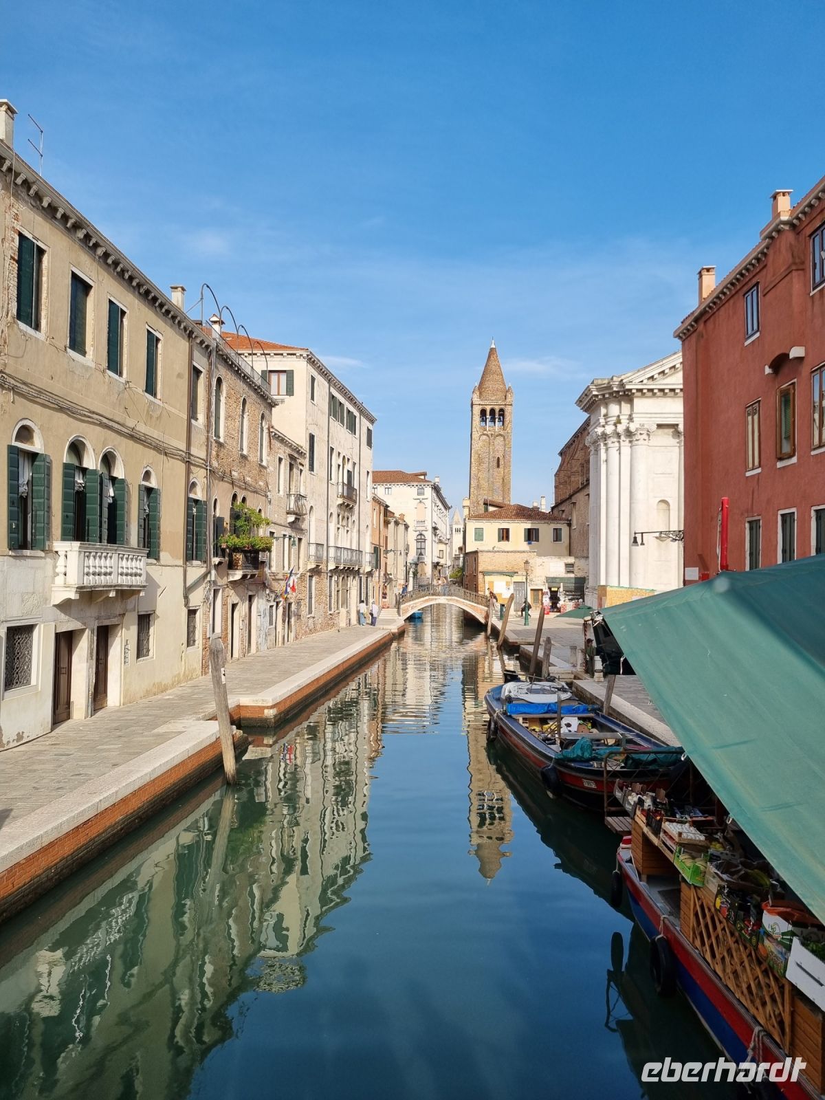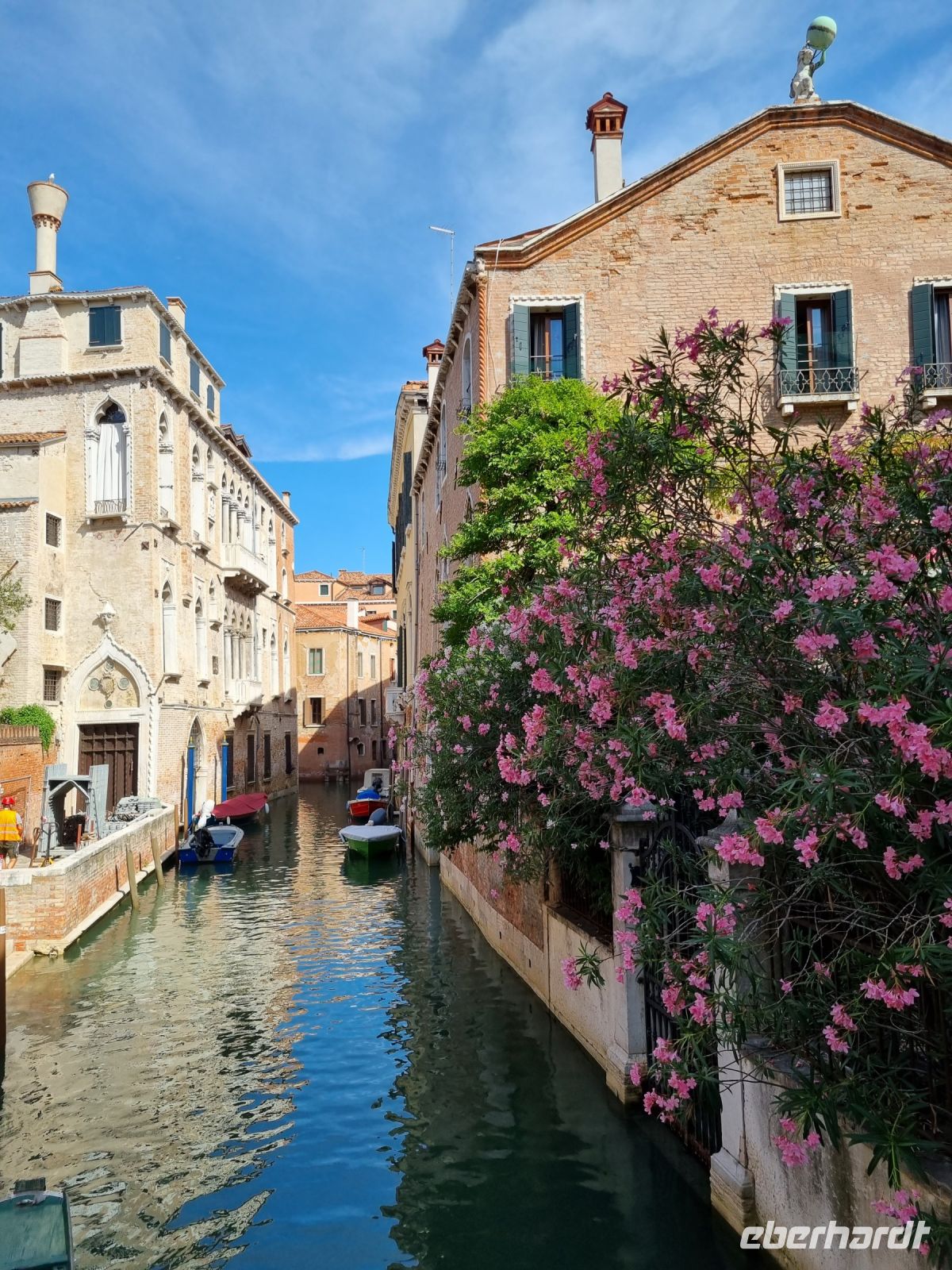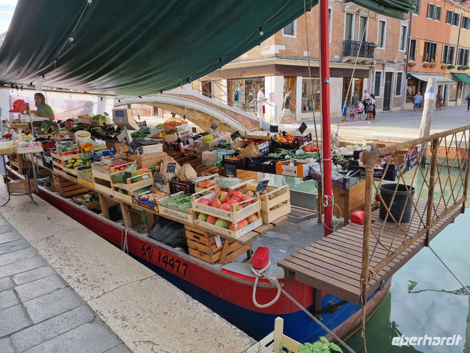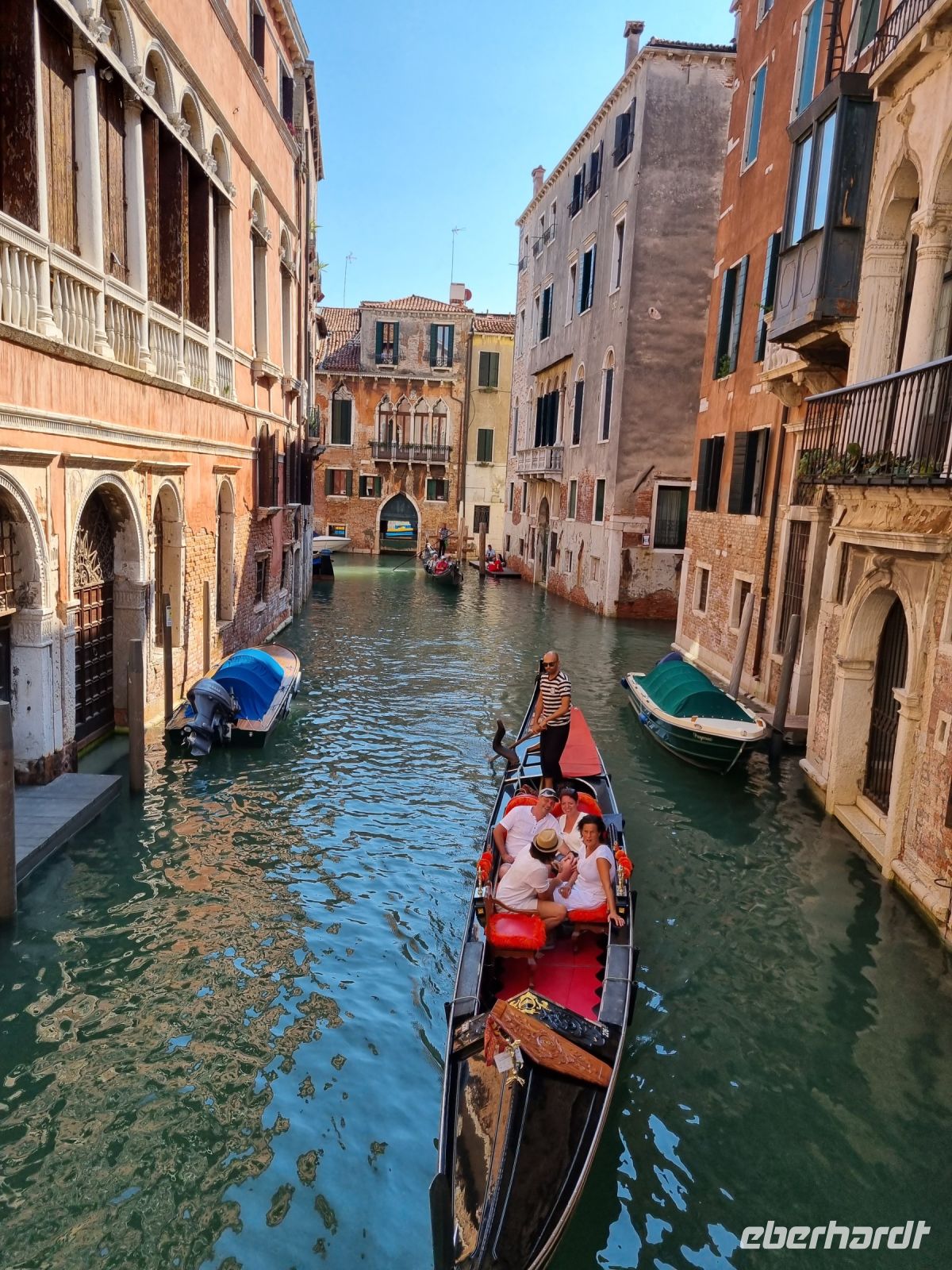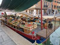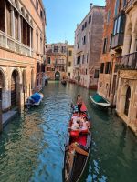 Der heutige Vormittag stand uns erneut zur freien Verfügung und so einige unserer Gäste unternahmen eine Gondelfahrt durch die zahlreichen Kanäle der Stadt. Eine romantische Gondelfahrt ist ganz sicher ein einmaliges und unvergessliches Erlebnis für alle Venedig-Besucher und das konnten wir nun auch bestätigen! Am frühen Nachmittag wurden wir von Barbara erwartet, die uns zuerst die traditionelle Gondelwerft San Trovaso zeigte. Der Gondelbau ist ein uraltes Handwerk in Venedig. Früher gab es dutzende Gondelwerften, heute allerdings nur noch sehr wenige und die "Squero San Trovaso" ist die bekannteste Gondelwerft, die noch existiert. Auf den ersten Blick sahen wir ein recht ungewöhnliches Gebäude für Venedig - ein Gebäude aus Holz, in Venedig ist sonst alles aus Stein gebaut. Vieles erinnerte uns an eine Tischlerei, aber das ist kein Wunder, denn die Gondeln Venedigs sind ja aus Holz. Wir besprachen das alte Handwerk, das bis heute in der Stadt überlebt hat und sich auch um die Erhaltung und Wartung der vielen Gondeln kümmert. Anschließend gelangten wir zur Accademia Galerie, einer wundervollen Ausstellung mit wertvollen Gemälden berühmter Maler. Barbara erklärte uns das Leben und Arbeiten der wichtigsten Künstler, die einst in Venedig wirkten oder sich von der Stadt in ihren Arbeiten inspirieren ließen. Mit viel Liebe und Hingabe erläuterte sie uns die imposantesten Gemälde und wir bekamen einen tollen Eindruck, wie Venedig sich über die Jahrhunderte entwickelte und veränderte. Zudem hatten wir Riesen-Glück, denn wir hatten die Accademia fast für uns allein, denn es waren am Nachmittag erstaunlicherweise wenige Menschen hier. Tief beeindruckt von diesem Kunst-Genuss flanierten wir weiter durch "unser" Stadtviertel Dorsodoro mit seinen unzähligen sakralen Bauten, schattigen Plätzen und engen Gassen. Am Ende erreichten wir den Campo Santa Margherita, einen schönen und sehr lebendigen Platz im Herzen des Stadtteils. Hier befinden sich einzigartige Gebäude des 14. und 15. Jahrhunderts und zahlreiche Straßencafés, wodurch ein angenehme Atmosphäre entsteht.