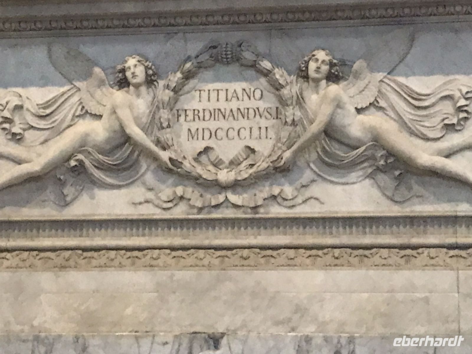 Ein Aufenthalt in Venedig vermittelt uns nicht nur einen Eindruck von der erfolgreichen Entwicklung dieser reichen und prächtigen Stadtrepublik, die über Jahhunderte den Gefahren trotze und sich behauptete, hier bekommen wir auch eine Ahnung davon, was es heißt, heute in Venedig zu leben. In Venedig unterwegs zu sein, heißt treppauf, treppab beim Einkaufen oder auf dem Weg zur Arbeit, für Mütter mit Kinderwagen und Menschen mit Rollator oder Rollstuhl eine harte Herausforderung. Die Millionen an Touristen, die über diese Stadt hereinbrechen wie die Flut, haben dazu geführt, dass es kaum noch Lebensmittelgeschäfte für den täglchen Bedarf gibt. Die Souvenirläden haben den Metzger, den Gemüsehändler und vielleicht auch den Schuster verdrängt. Die teuren Wohnungen, die sich die Venezianer nicht mehr leisten können, sind zu Ferienquartieren geworden. Im Erdgeschoss der Häuser sind die Läden ständig vom Hochwasser bedroht. Wann es kommt und in welcher Höhe, verfolgen die Venezainer auf einer App, anhand derer man auch erkennen kann, ob man die kurzen Gummistiefel oder doch gleich die Gummihose anziehen muss. Das erzählt uns Stadtführerin Alessia, während wir durch die kleinen Straßen und über die Plätze zur Fari-Kirche bummeln. Dieses mächtige Gebäude, das exakt Santa Maria Gloriosa del Fari heißt, wurde bereits im 13. Jahrhundert von den Franziskanern errichtet. Heute beherbert die Kirche nicht nur ein kostbares hölzernes Chorgestühl, viele Grabstätten der Dogen und auch das Grabmal Tizians, sondern auch sein Werk von der Himmelfahrt Mariens, das so wirkt, als würde die Maria gerade eben erst Richtung Himmel entschweben.