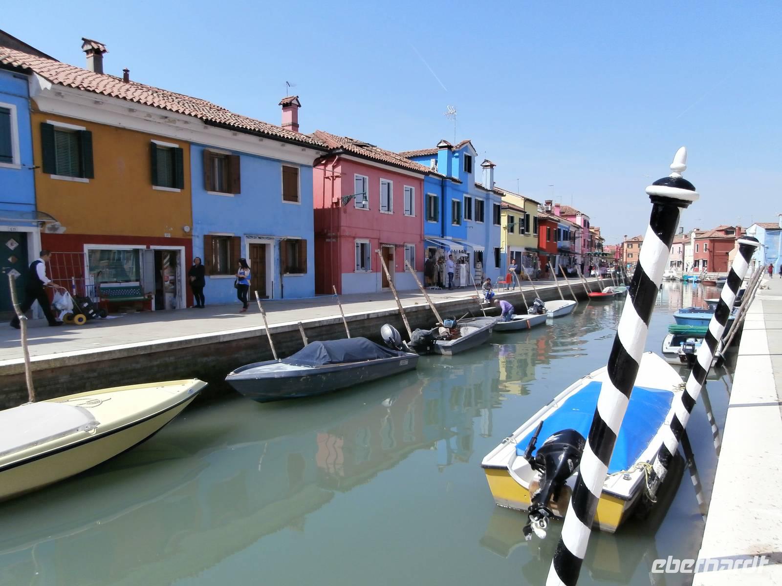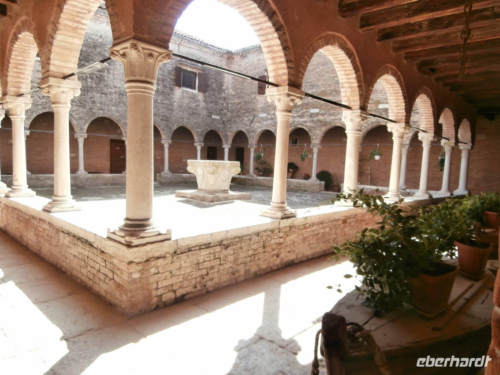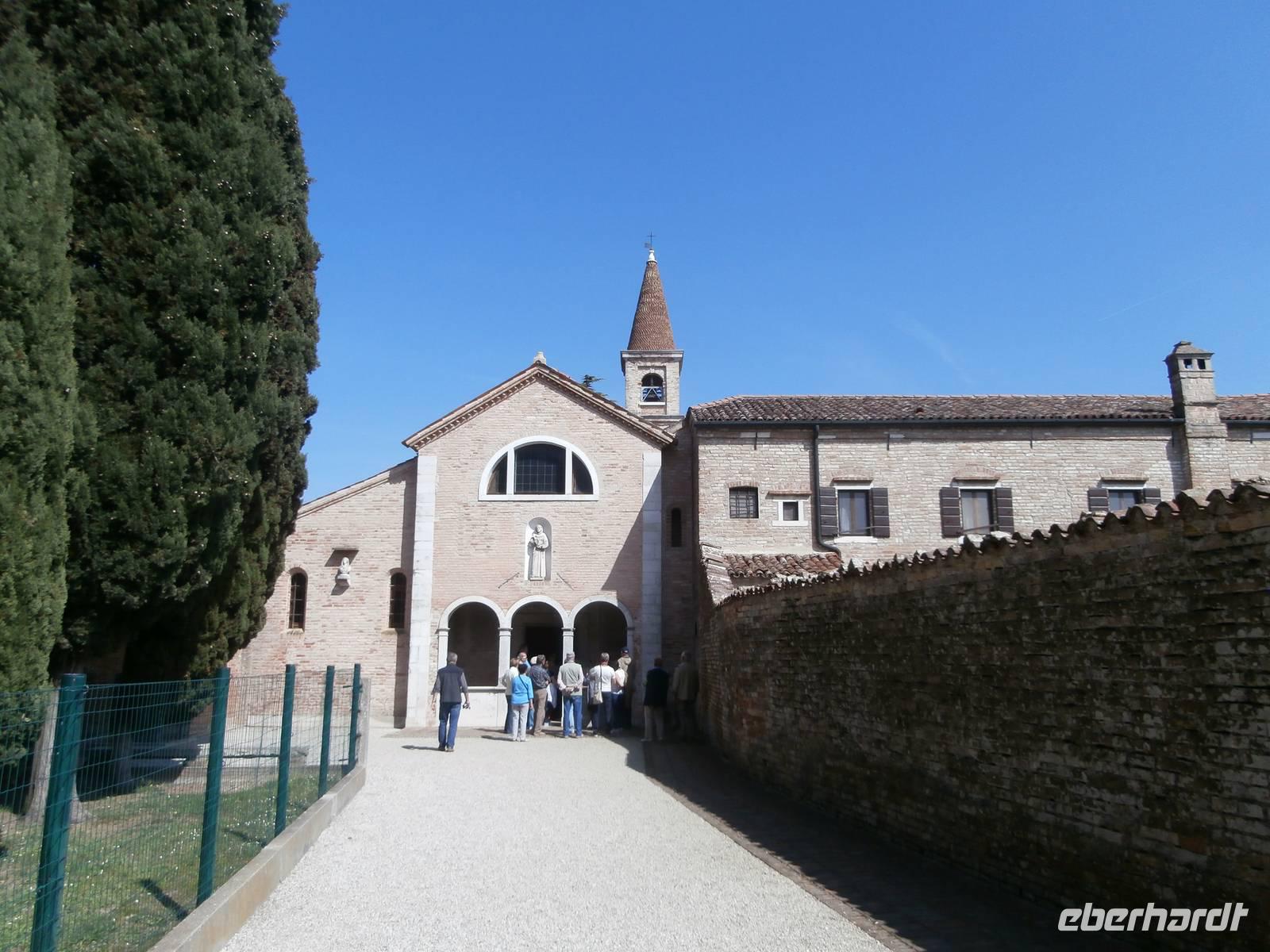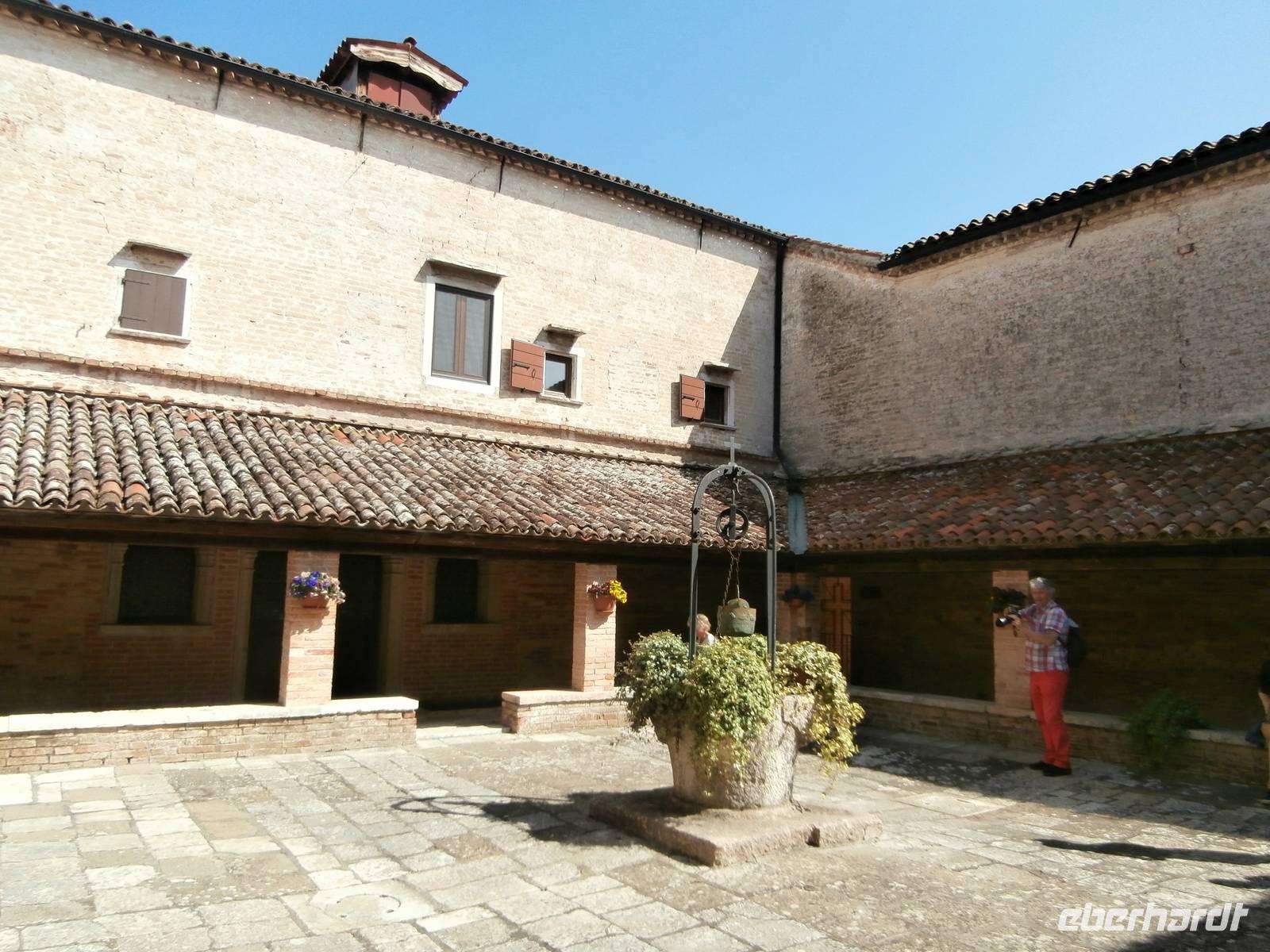 Wieder ausgestattet mit den Audioguides starten wir zusammen in den Tag, heute treffen wir Alessia schon auf dem Boot in Punta Sabbioni. Mit ihr geht es auf große Fahrt zu den umliegenden Inseln, bei fantastischem Wetter ist es für uns ein wunderschönes Erlebnis. Als erste Insel steuern wir Torcello an. Sie empfängt uns mit einer himmlischen Ruhe und einem fantastischem Grün der Natur. Sie ist nicht so spektakulär aber sie präsentiert sich uns mit der Kirche Santa Fosca aus dem 11. Jahrhundert und in einer römischen Villa. Sie entdeckte man zwei Meter unter dem Meeresspiegel mit einem Fußboden, man geht davon aus, das Torcello schon im 1. Jahrhundert besiedelt war. Torcello war Bischofssitz und die im Jahre 639 geweihte Kathedrale ist das älteste Bauwerk der ganzen Lagune. Eine Zeit lang lebte der englische Schriftsteller Ernest Hemingway auf der Insel. Als zweite Insel unseres Ausfluges empfängt uns Burano, eine Augenweite sind die vielen hübschen bunten Häuser, sie ist sicherlich die farbenfrohste Laguneninsel. Bunt gestrichene Häuser säumen die Kanäle und von überall ist der schiefe Campanile der Kirche San Martino von Burano zu sehen. Hier haben wir genügend Zeit, um die Köstlichkeiten der Insel zu probieren, Eis zu essen und Espresso trinken. Die Spitzenschule Scuola die Merletti ist eine über 100 Jahre alte Klöppelschule mit Museum, leider sind es heute nur noch wenige Klöpplerinnen, denen man bei der Arbeit zusehen kann. Zuletzt bringt uns der Kapitän zur Insel San Francesco del Deserto, sie bezeichnet man als die schönste der Laguneninseln. Sie ist auch nur mit einem Privatboot zu erreichen. Ein Mönch führt uns durch das Franziskanerkloster mit zwei Kreuzgängen, heute leben auf der Insel fünf Mönche, die Gemüse und Obst auch selbst anbauen. Ein fantastischer Bootsausflug war es für uns alle.