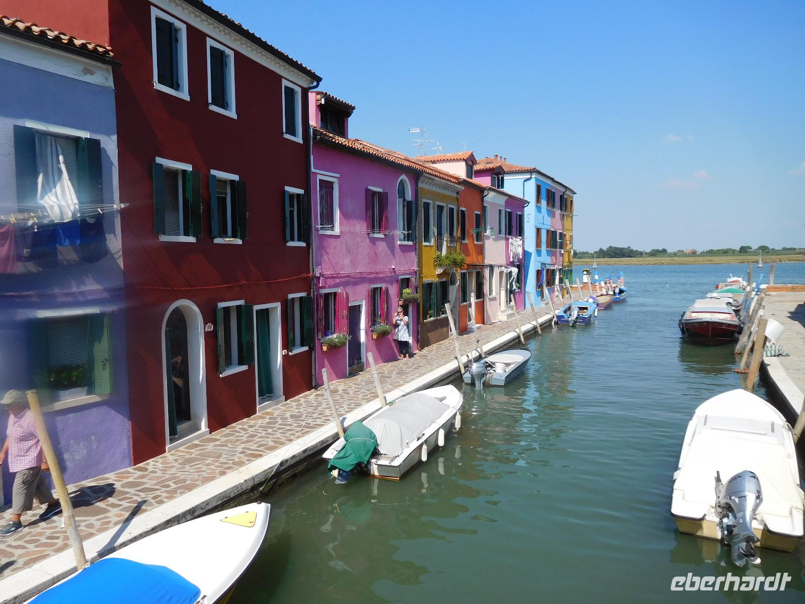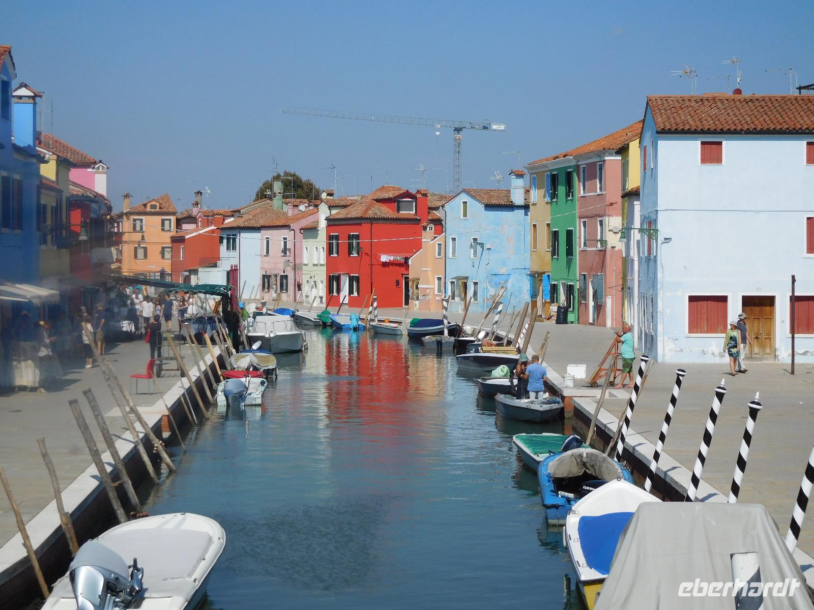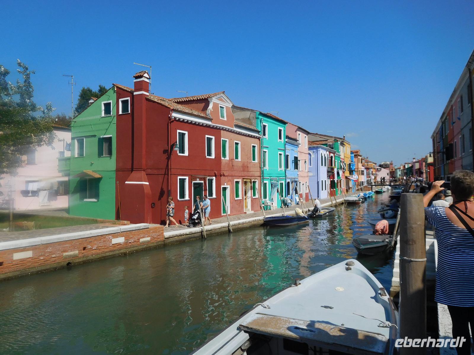 Typisch für Burano sind die vielen kleinen in jeweils einer zu den Nachbarhäusern kontrastierenden kräftigen Farbe gestrichenen Fischerhäuser, die sich in den Kanälen spiegeln und die die Individualität der jeweiligen Hausbesitzer betonen. Die kuriose Farbenpracht zieht viele Maler und Fotografen auf die Insel.