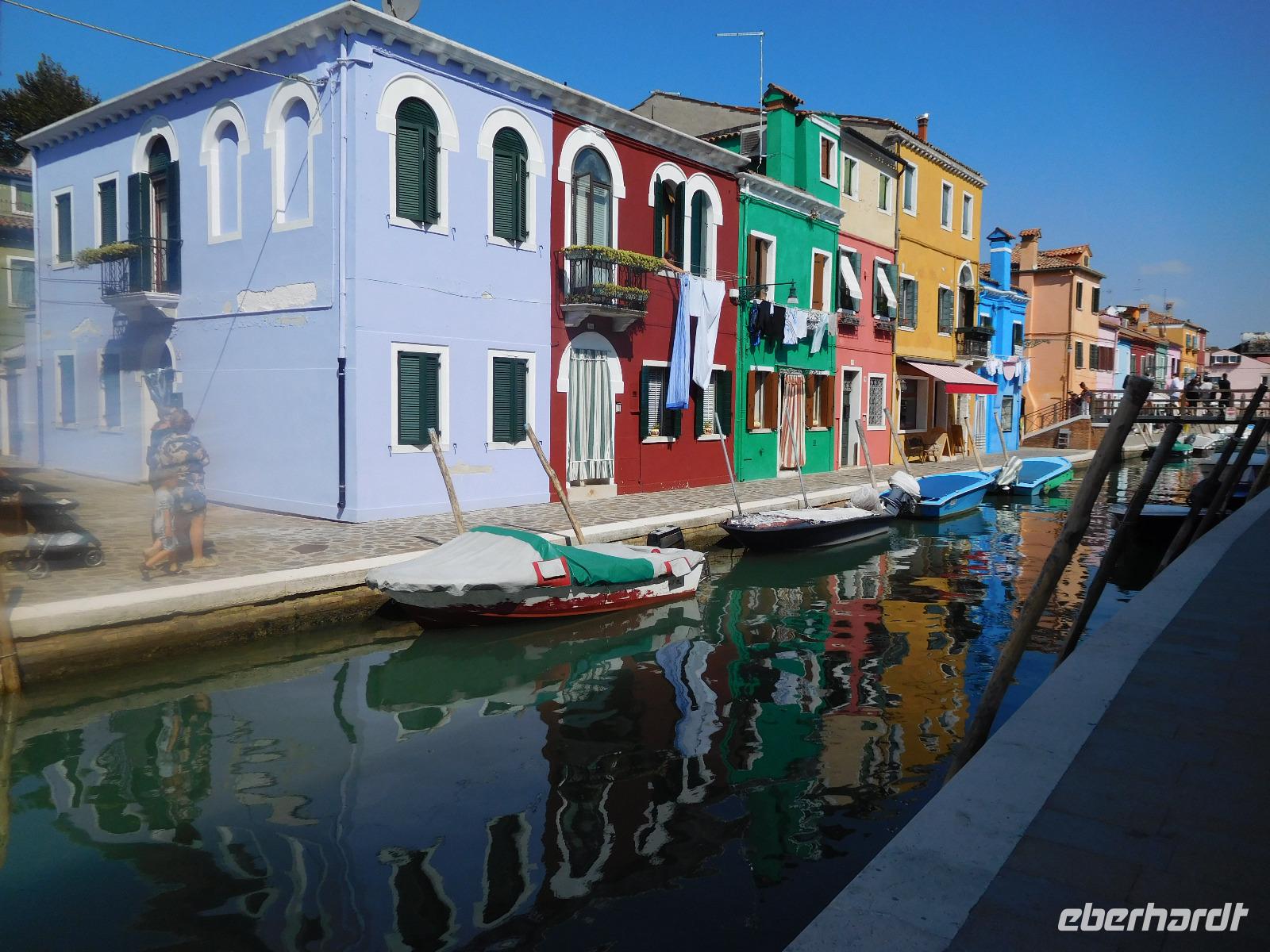 Nach diesem kontemplativen Programmpunkt setzten wir nach Burano über und spazierten vorbei an den vielen bunten Häusern zur Kirche mit der Kapelle der Heiligen Barbara, deren Reliquien seit dem 19. Jahrhundert hier bewahrt werden. Als Schutzpatronin der Bergleute ist sie ja quasi auch eine sächsische Nationalheilige. Burano, venetisch Buran, ist eine der größeren und der am dichtesten besiedelten Inseln in der Lagune von Venedig. Eigentlich handelt es sich um eine Gruppe von vier eng beisammen liegenden und durch acht Brücken verbundenen Inseln.