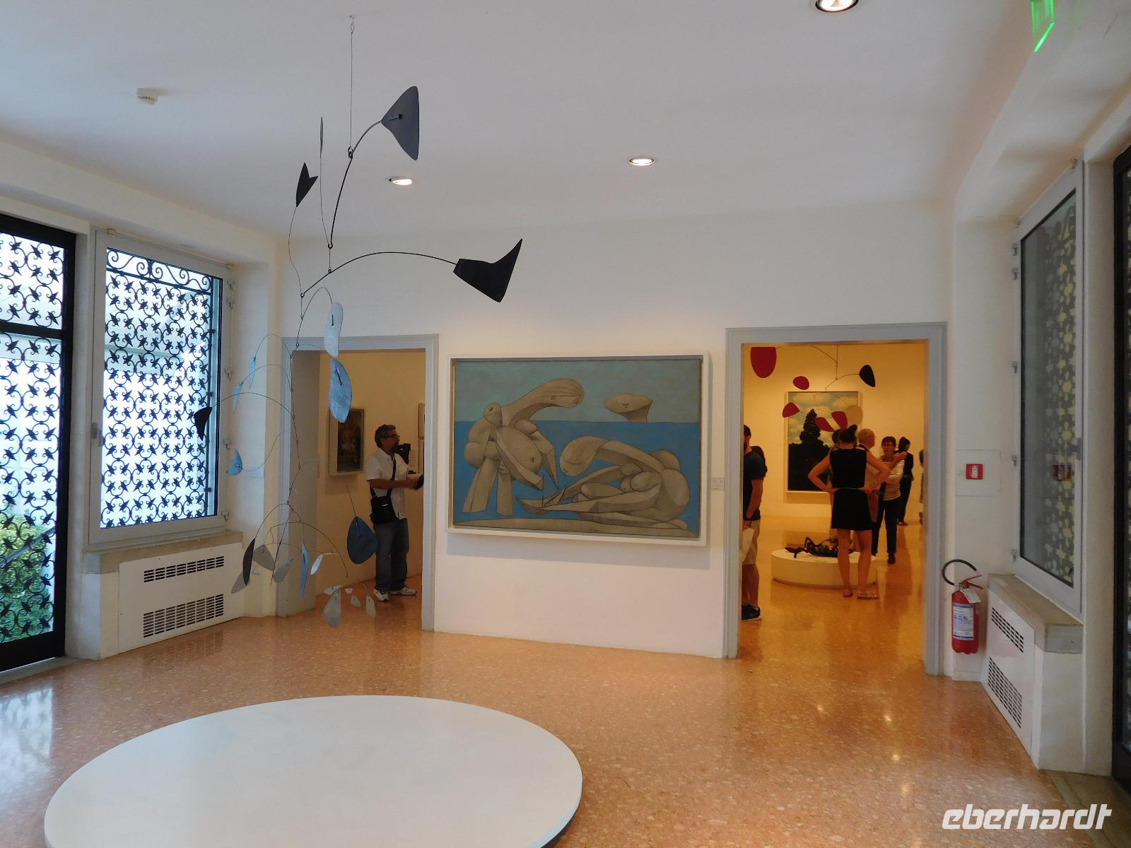 Dann ins Guggenheim. Mit viel Detailkenntnis erklärte Alessia schon im Garten einige Skulpturen z.B. von Henry Moore und zeigte uns das Grab von Peggy Guggenheim mit der Tafel ihrer wichtigsten Partner. Innen ein Pantheon der Moderne des 20. Jahrhunderts, in dem alles, was Rang und Namen hat, vertreten ist. Zumindest Chagall, de Chiricho, Max Berg, Picasso und Braque waren bekannt. Schöne naive Bilder der Tochter von Peggy Guggenheim, die zu früh aus dem Leben ging. Auf der Terrasse der Villa mit tollem Blick auf den Canale Grande verabschiedeten einige Gäste bereits Alessia und den Nachmittag nutzte jeder zur ganz individuellen Abrundung seines Venedig- Programms. Vor dem Abendessen blieb sogar noch Zeit für ein Bad in den an diesem Abend besonders hohen Wellen der Adria.