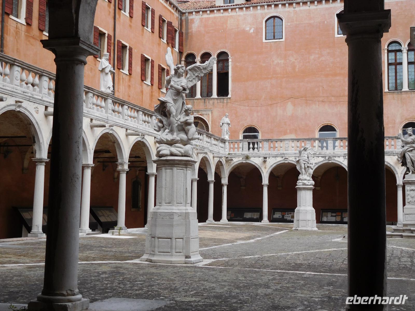 Nach der morgendlichen Fahrt hinein nach Venedig, wo wir diesmal gleich auf Dorsoduro im Stadtteil Zattere nahe der Akademiebrücke ausstigen, bot sich Gelegenheit zu einem Morgenspaziergang. Wir schlenderten durch das Viertel und sahen von außen einige Kirchen, wie die gotischen San Giorgio und Sant´ Agnese, sowie mehrere Paläste an. Das alles ist natürlich nichts gegen die Kunstschätze, die wir in der Akademie sehen konnten, der weltweit wichtigsten Sammlung venezianischer Kunst vom Mittelalter bis zum Barock.